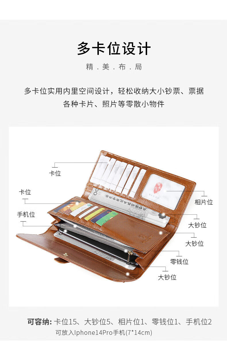 Woodpecker (TUCANO) cowhide wallet women's long 2025 new retro style multi-card slot ticket holder oil wax cowhide pickup bag gift for women