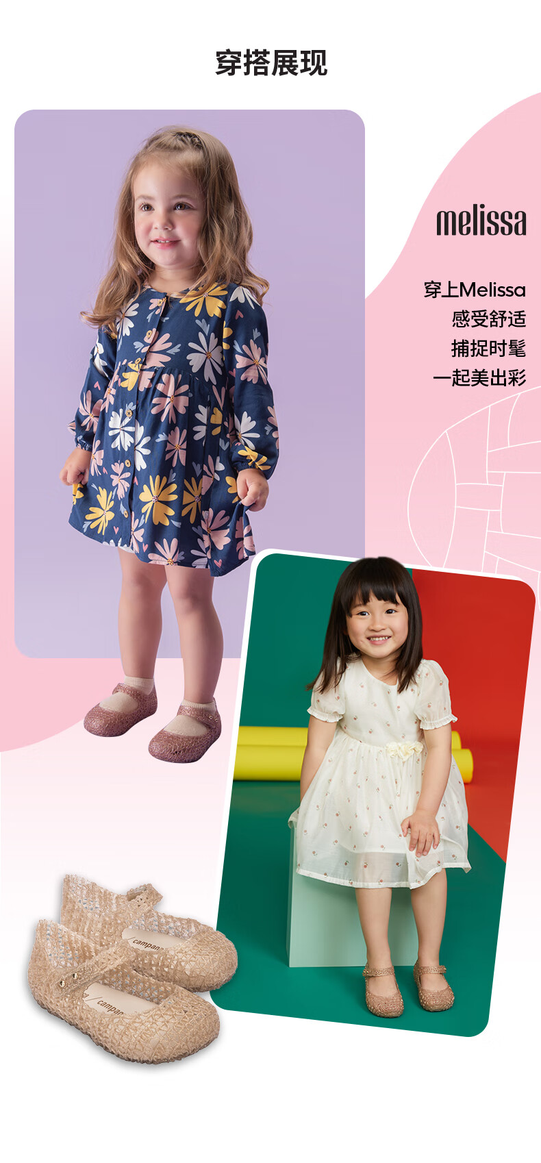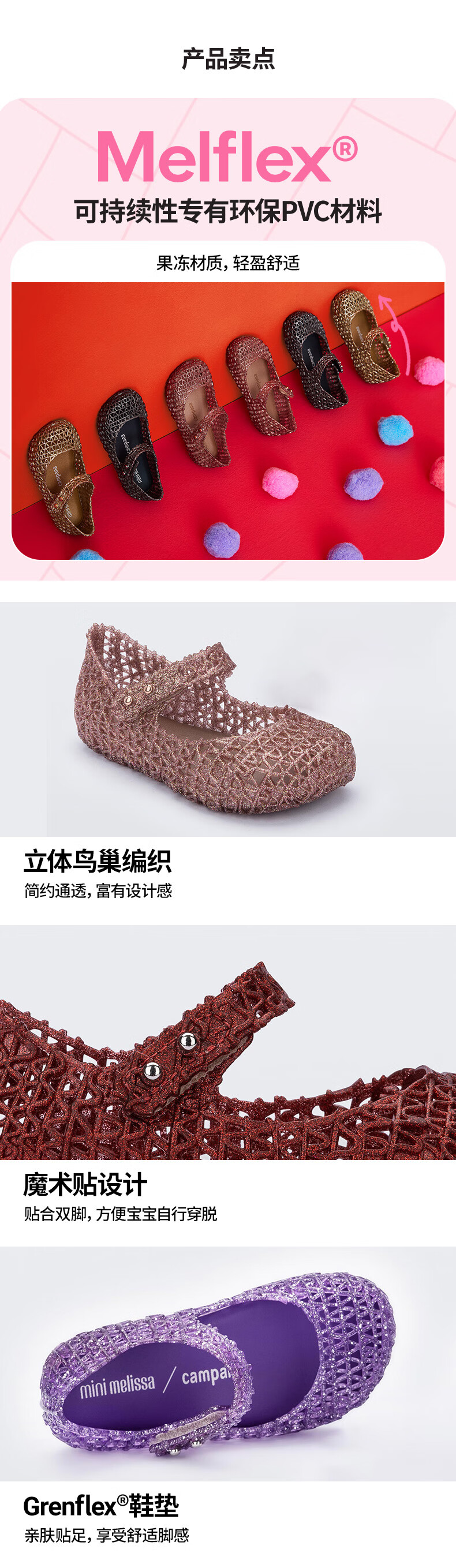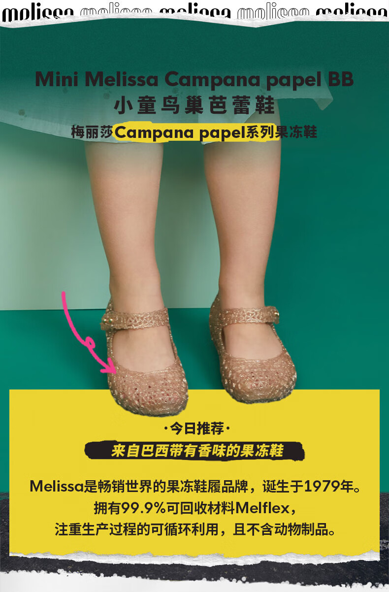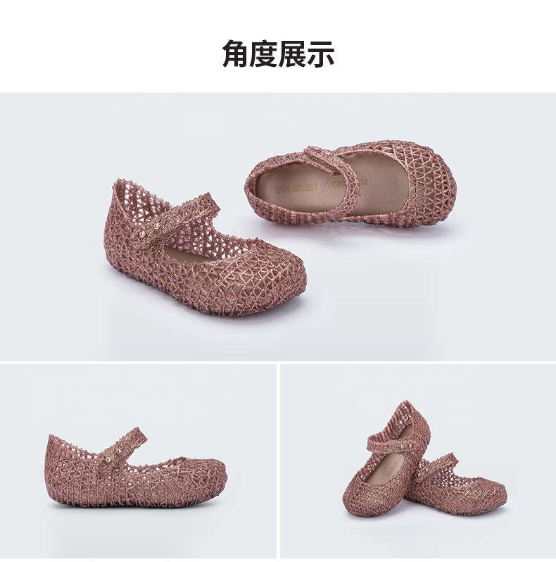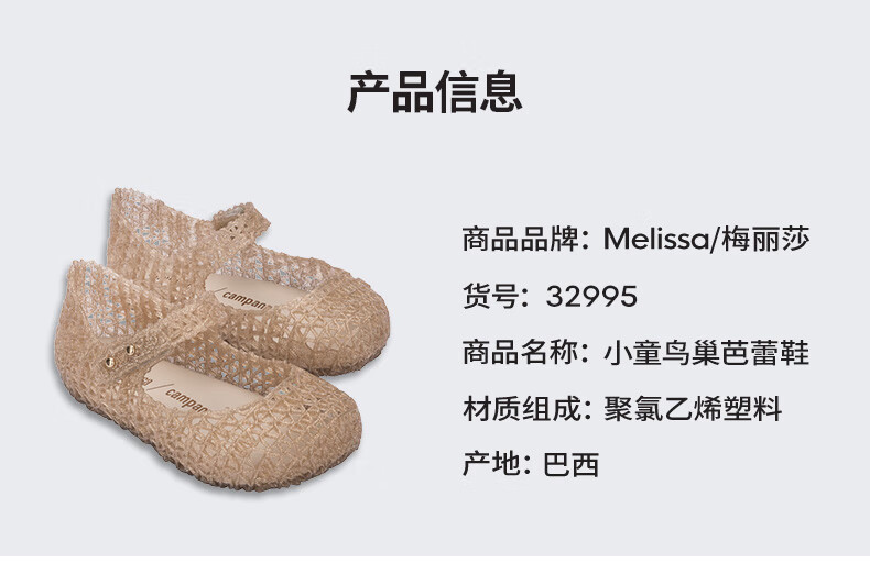 Melissa Summer Campana Cooperation Braided Hollow Buckle Bird's Nest Children's Shoes 32995 Bright Gold 24