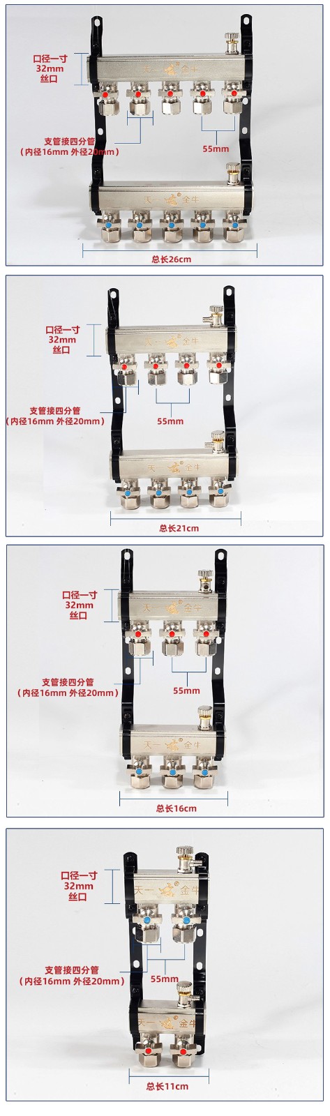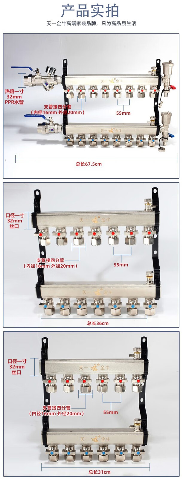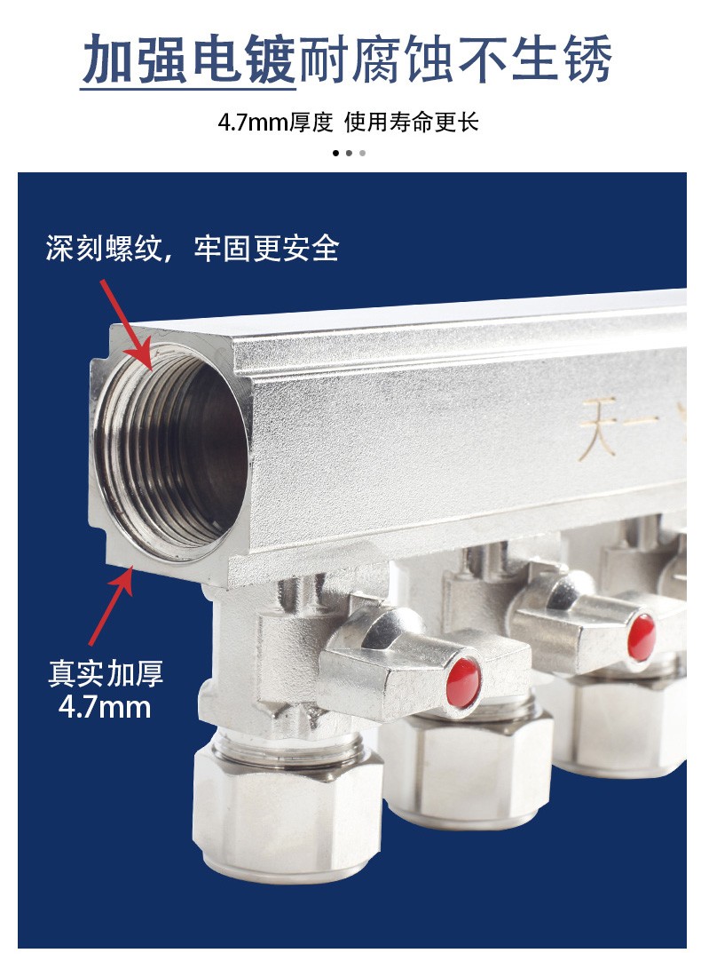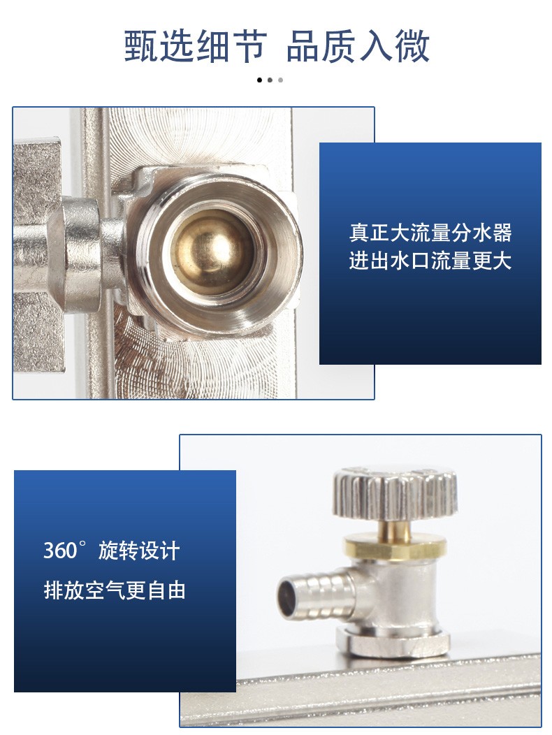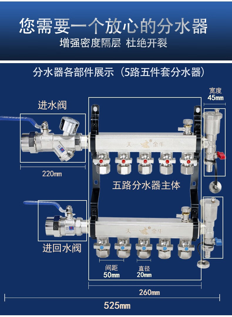 TIANYIJINNIU copper floor heating water collector, real large flow diameter, pert floor heating pipe heating valve, five-way single water distributor, large flow model