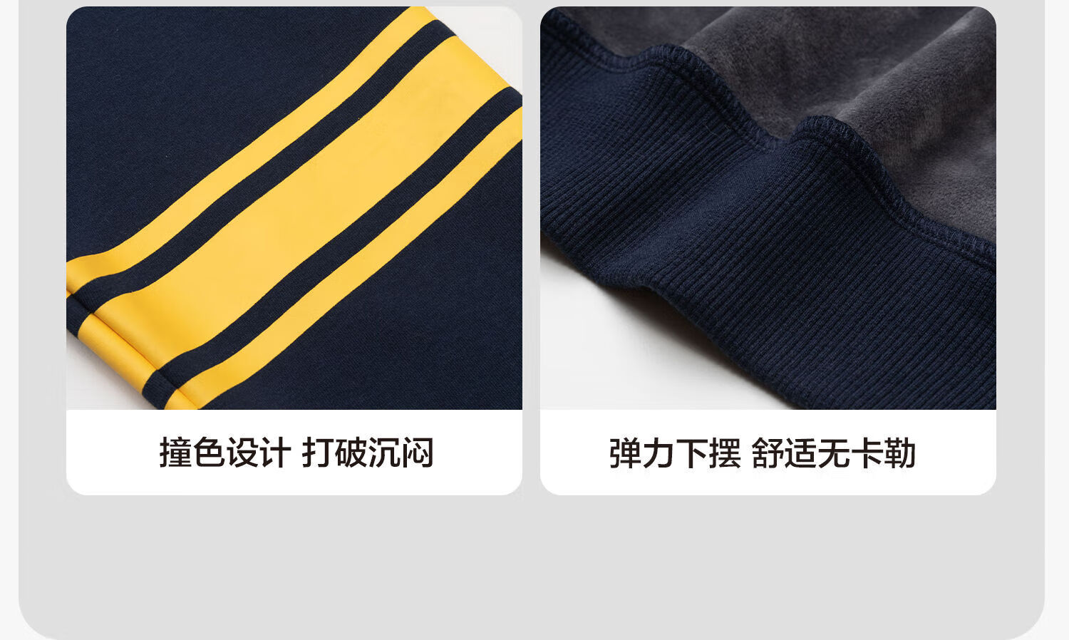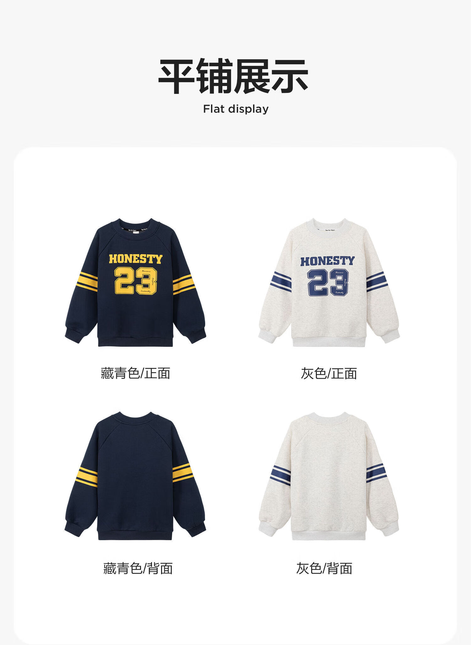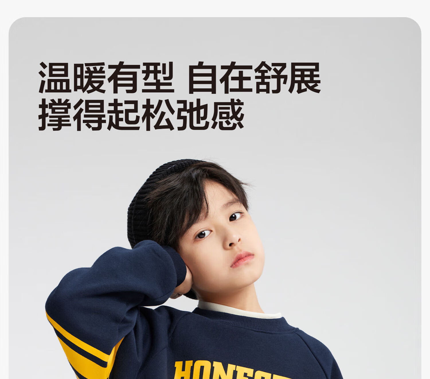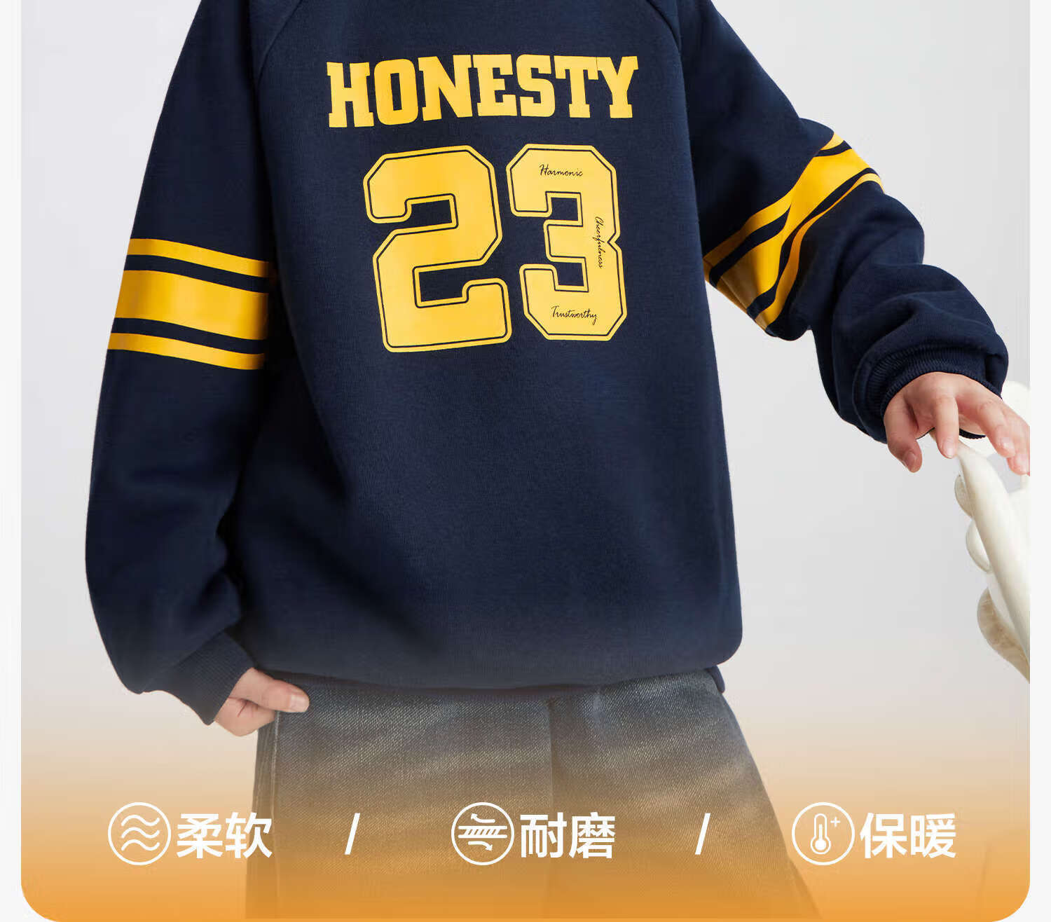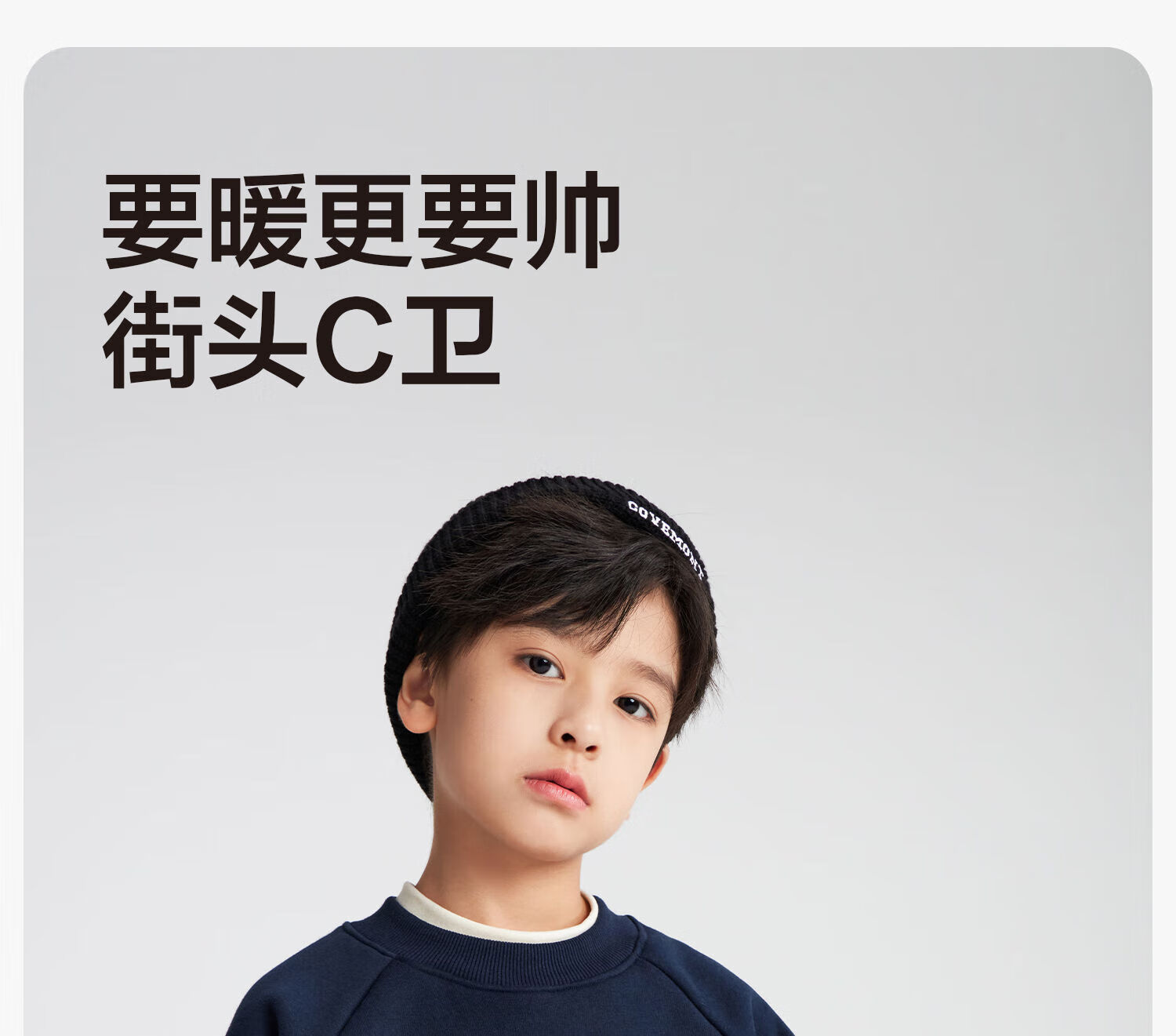 Zuoxi boys' fleece sweatshirt 2025 new autumn and winter children's letter round neck tops for big children trendy navy 160