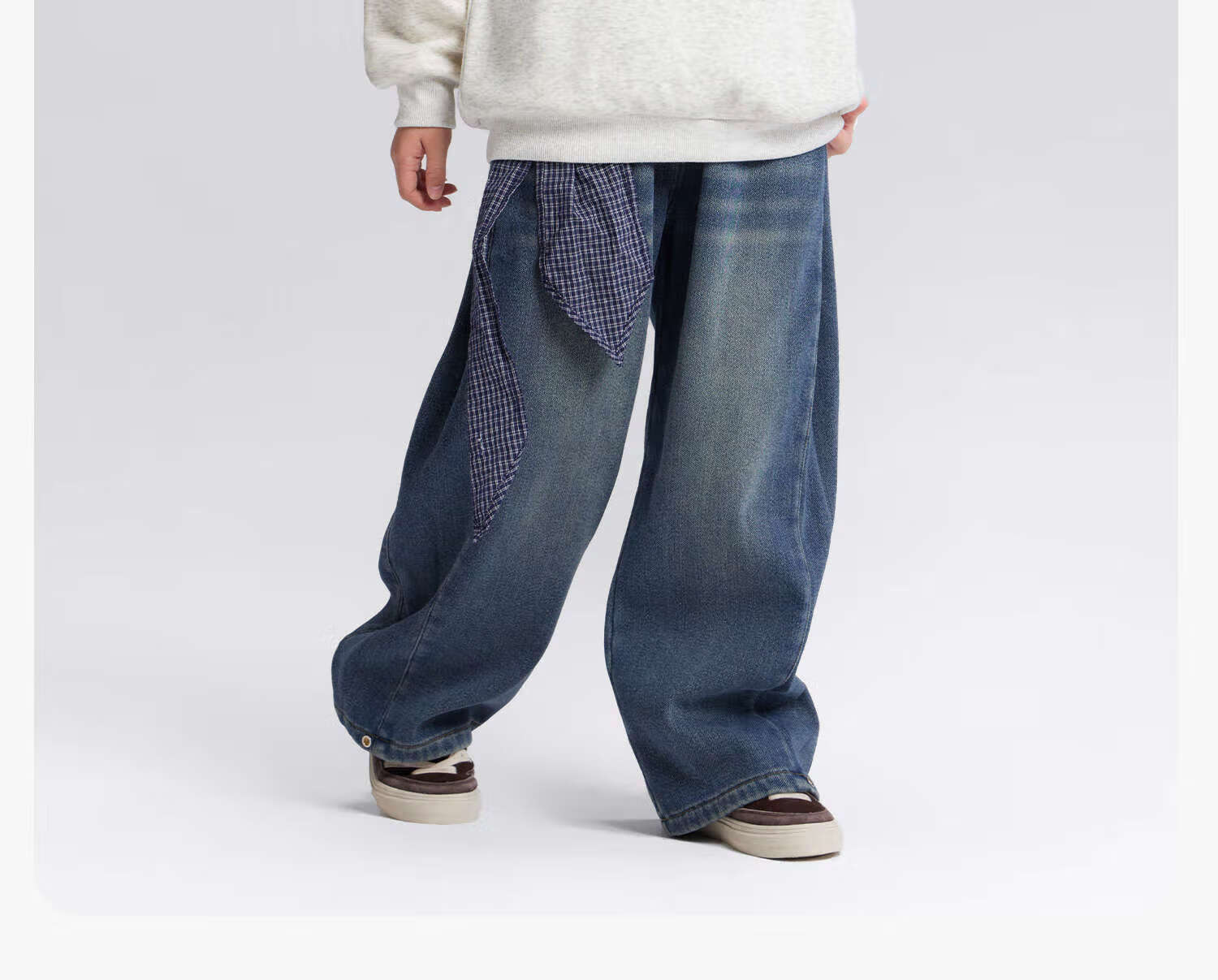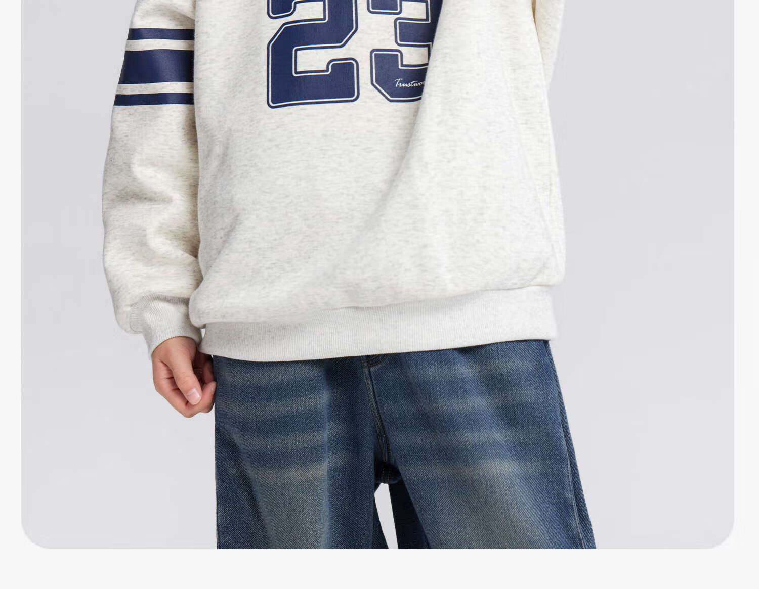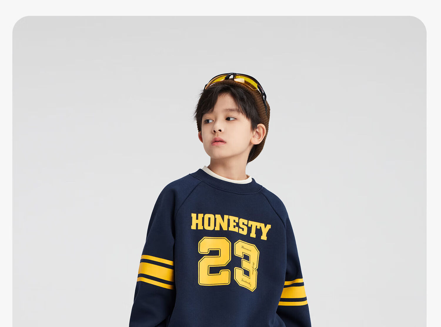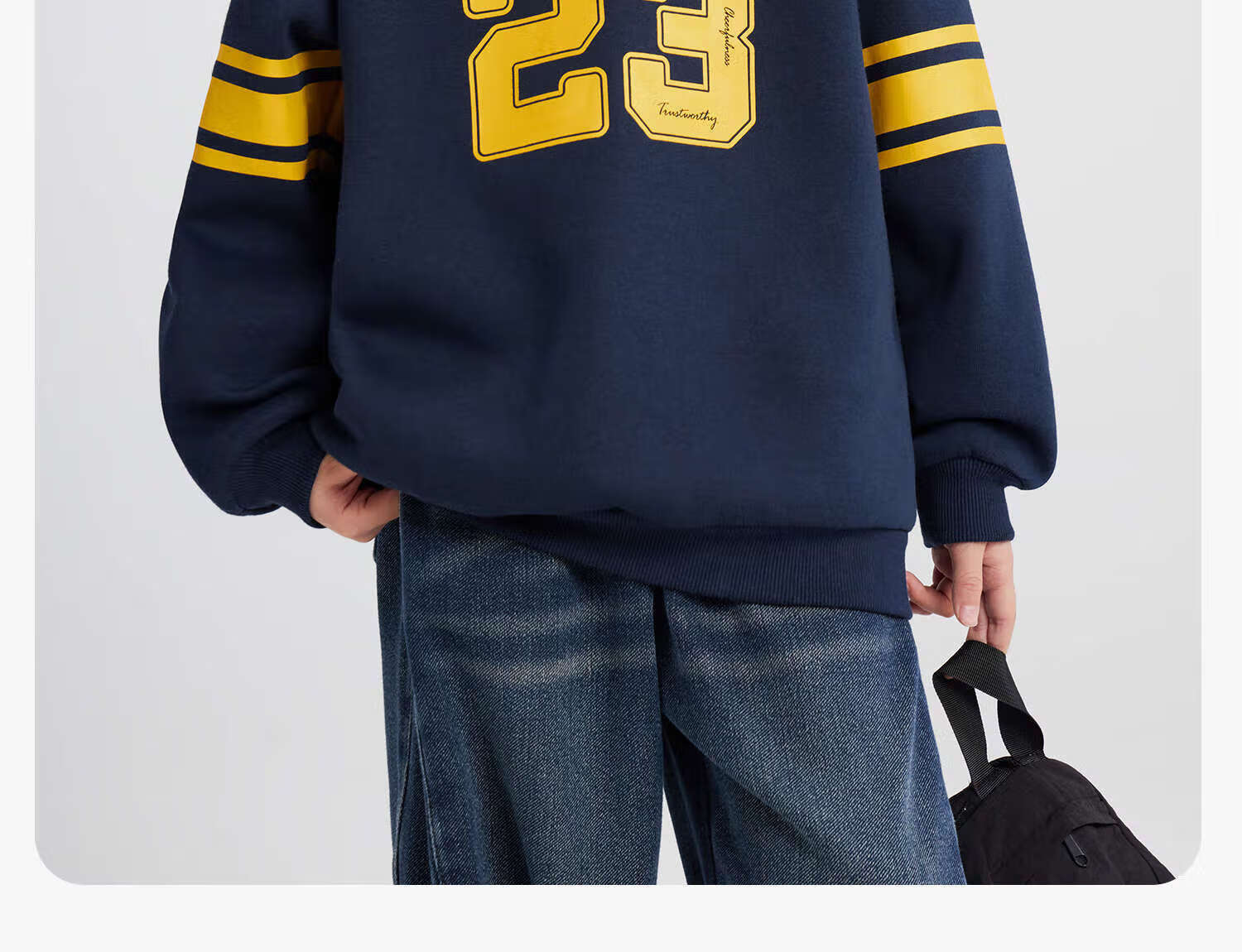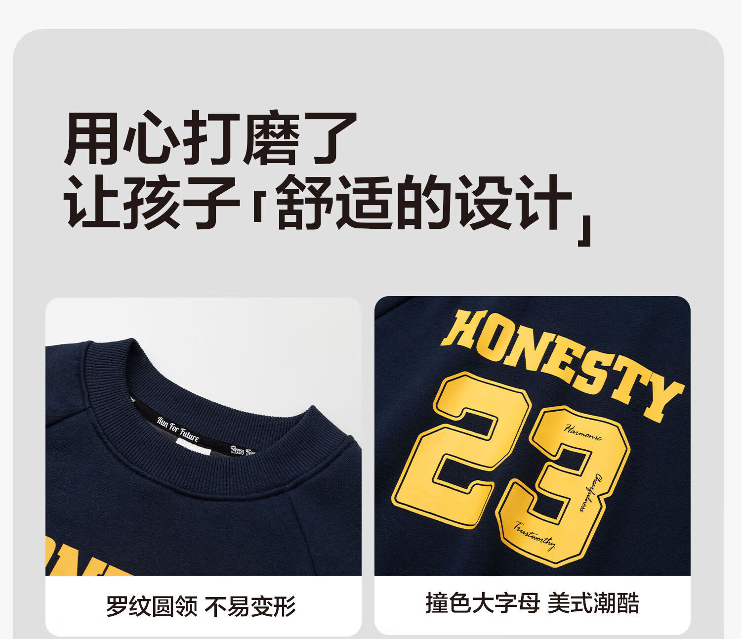 Zuoxi boys' fleece sweatshirt 2025 new autumn and winter children's letter round neck tops for big children trendy navy 160