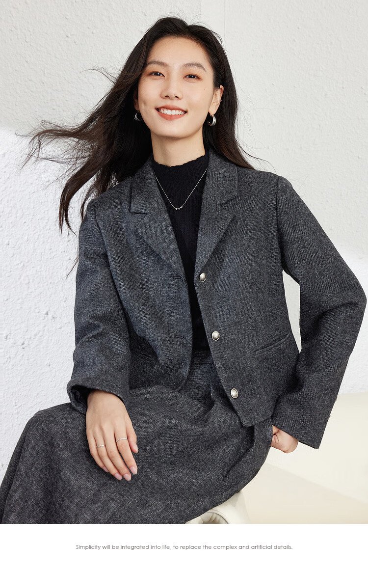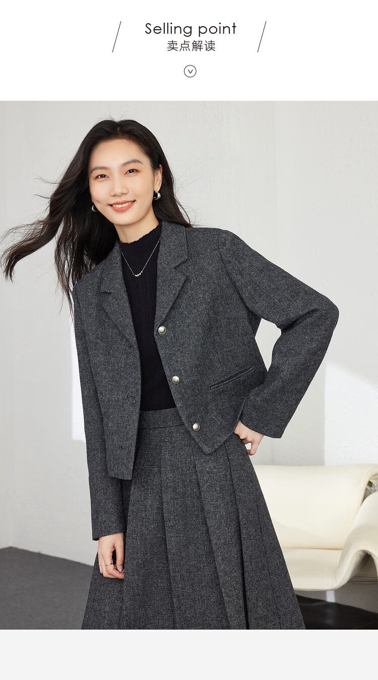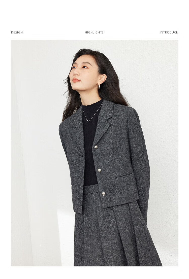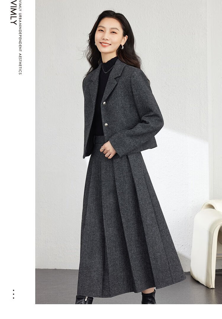 Fan Ximan wears a complete set of gray suits for women, new autumn high-end wool suits, dark floral gray XL