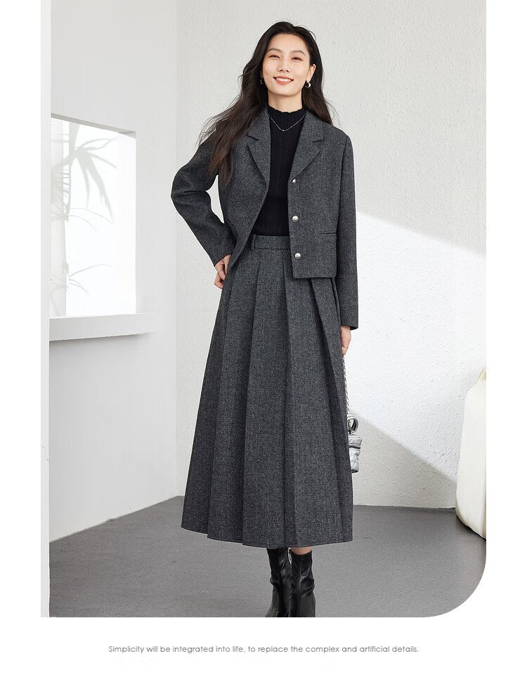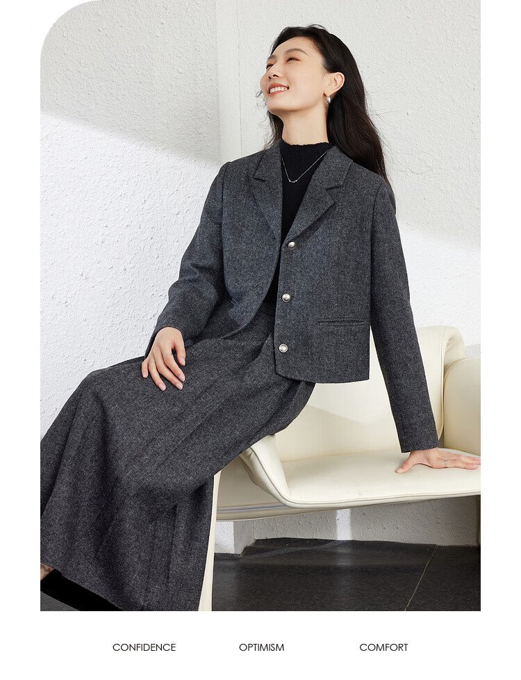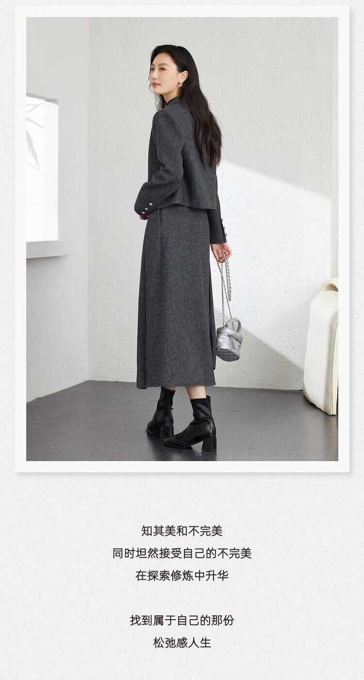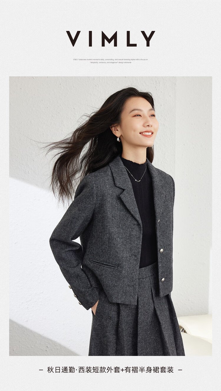 Fan Ximan wears a complete set of gray suits for women, new autumn high-end wool suits, dark floral gray XL