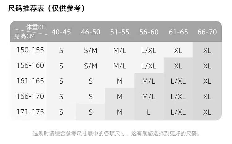 China (cm) 160-165/84-86 165-170 / 88-90 167-172 / 92-96 168-173 / 98-102 170-176 / 106-110