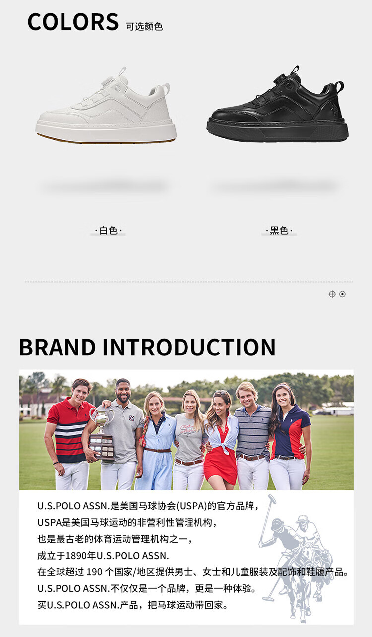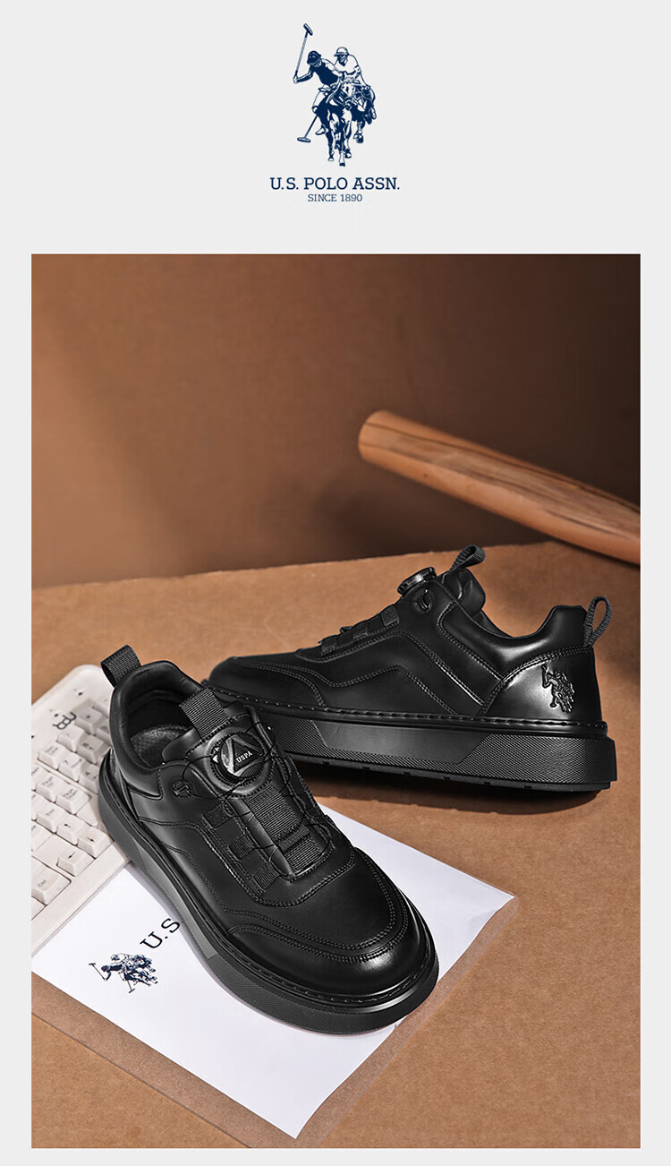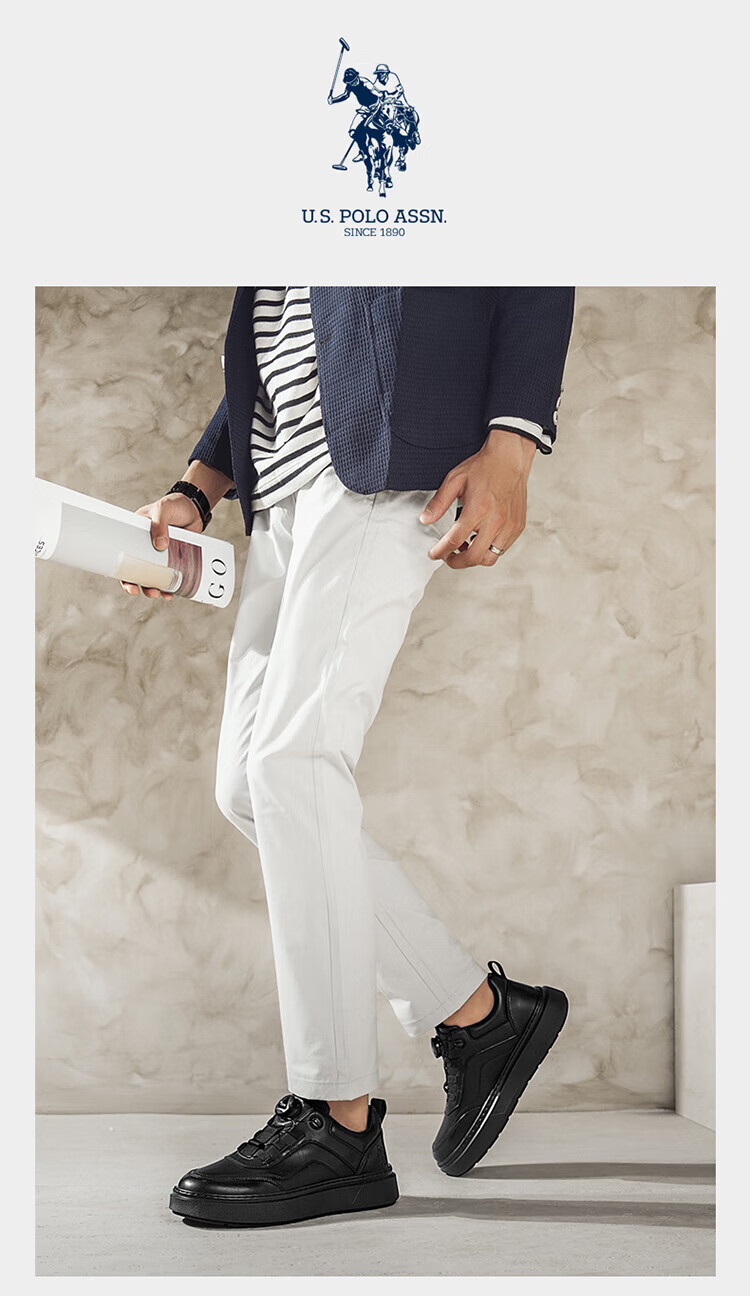 U.S. POLO ASSN. Autumn new business casual shoes Paul men's shoes fashionable and versatile leather white shoes thick-soled non-slip heightening sneakers