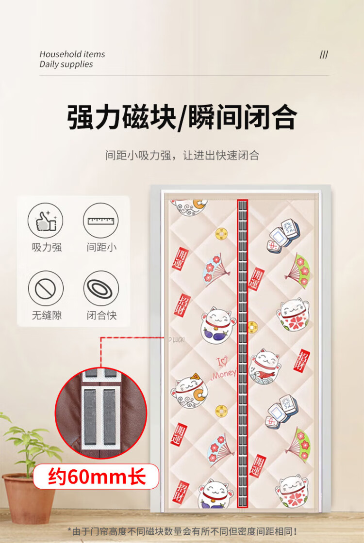 40,000 kilometers of winter cotton door curtains thickened home air conditioning warm insulation windproof partition curtains soundproof cold-proof self-priming curtains