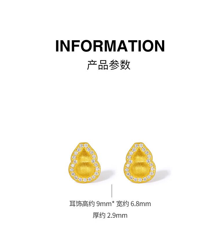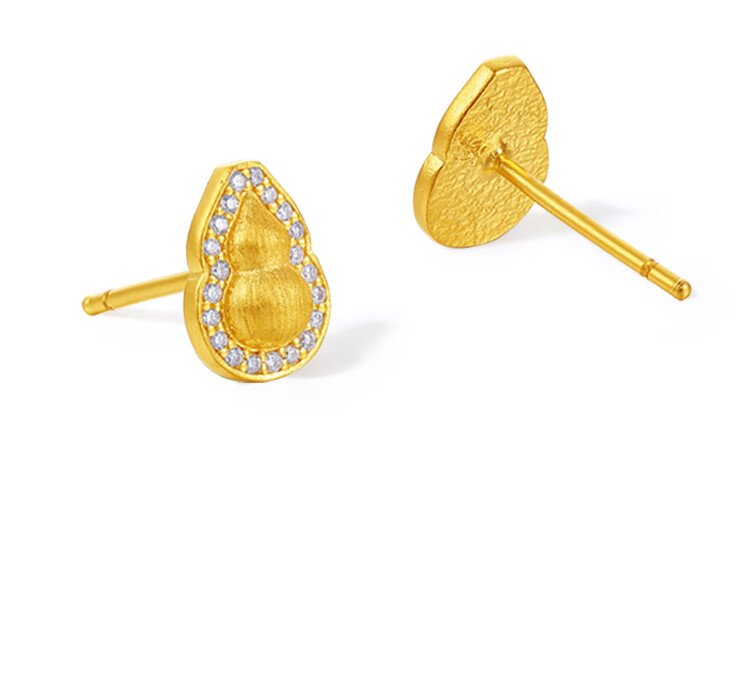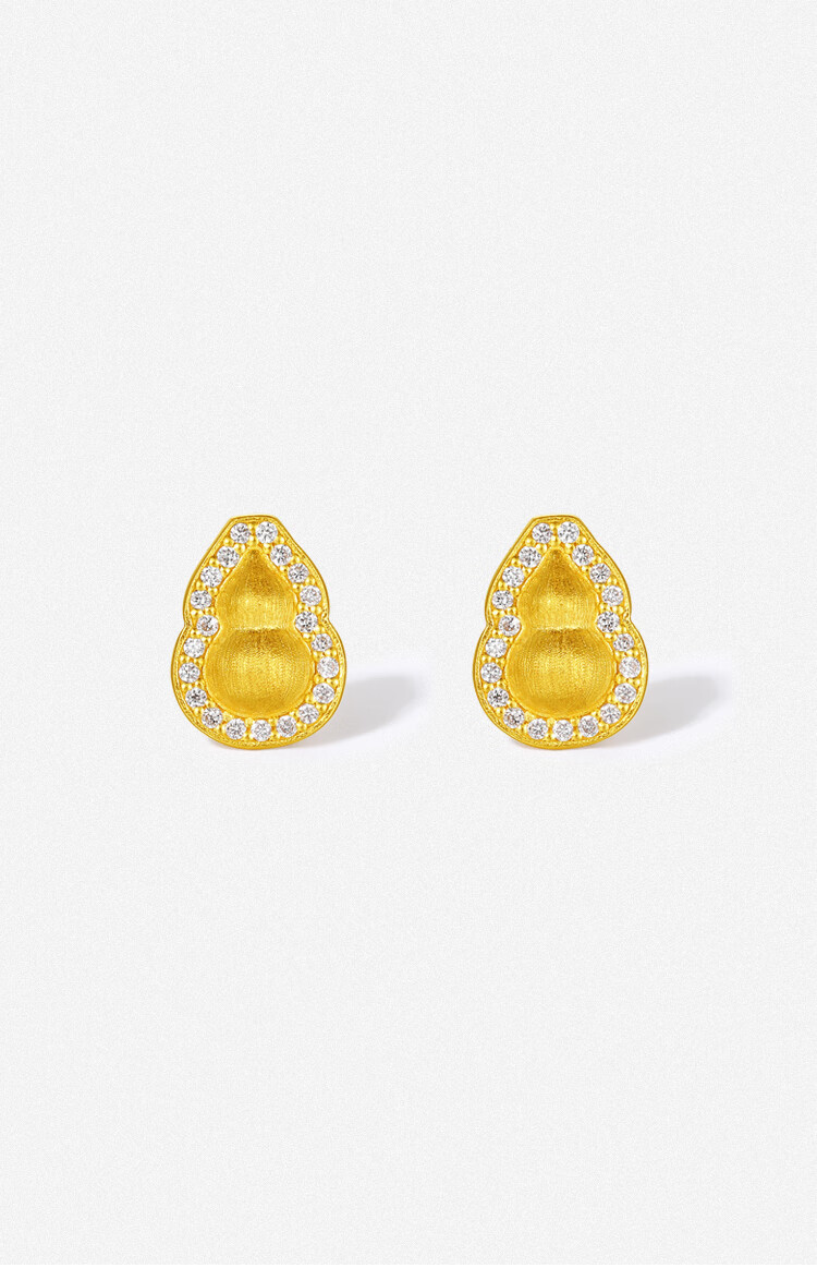 Saturday Fu Gourd Ancient Gold Diamond Stud Earrings for Women W0921101 Diamonds Approximately 12.6 Cents A Pair Gold Weight Approximately 2.95g