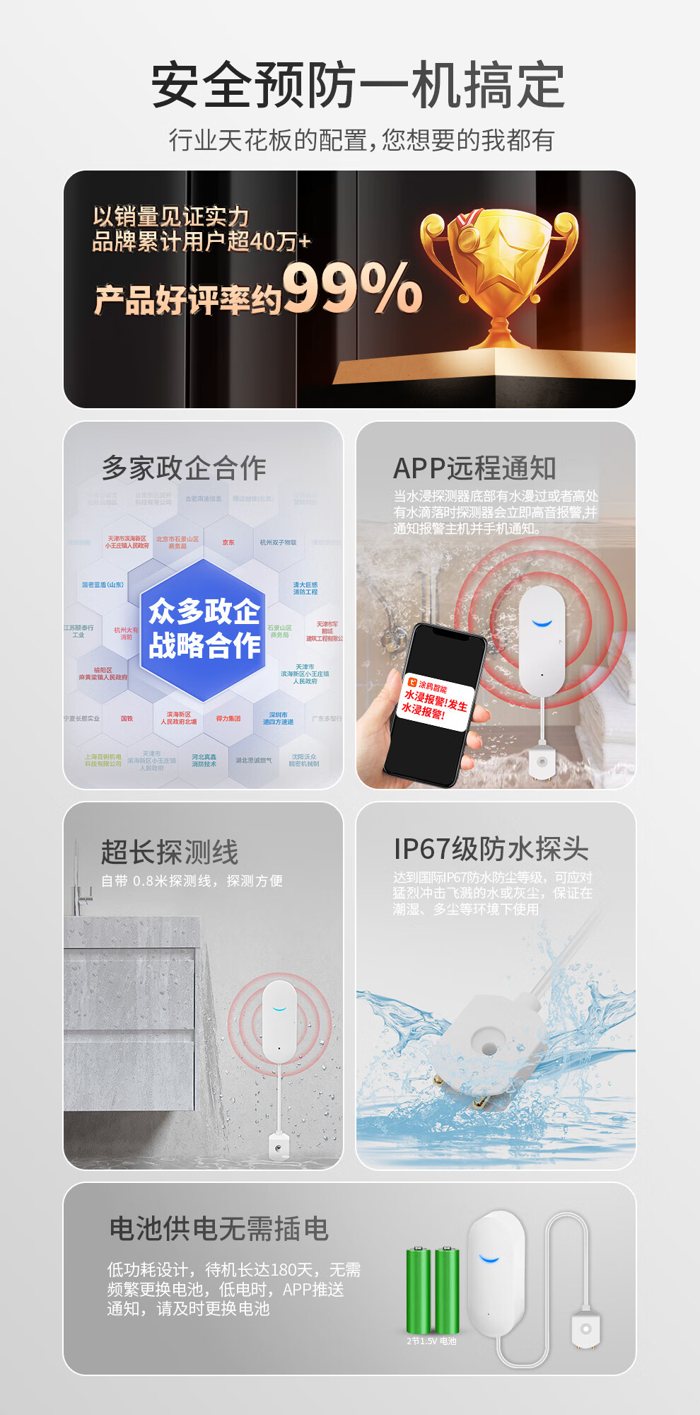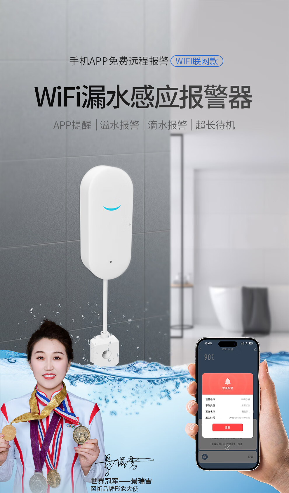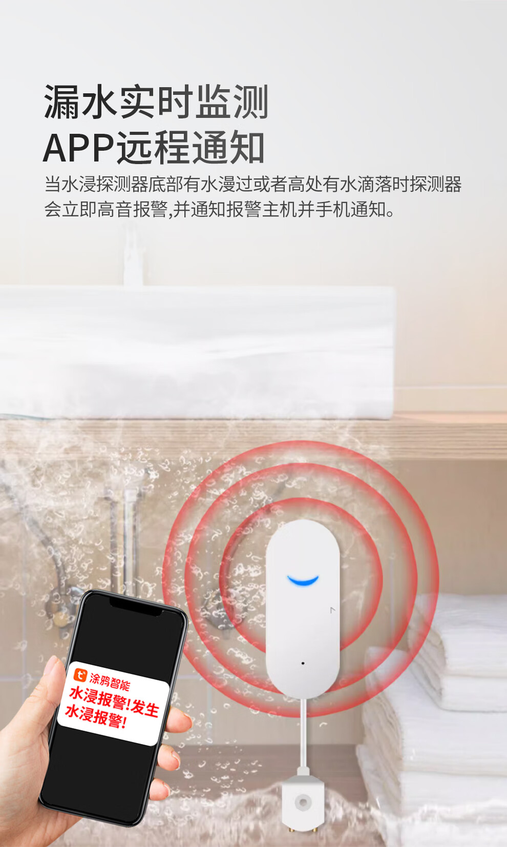 Gangqi SW100-WIFI water leak alarm Tuya smart home app remote notification flood alarm sensor kitchen warehouse water level drip leakage full water flooding overflow sensor