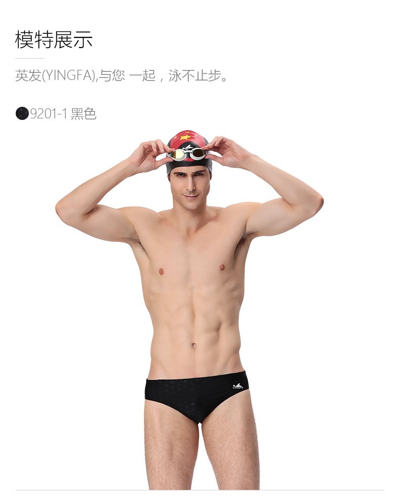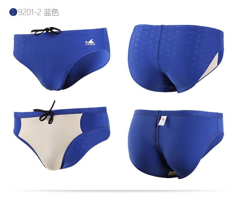 YINGFA swimming trunks men's sharkskin briefs racing chlorine-resistant training competition professional waterproof quick-drying swimming trunks Y9201-2 blue 2XL recommended waist circumference 86-90CM