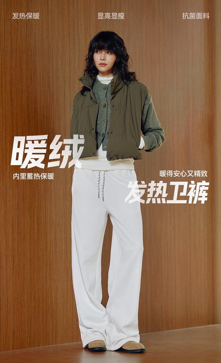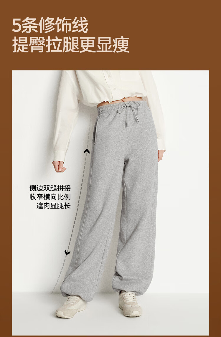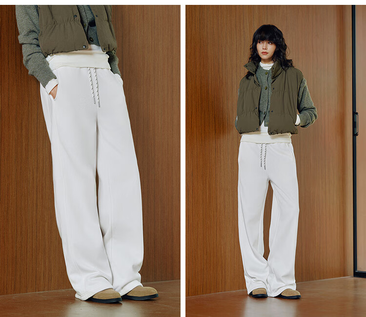 Semir Fever Antibacterial Fleece Drawstring Loose 2025 Versatile Wide Leg Pants Women's Winter Casual Pants 109725127001