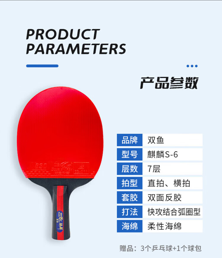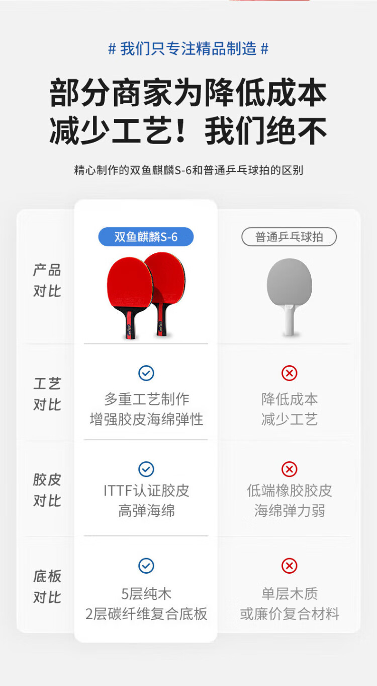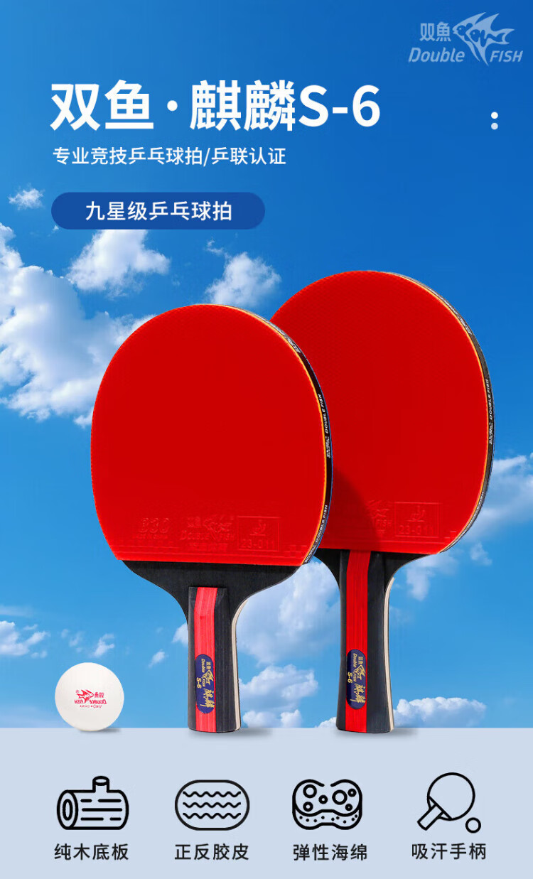 Pisces (DOUBLE FISH) Kirin S6 table tennis racket, competition-level racket, professional-level pen-hold and horizontal shot, beginner's racket, a pair of pen-hold shots