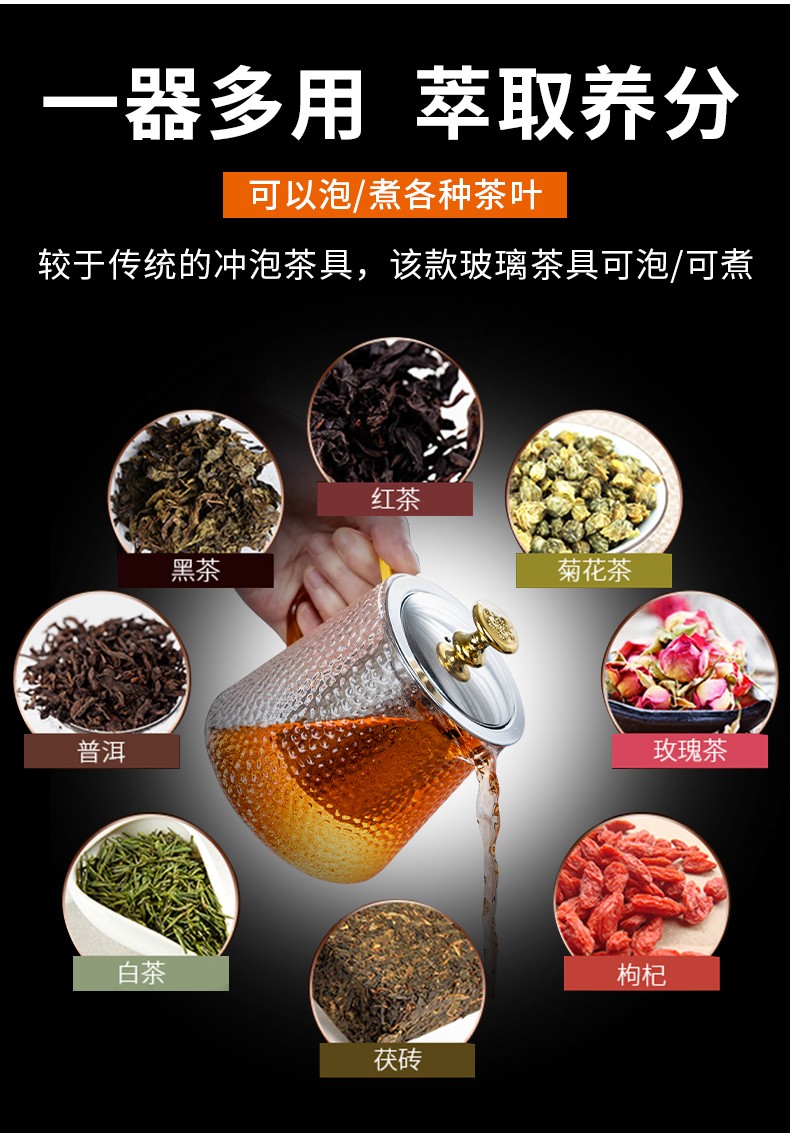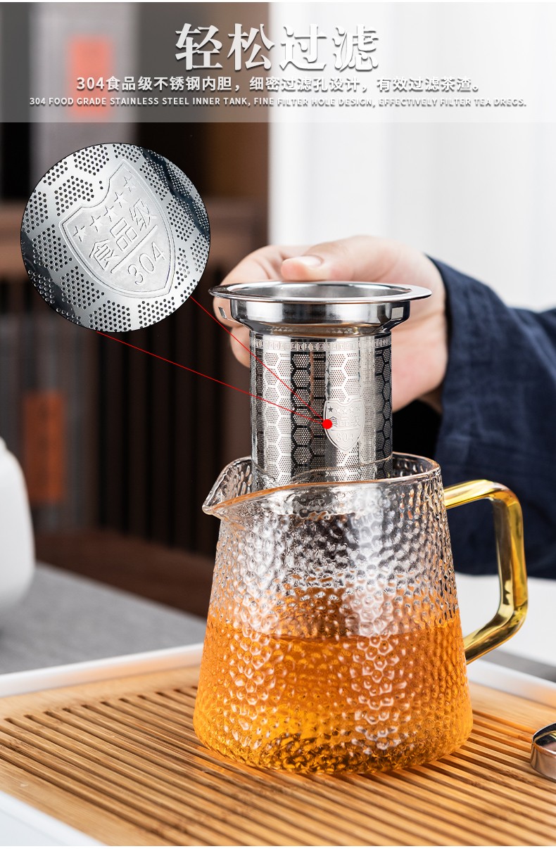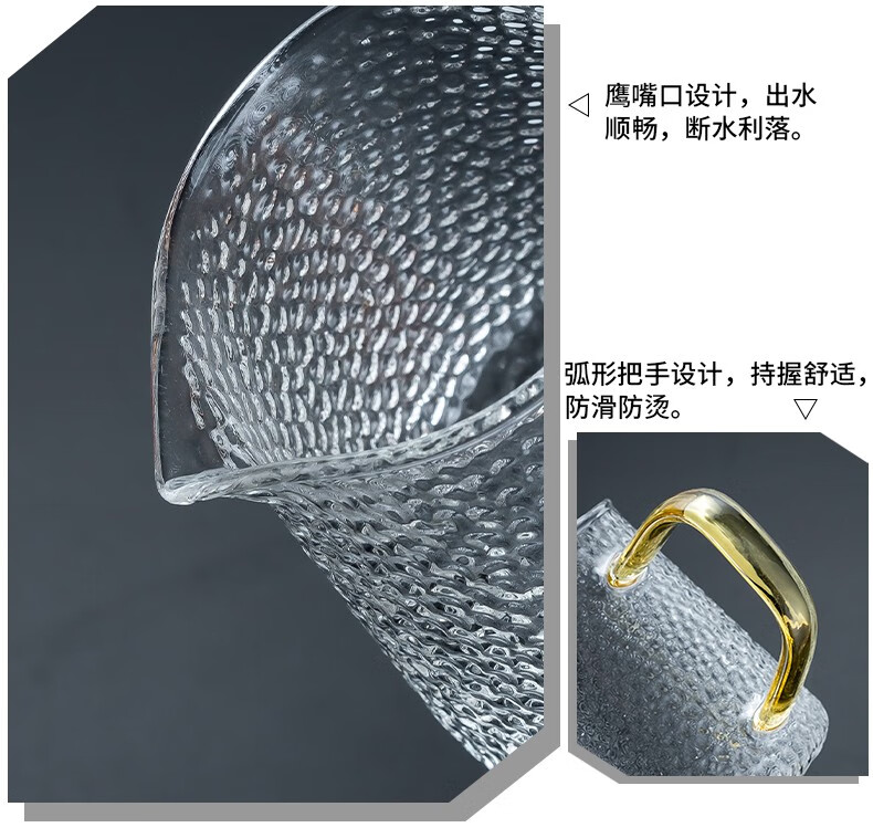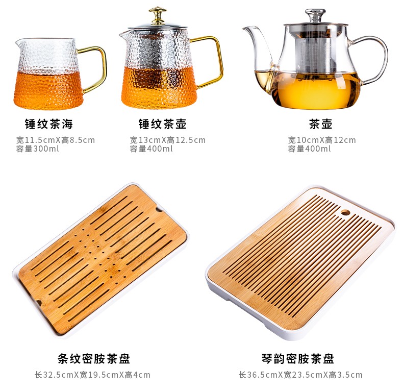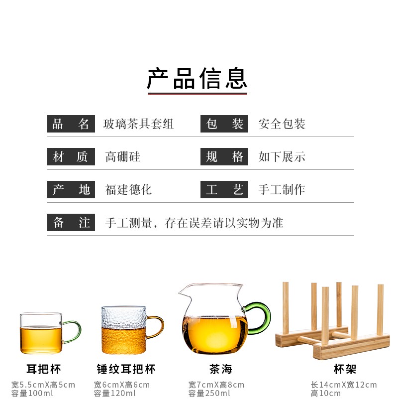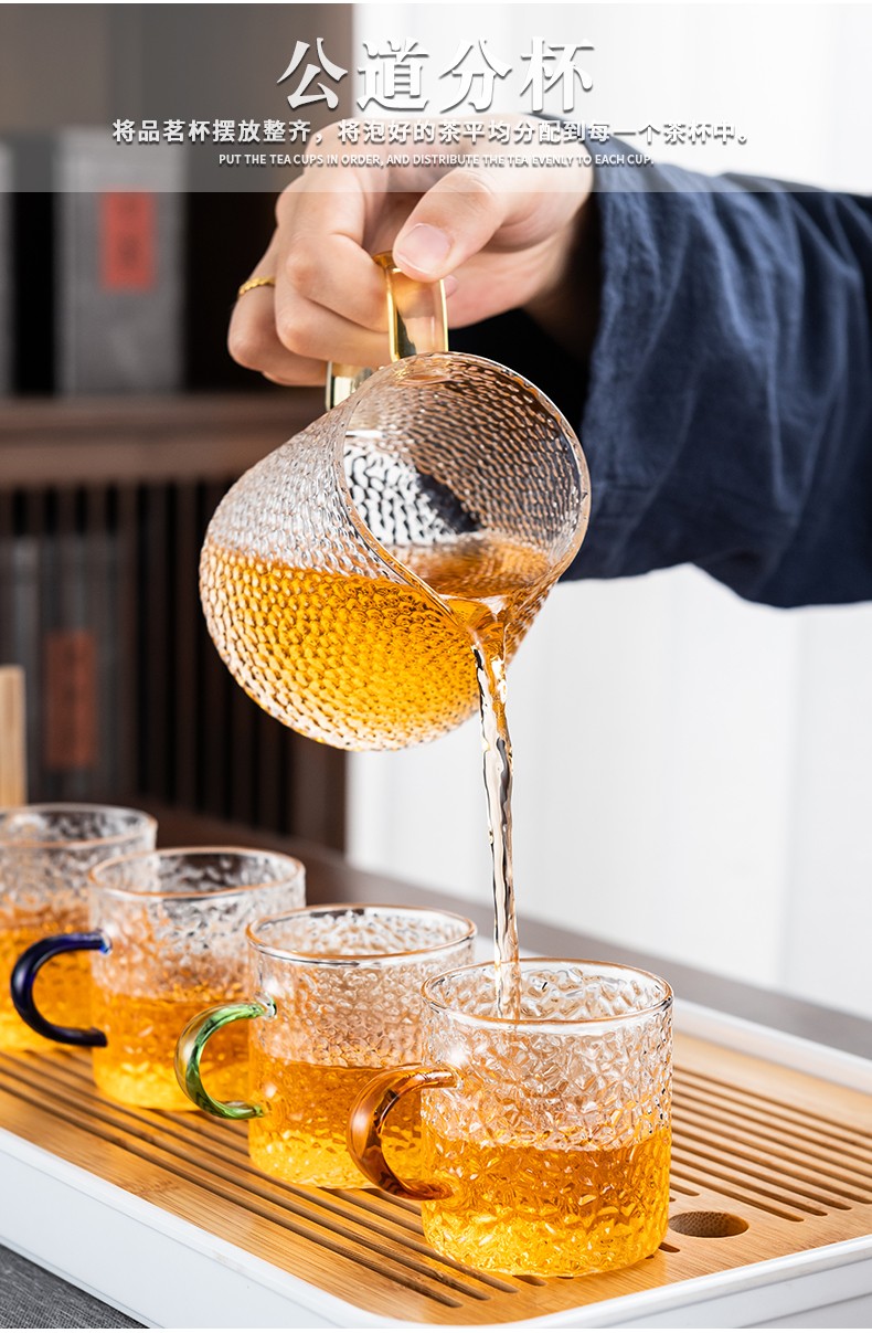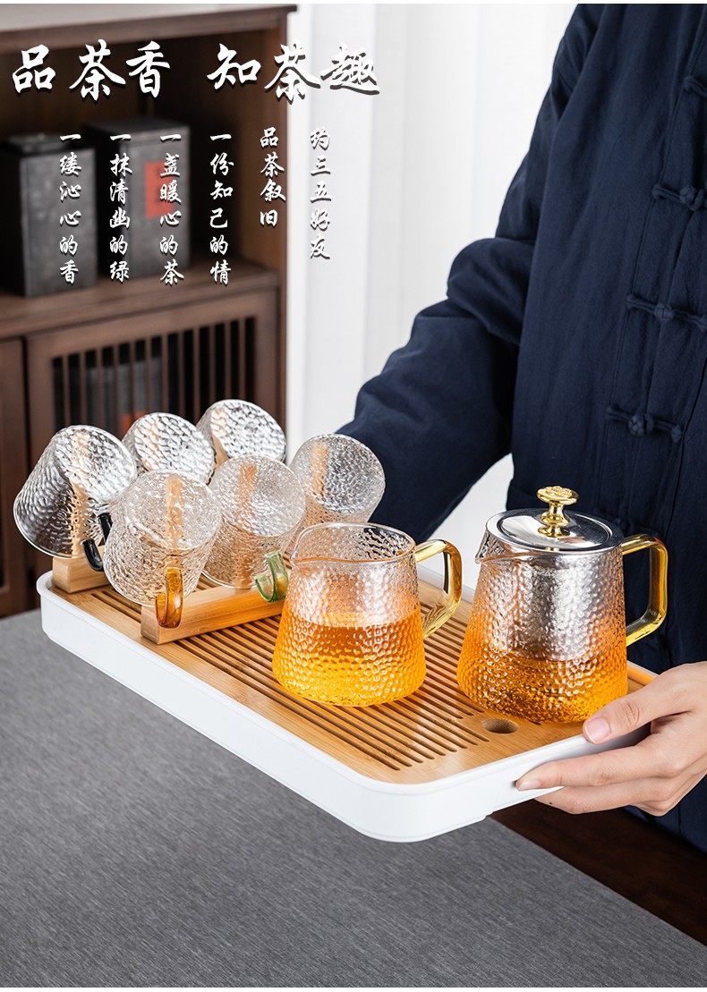 Zhengyang glass tea set set for home small set of Kung Fu tea cups simple transparent black tea tea set office living room tea elegant pot (dragon cup/six colors) cup holder + rectangular (striped) white