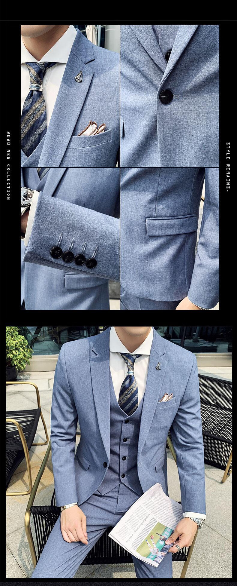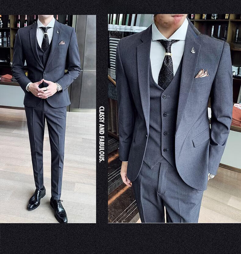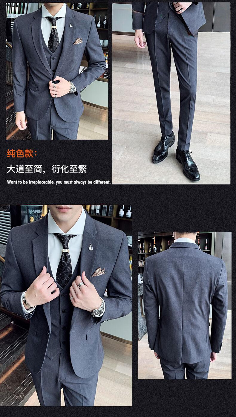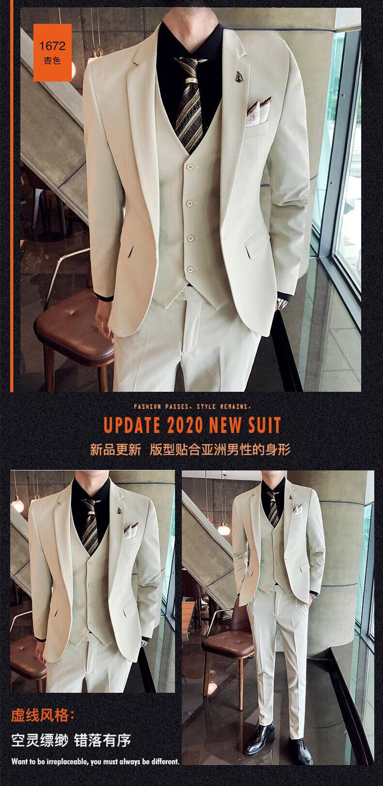 Pierre Cardin Men's Casual Suit Suit Men's Slim Korean Style Trendy Handsome Small Suit Groom Wedding Dress New Product Apricot Suit + Trousers Two-piece Set L