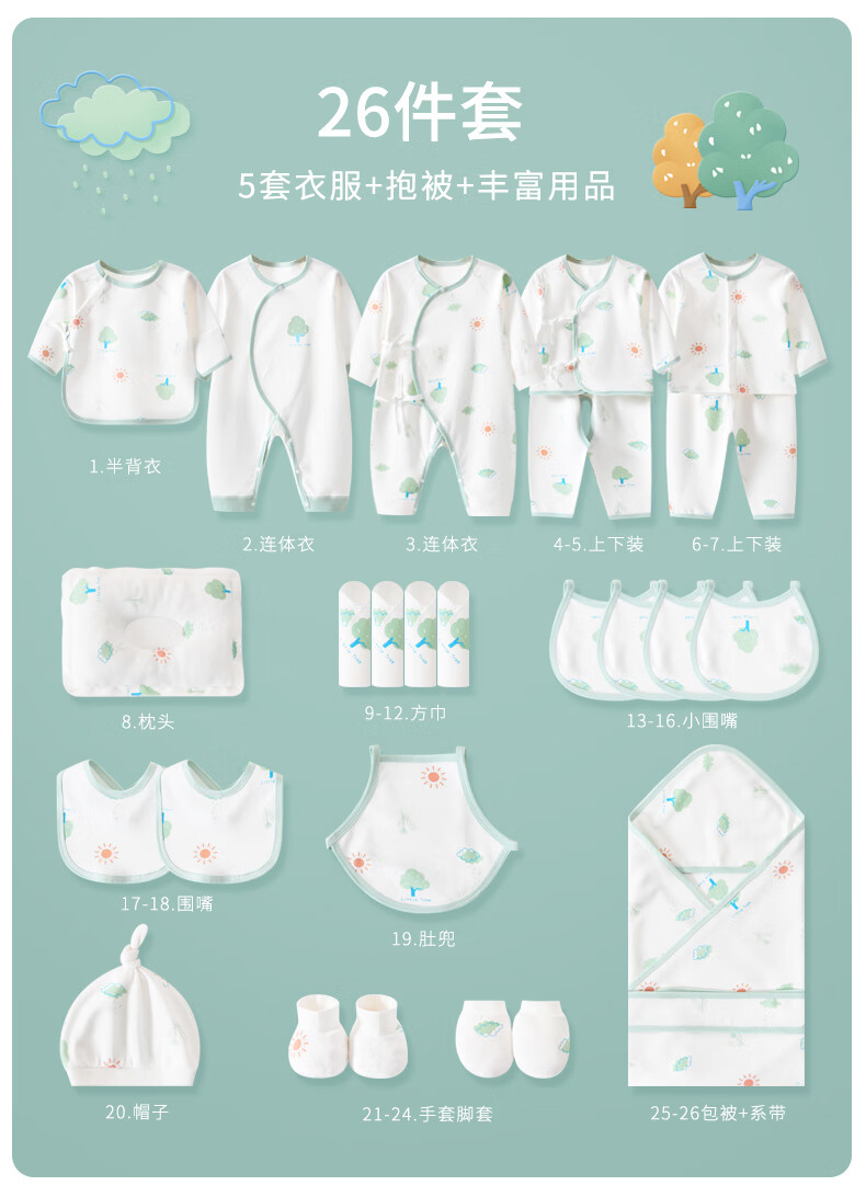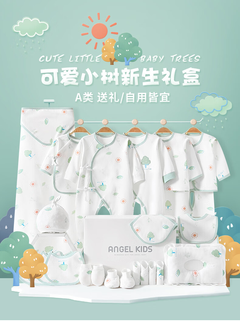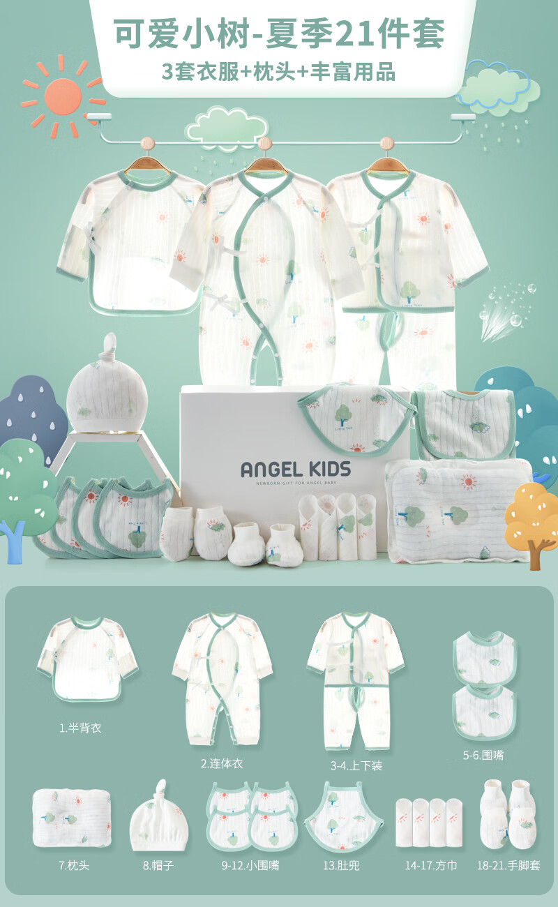 Pengyou Baby Clothes Pure Cotton Spring, Summer, Autumn and Winter Newborn Gift Box Set Newborn Baby Newborn Gift Maternal and Infant Supplies 21-piece Set Little Tree Four Seasons 59cm (Recommended 0-3 Months)