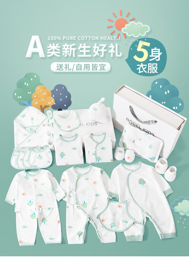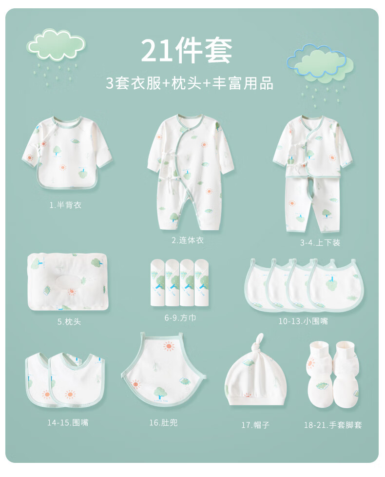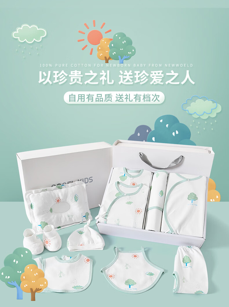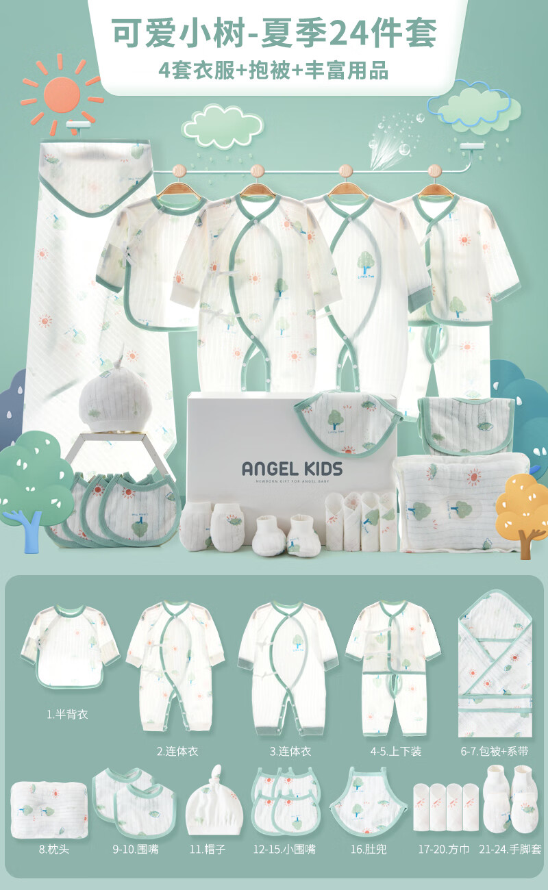 Pengyou Baby Clothes Pure Cotton Spring, Summer, Autumn and Winter Newborn Gift Box Set Newborn Baby Newborn Gift Maternal and Infant Supplies 21-piece Set Little Tree Four Seasons 59cm (Recommended 0-3 Months)