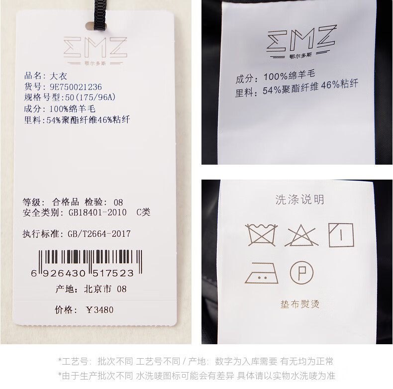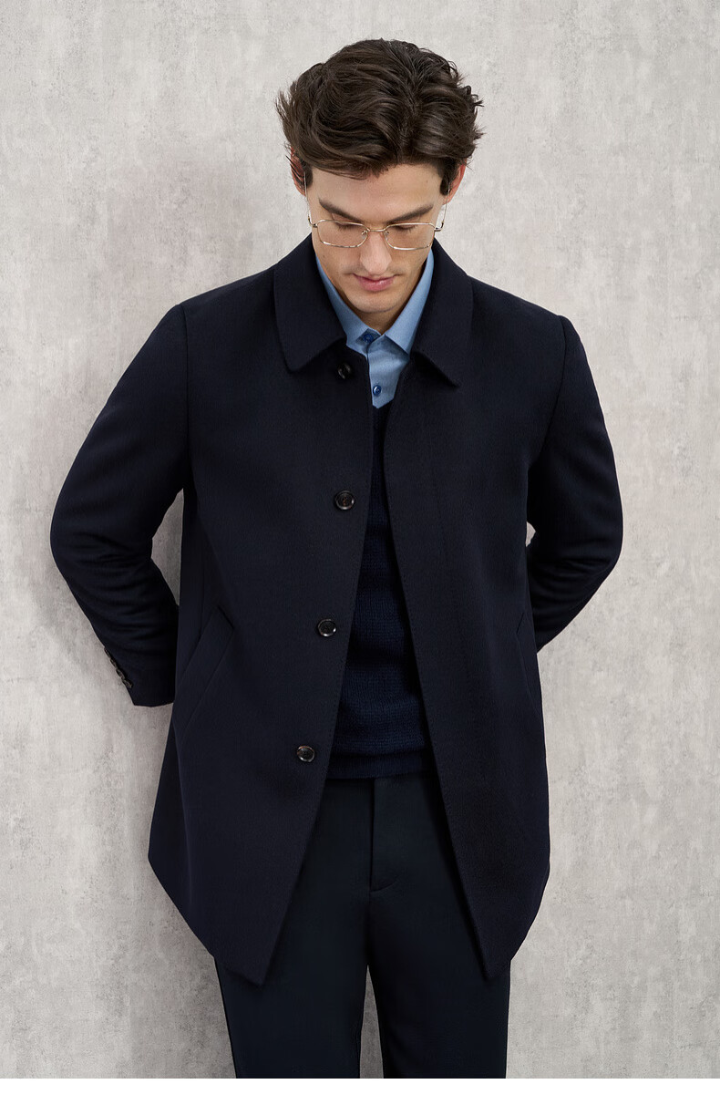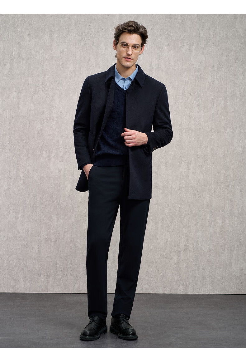 EMZ Ordos 100% sheep wool men's mid-length woolen coat lapel style simple business casual