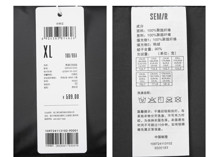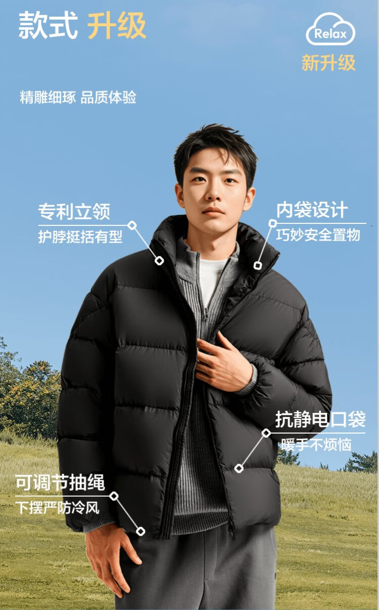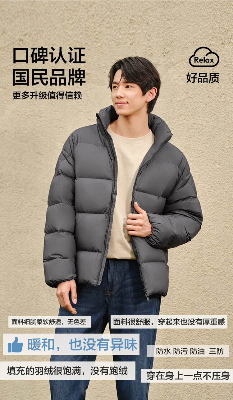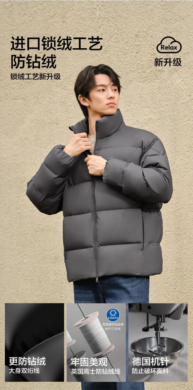 Semir Easy Down丨Down Jacket Men's Winter Three-Proof Jacket 90 Down Thick Stand Collar Bread Jacket 109724113102