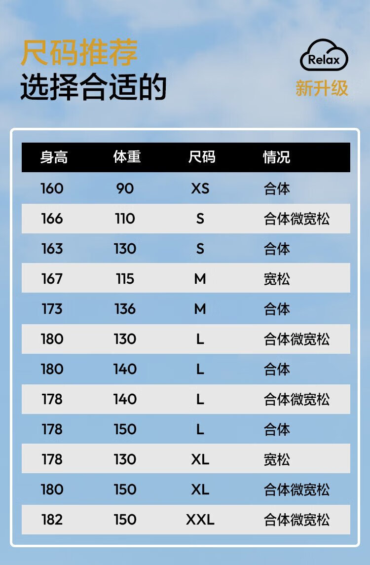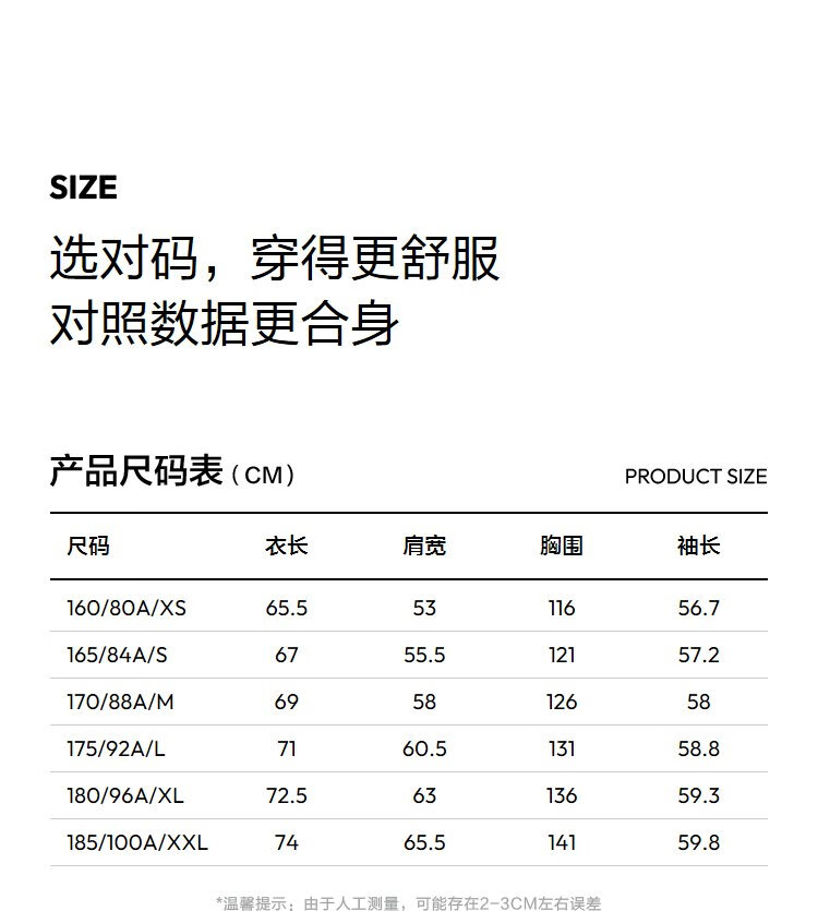 China (cm) 160-165/84-86 165-170 / 88-90 167-172 / 92-96 168-173 / 98-102 170-176 / 106-110