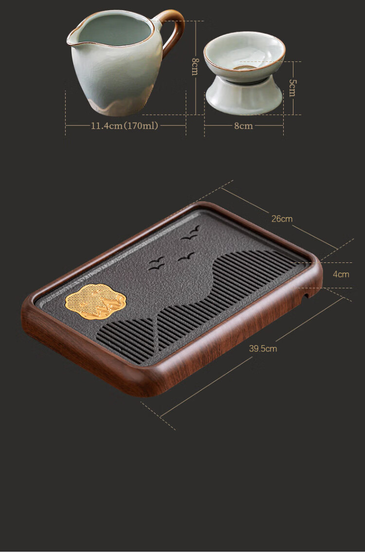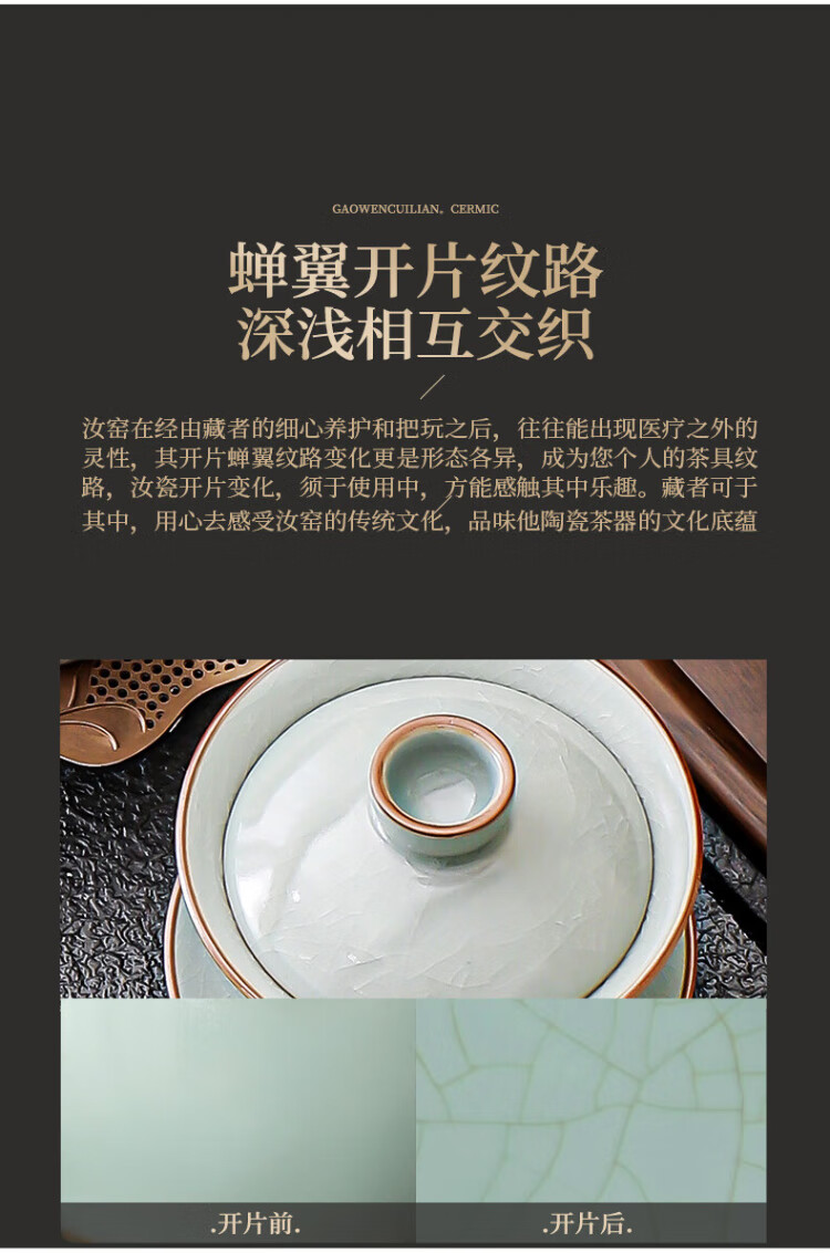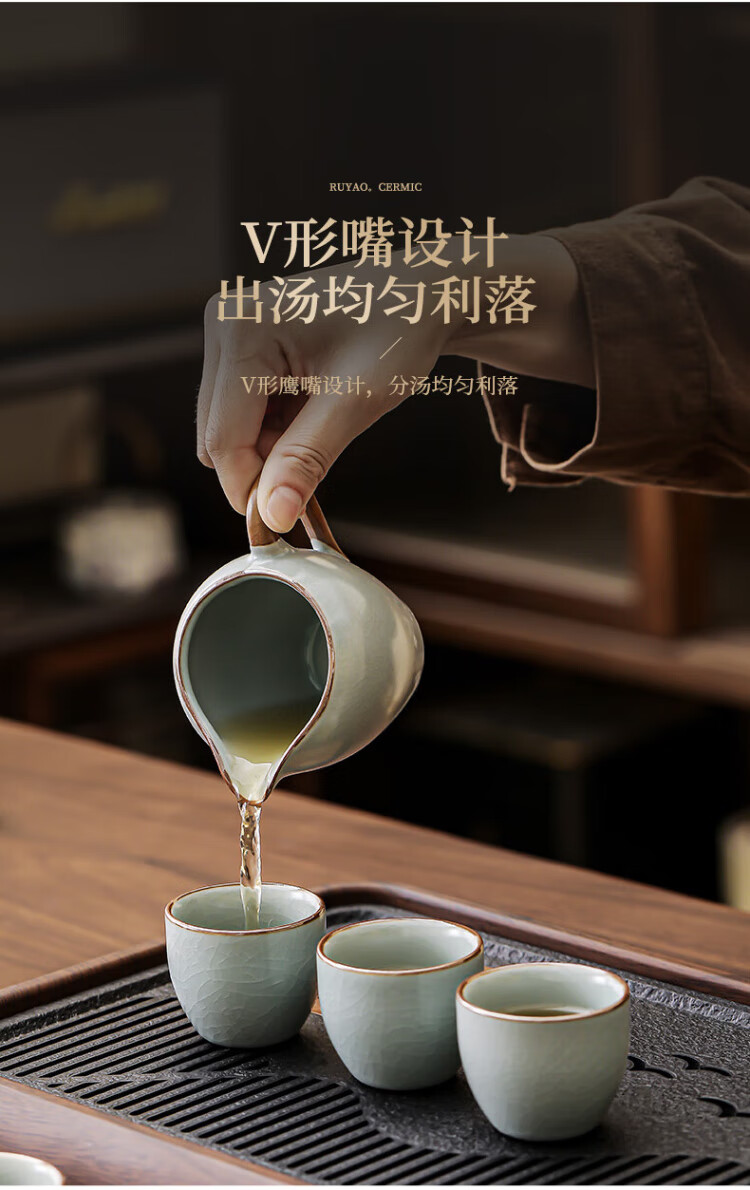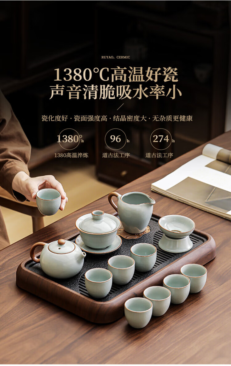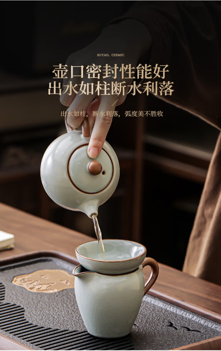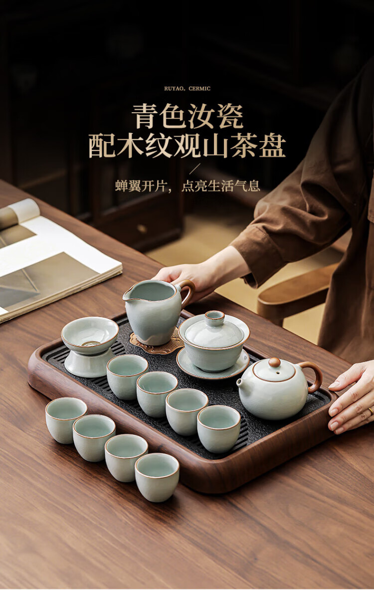 Bowei (BW) sky blue Ru kiln tea set household kung fu tea set complete set can grow gold silk cicada wings pattern happy green with mountain view
