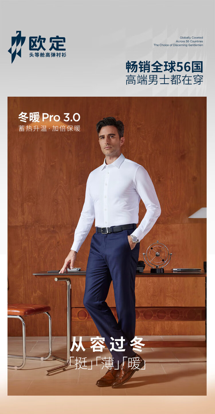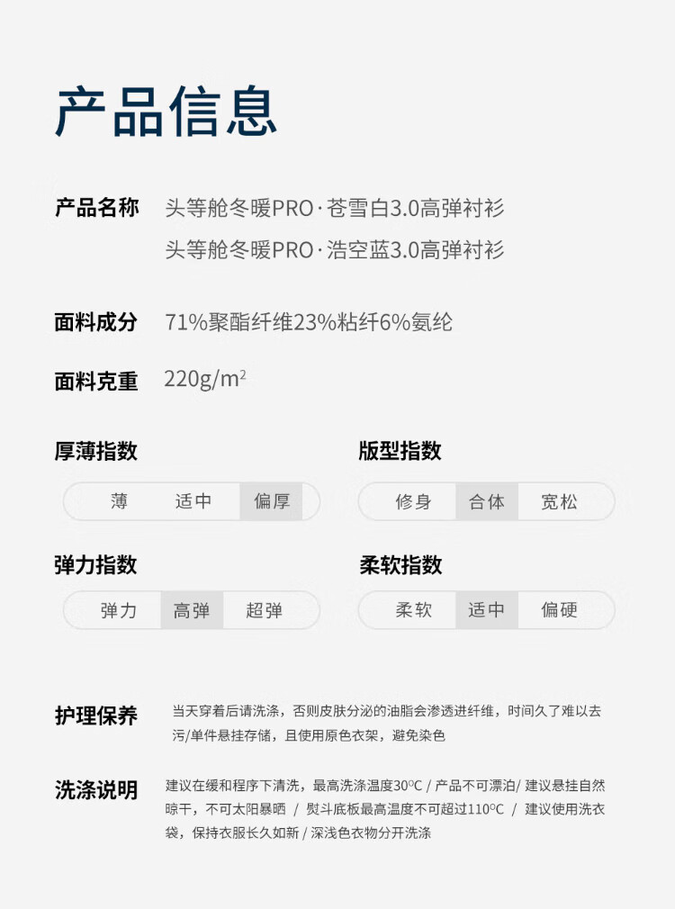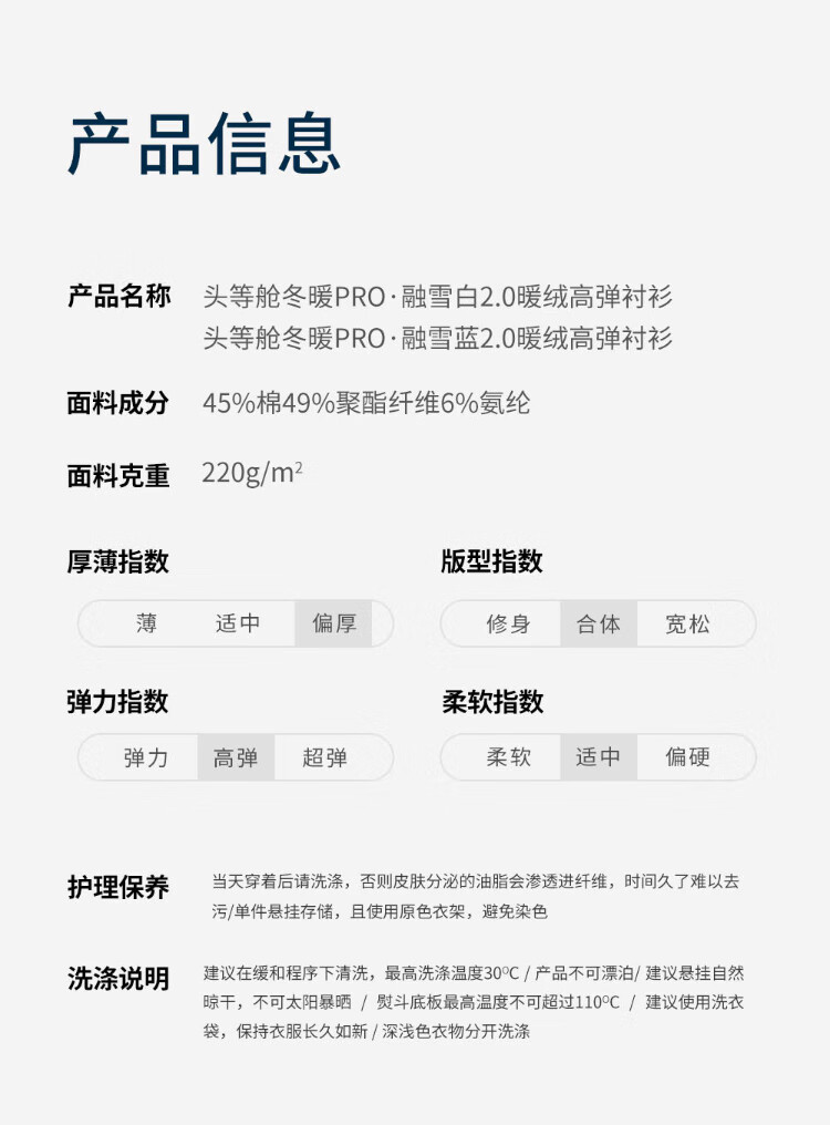 Ouding First Class Winter Warm Snow White Blue Warm Velvet High Elastic Shirt Thickened Warm Shirt Haokong Blue 44