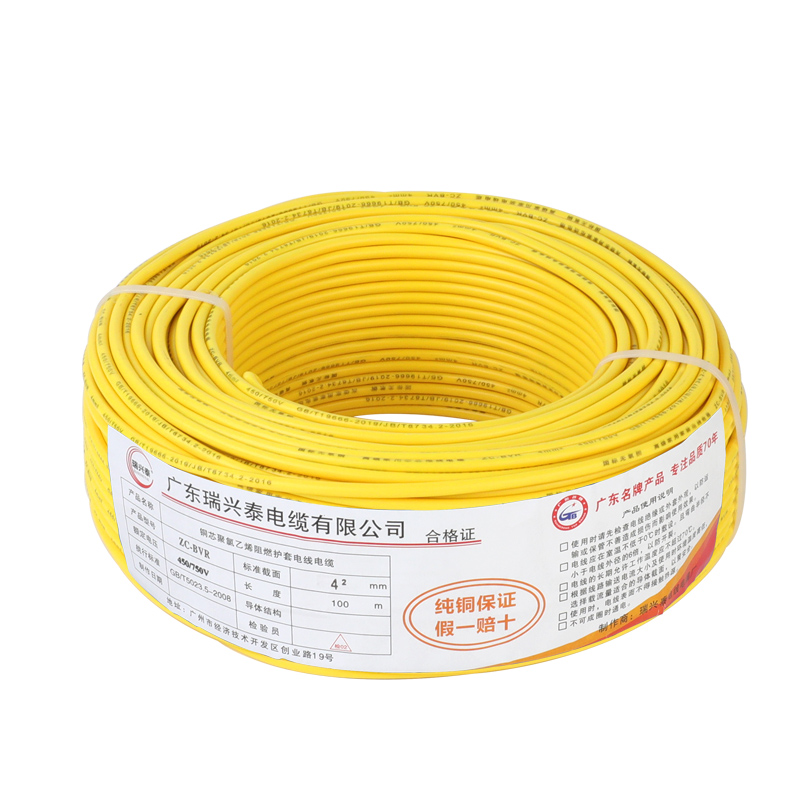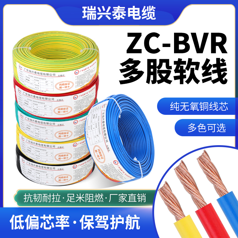 National standard wire home decoration BVR wire 1/1.5/2.5/4/6 square pure copper core cable multi-stranded flexible wire flame retardant flexible wire 6 square meters 100 meters red