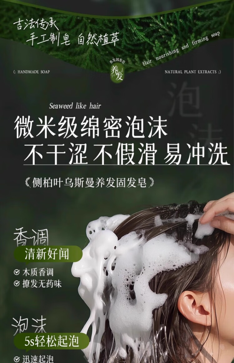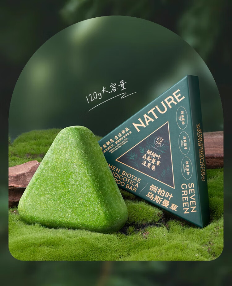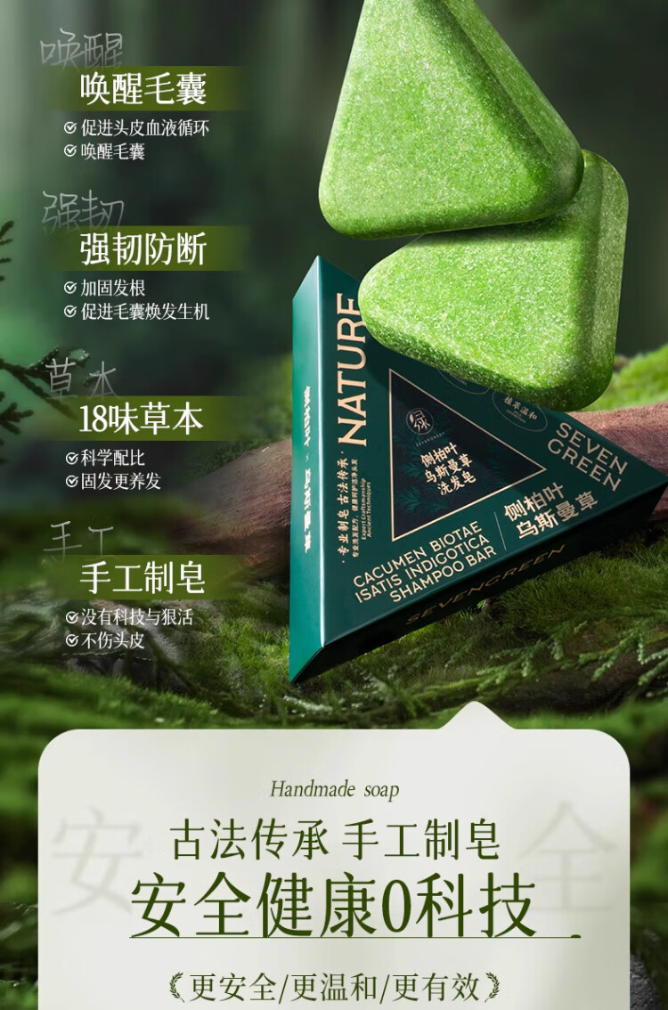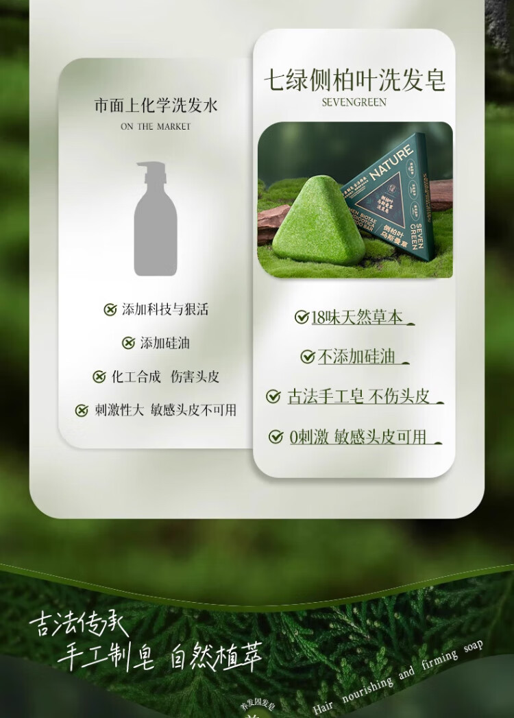 Seven Green Platycladus Leaf Shampoo Soap Usman Grass Shampoo Soap Polygonum multiflorum Chinese herbal medicine to prevent hair breakage, control oil, remove dandruff and fluffy 3 boxes