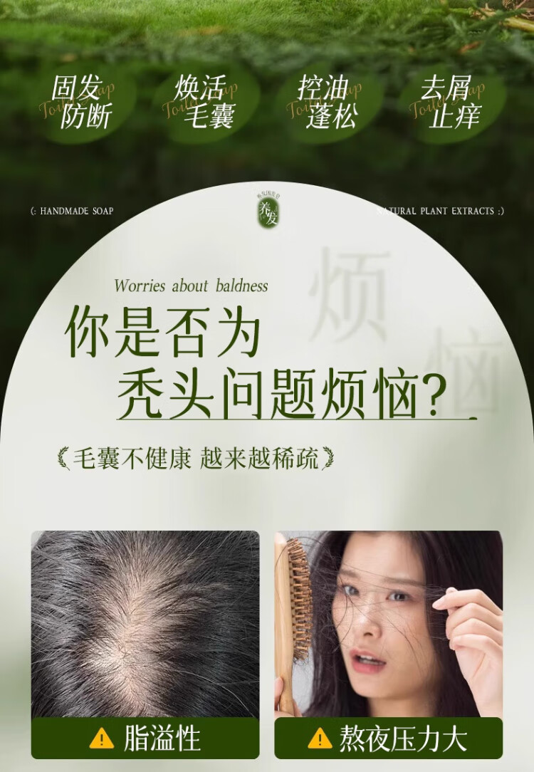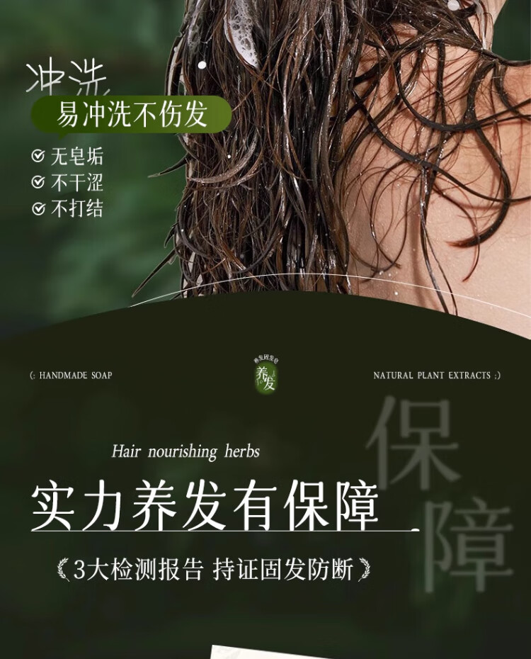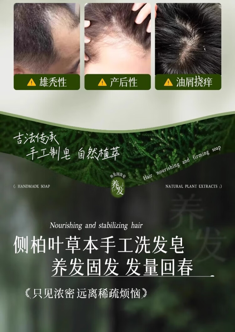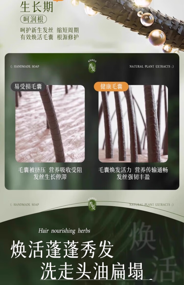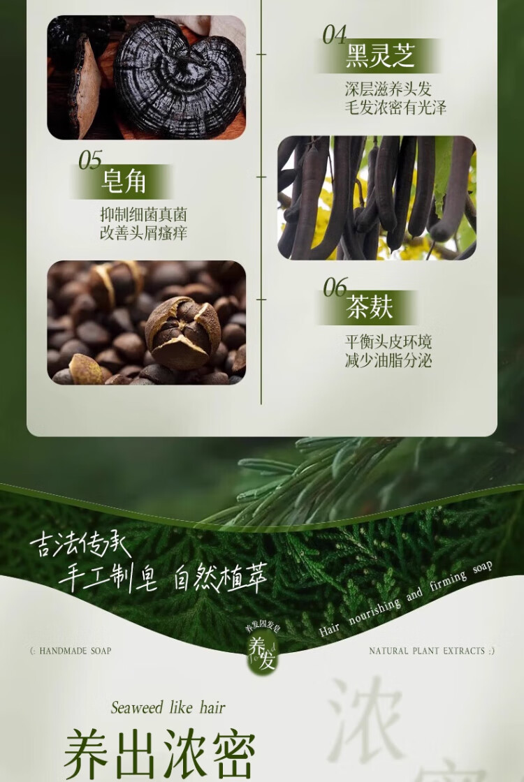 Seven Green Platycladus Leaf Shampoo Soap Usman Grass Shampoo Soap Polygonum multiflorum Chinese herbal medicine to prevent hair breakage, control oil, remove dandruff and fluffy 3 boxes