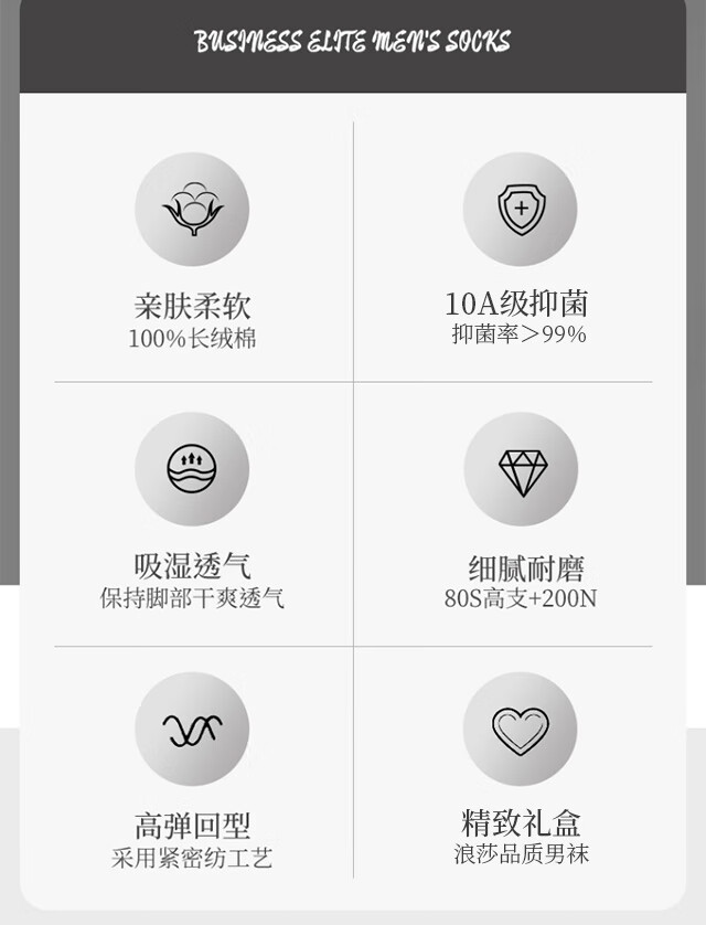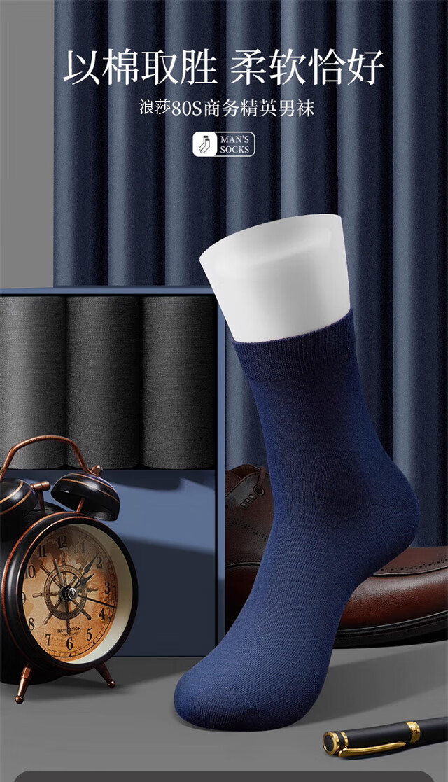 Langsha men's socks men's 100% cotton autumn and winter men's socks 10A antibacterial and deodorant business mid-calf cotton stockings 6 pairs