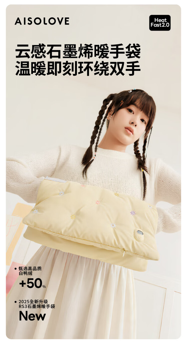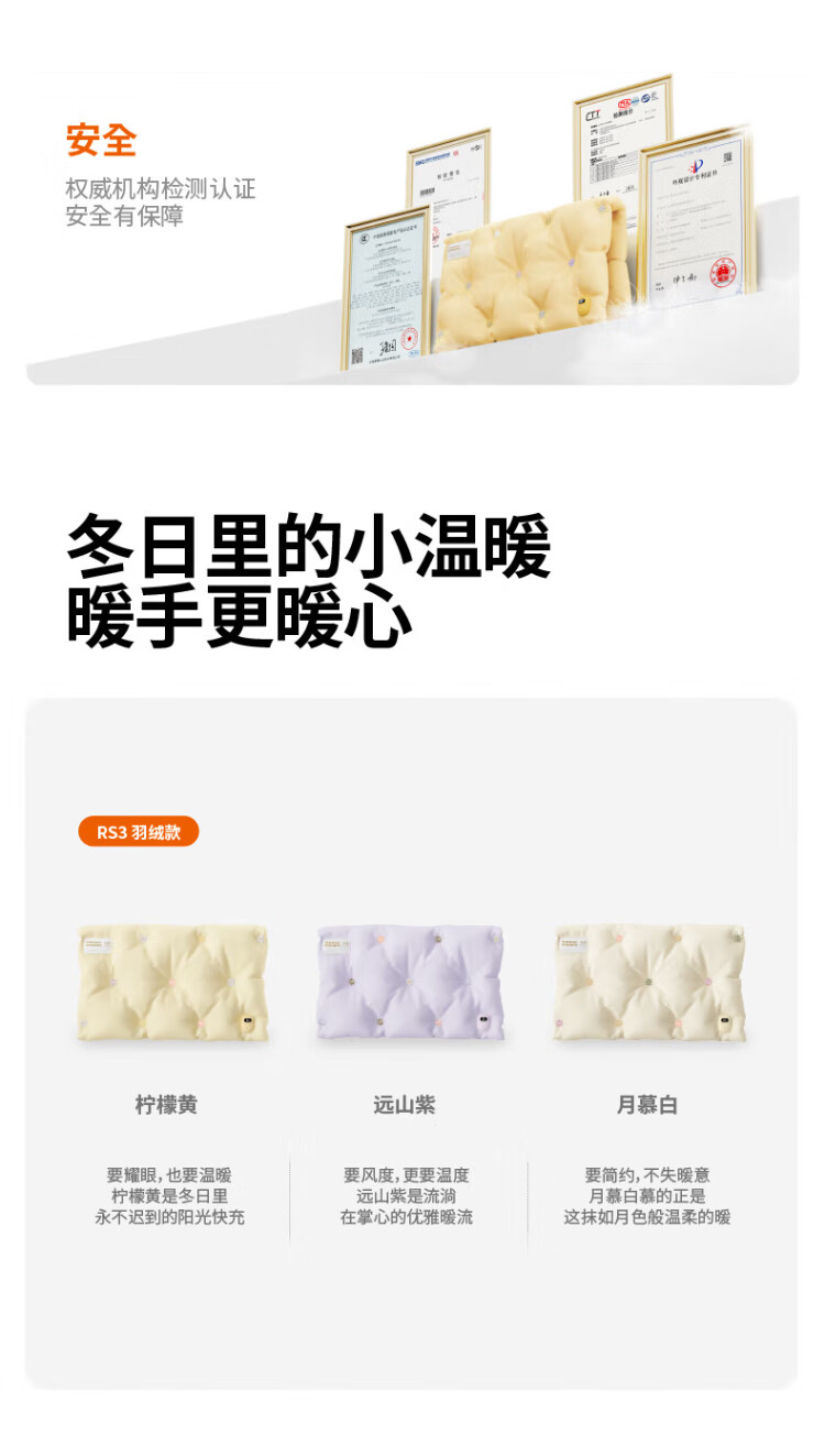 Made of Sule quality RS3 graphene down hand warmer bag plug-in hand warmer waterless hot water bottle hand warmer artifact warm baby yellow