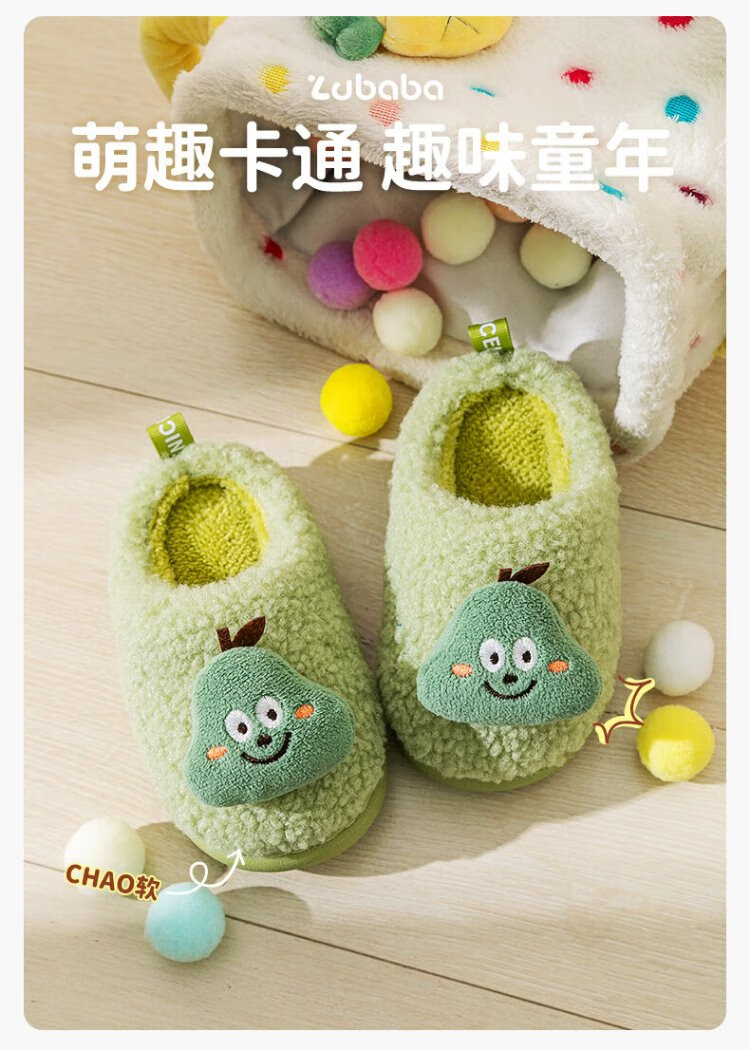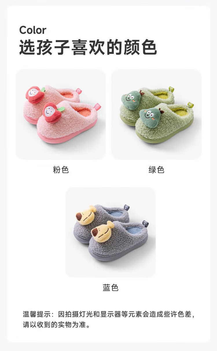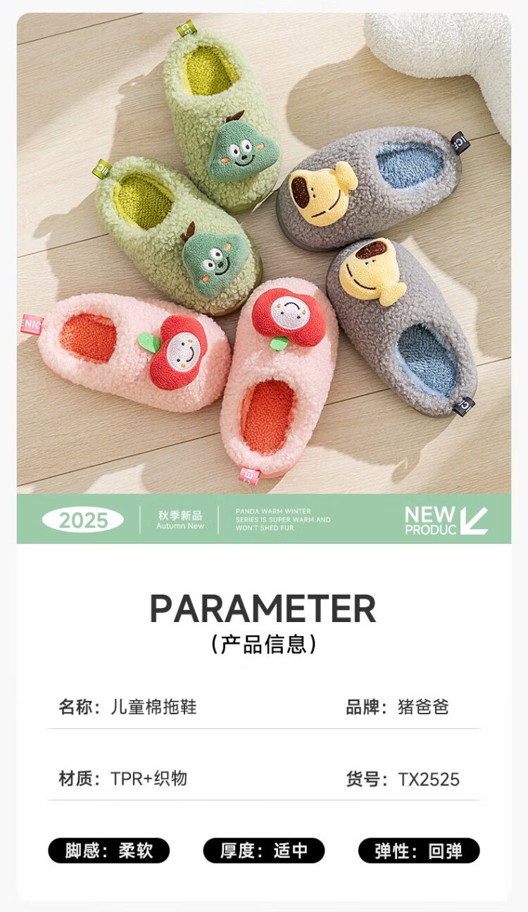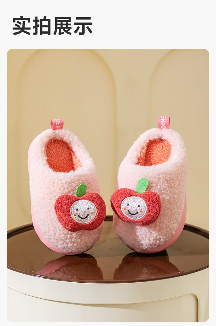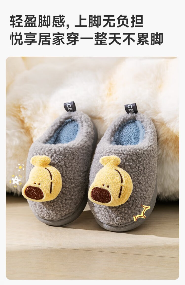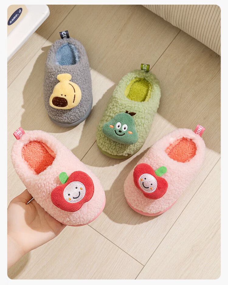 Pig Daddy Children's Slippers Autumn and Winter Boys Home Indoor Warm Anti-Slip Girls Baby Soft Bottom Children's Cotton Slippers Powder 20