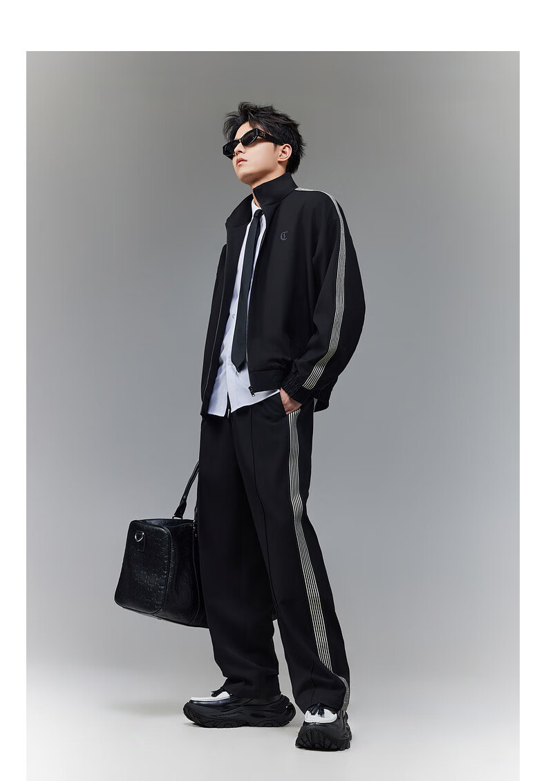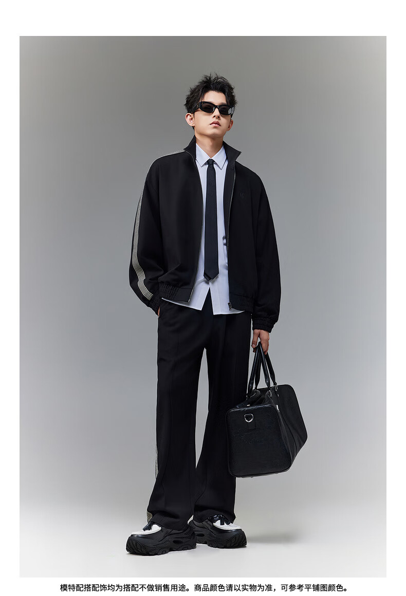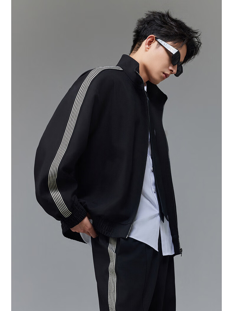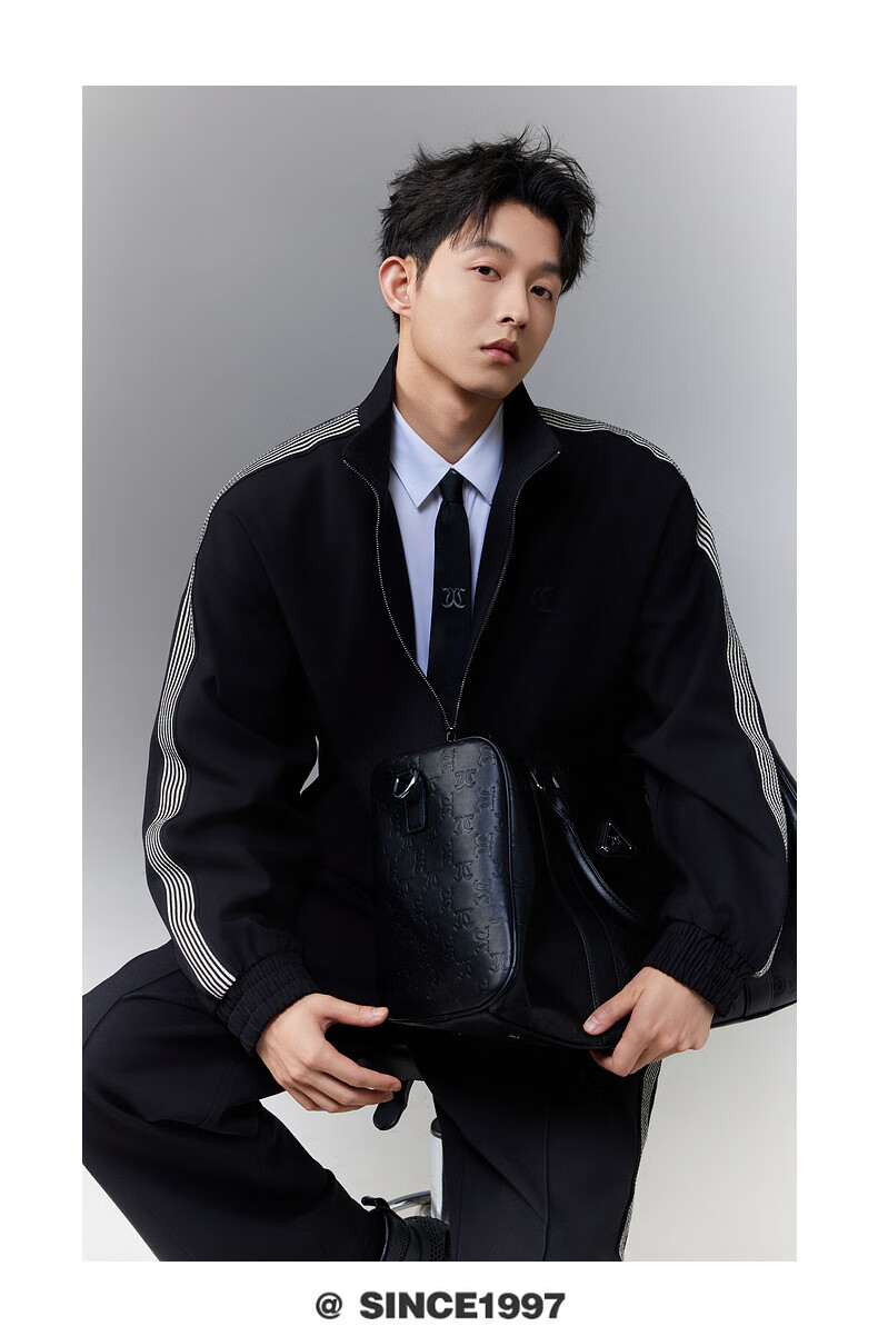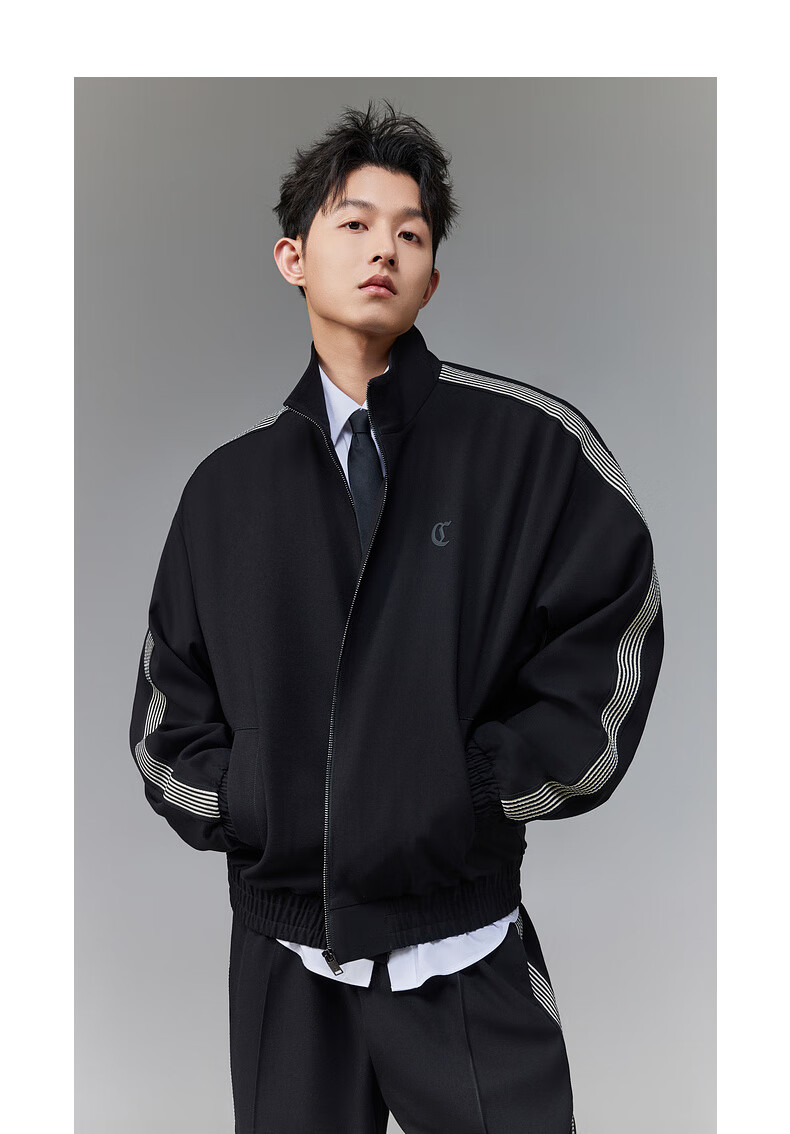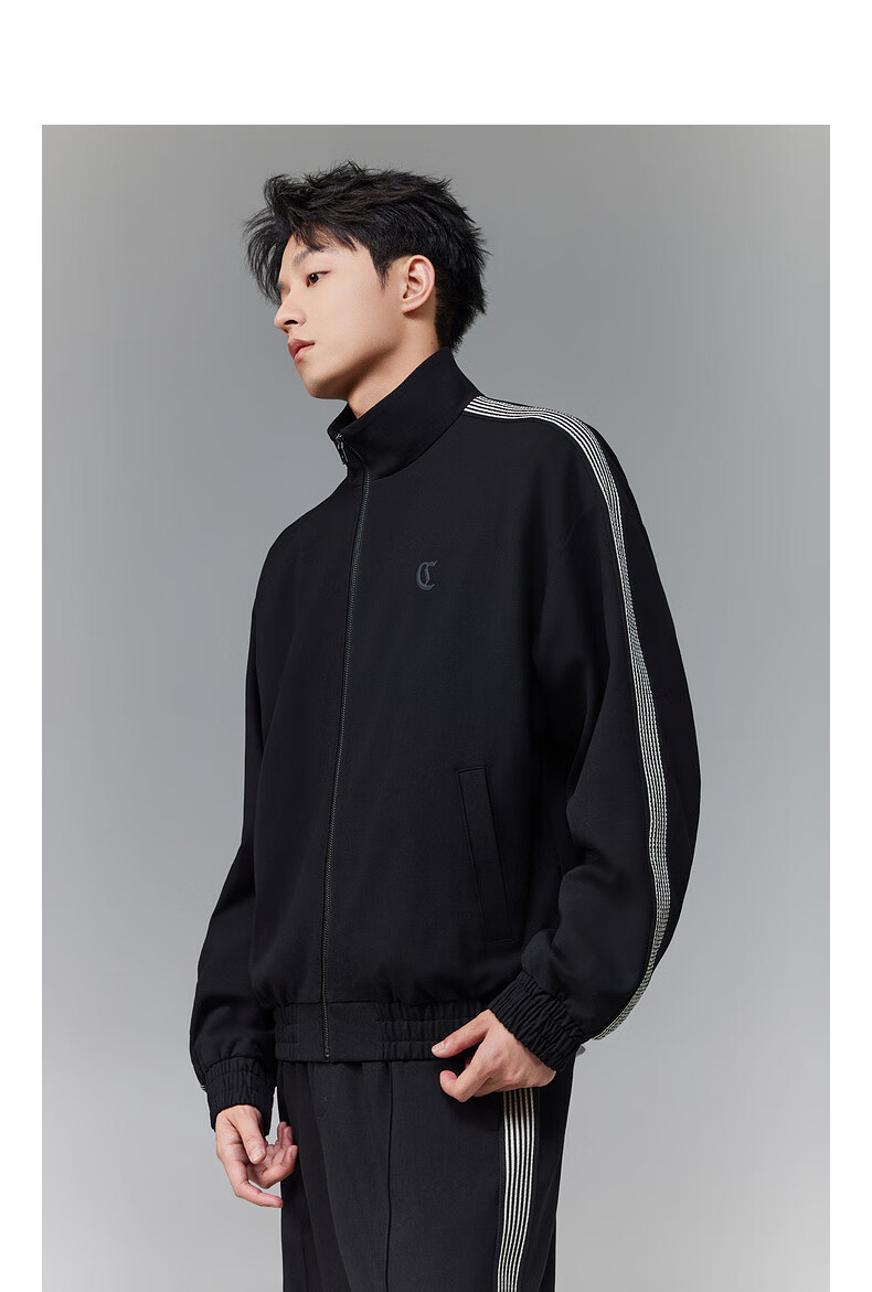 CABBEEN imitation wool twill TR jacket men's sleeves with webbing business sports winter stand-up collar long-sleeved jacket
