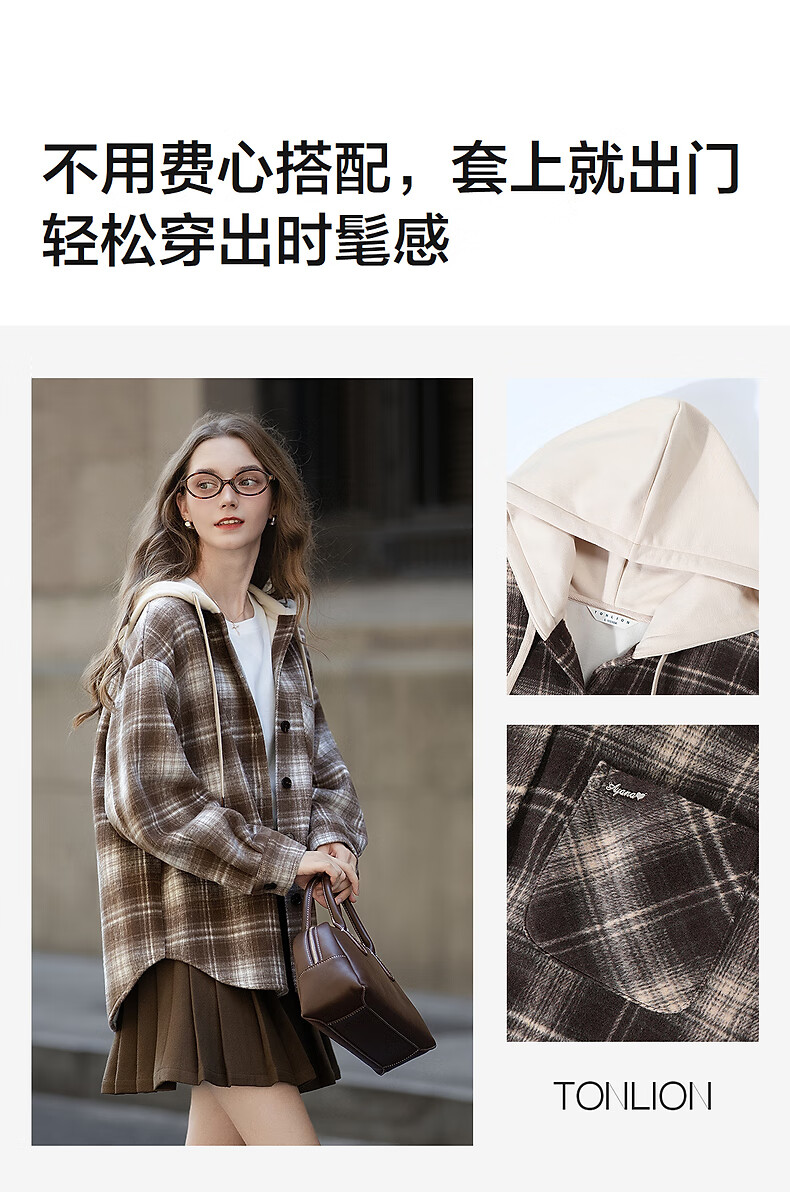 TonLion 2025 winter women's casual hooded coat style long-sleeved shirt