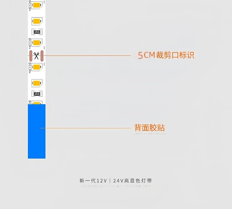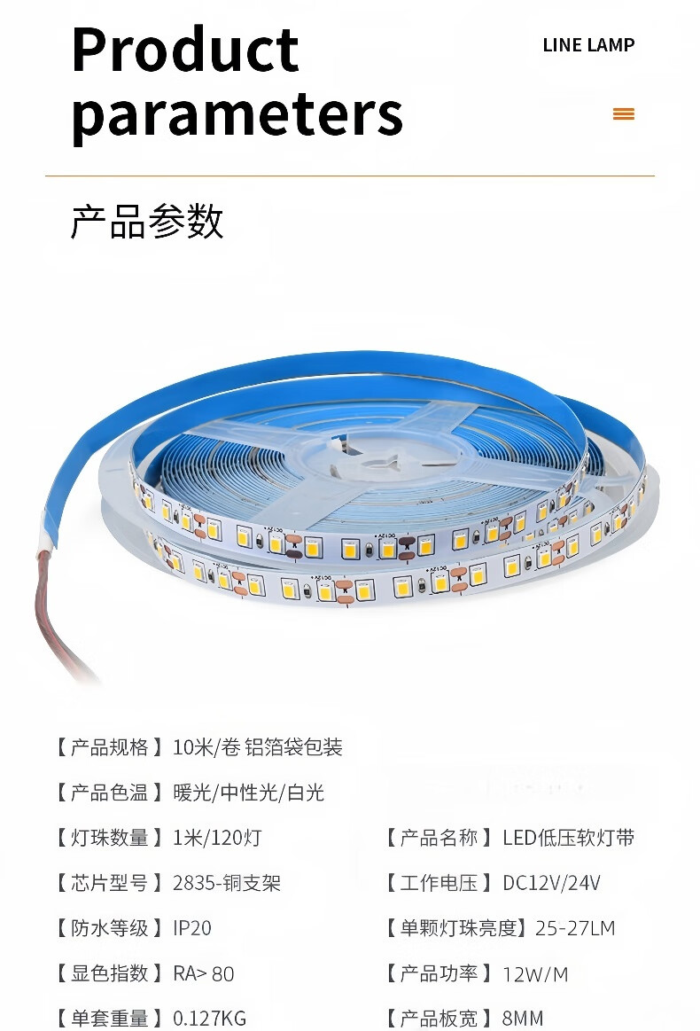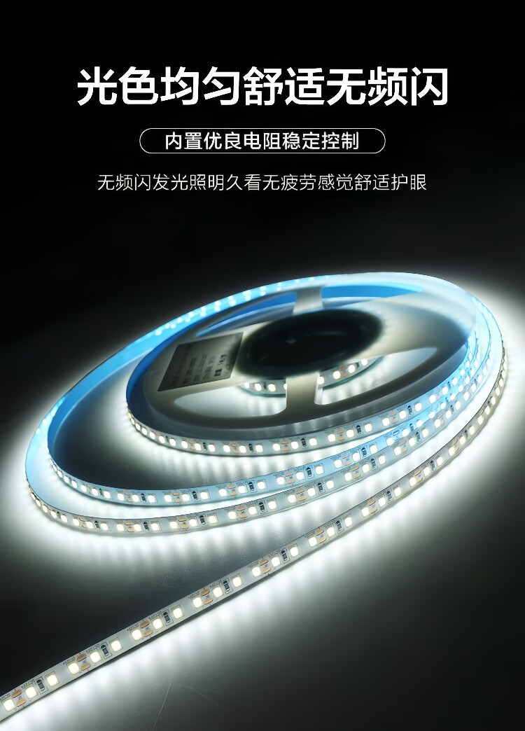 Yunzhizhuo LED low voltage 24V/12V bare board light strip self-adhesive flicker-free linear light strip embedded 120 lights ultra-thin SMD light strip 24V-white light-10 meters