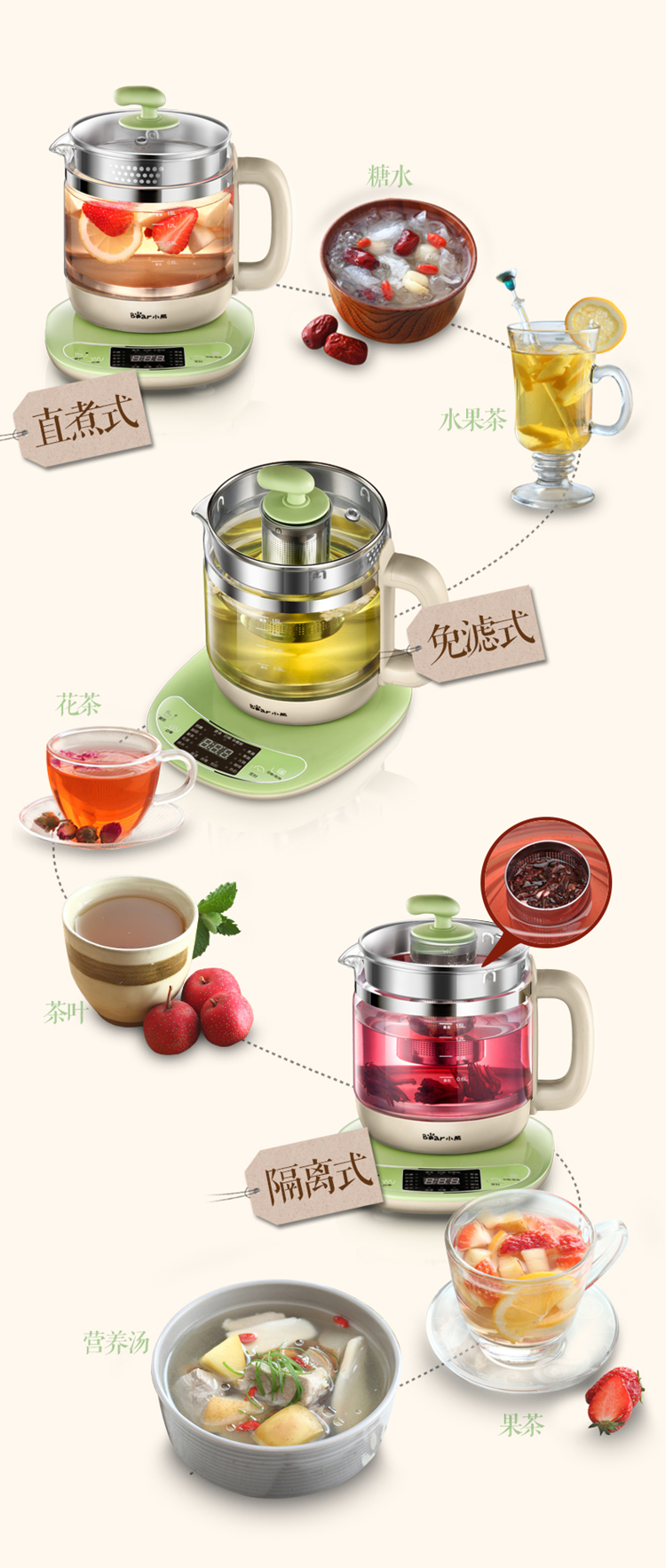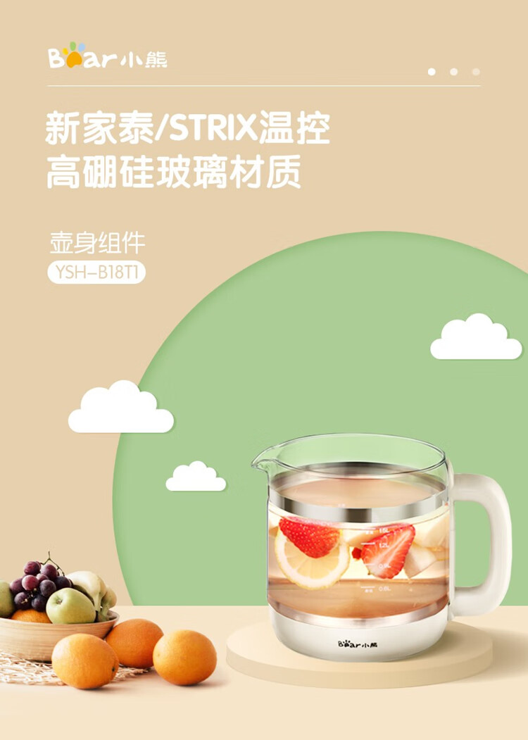 小熊(Bear) 养生壶配件玻璃壶身煮茶壶烧水壶盖原厂适配 YSH-B18T1 第四代玻璃壶身YSH-B18T1(不含盖)