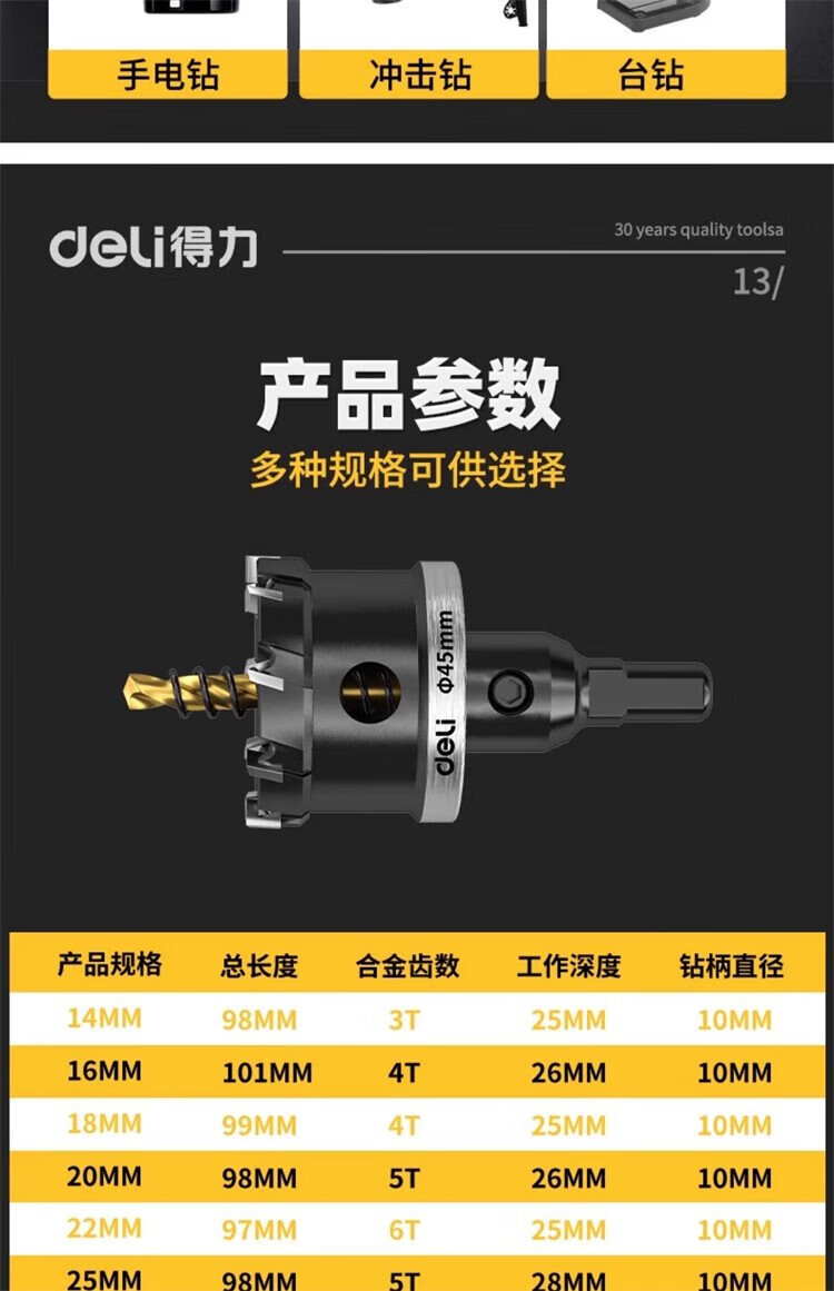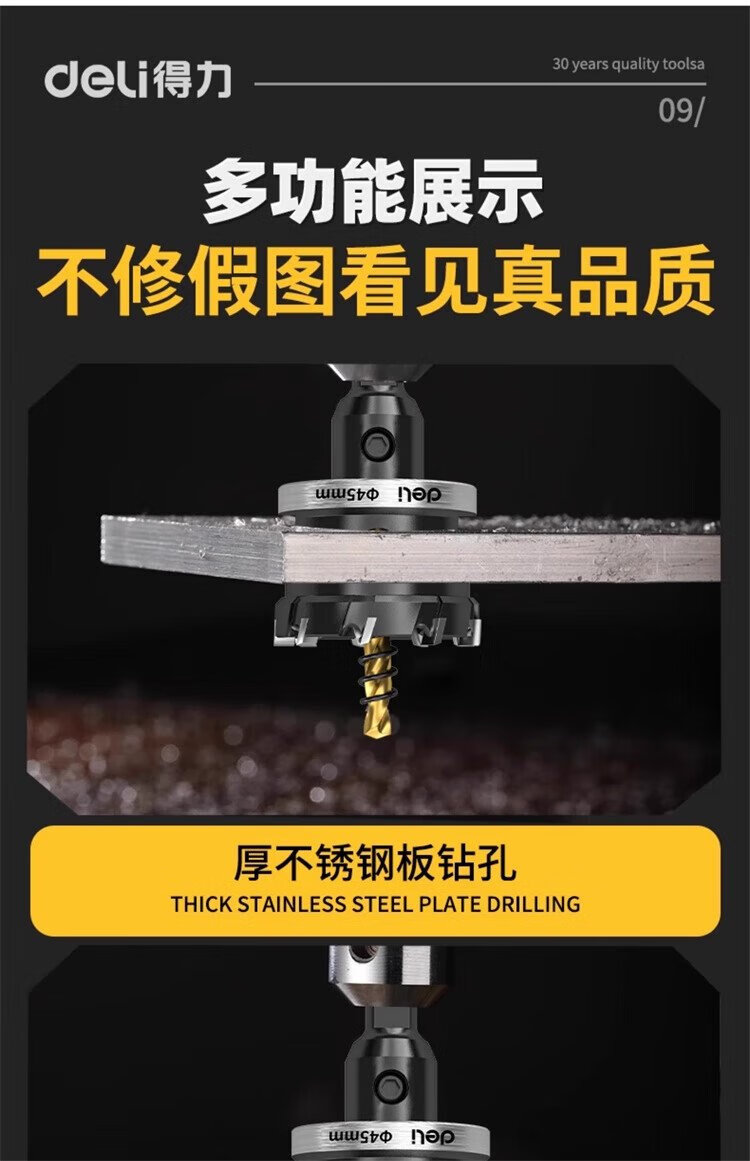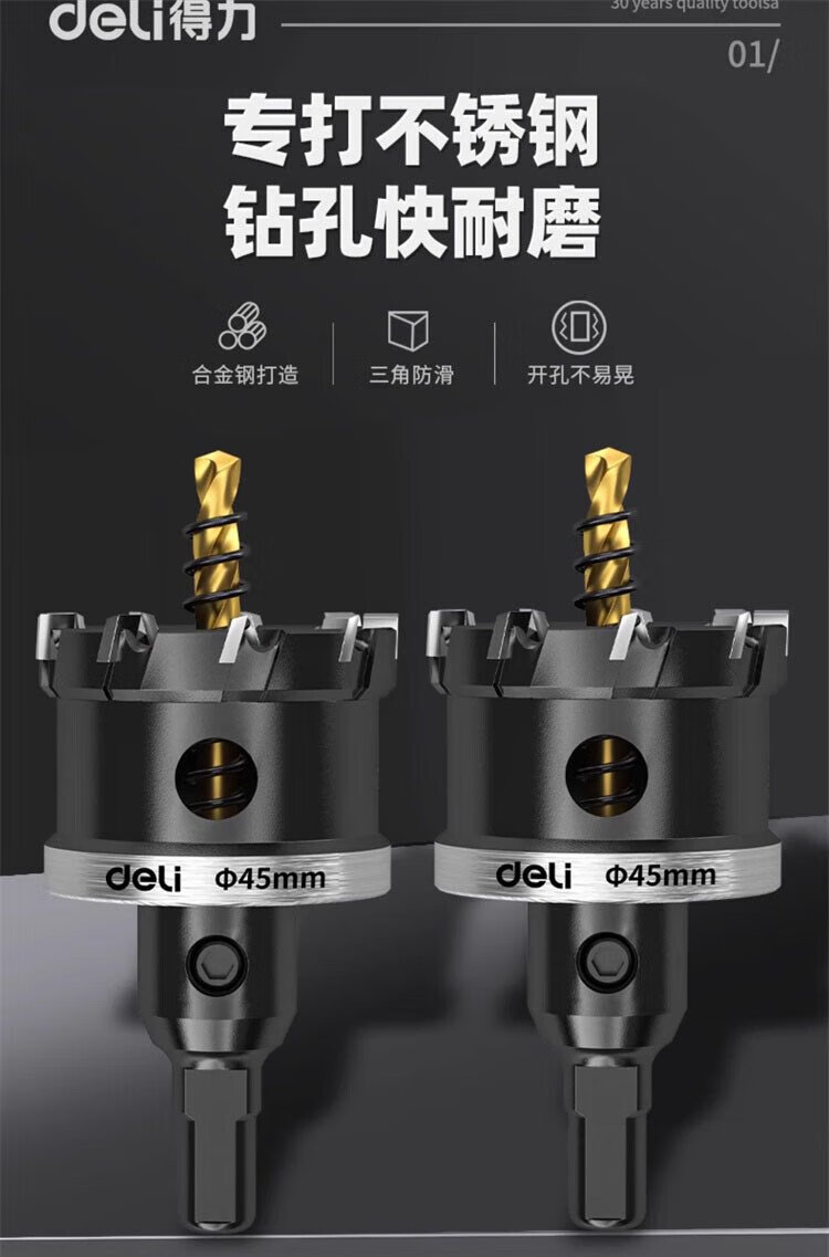Deli stainless steel hole opener, metal punch drill bit, aluminum alloy iron sheet drill, expansion opening artifact 75mm, one pack