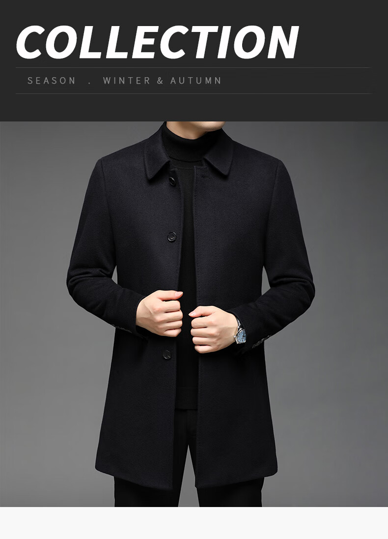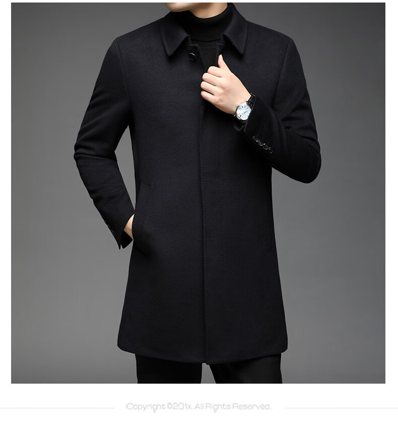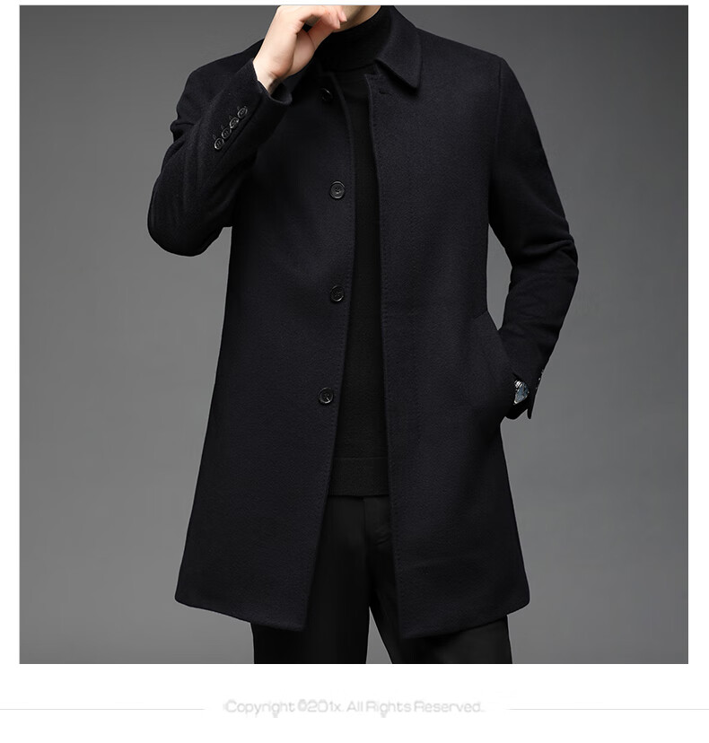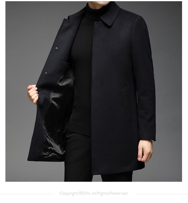 ROMON 100% pure cashmere woolen coat for men in autumn and winter mid-length lapel thick cashmere coat for men with windbreaker jacket