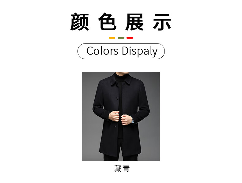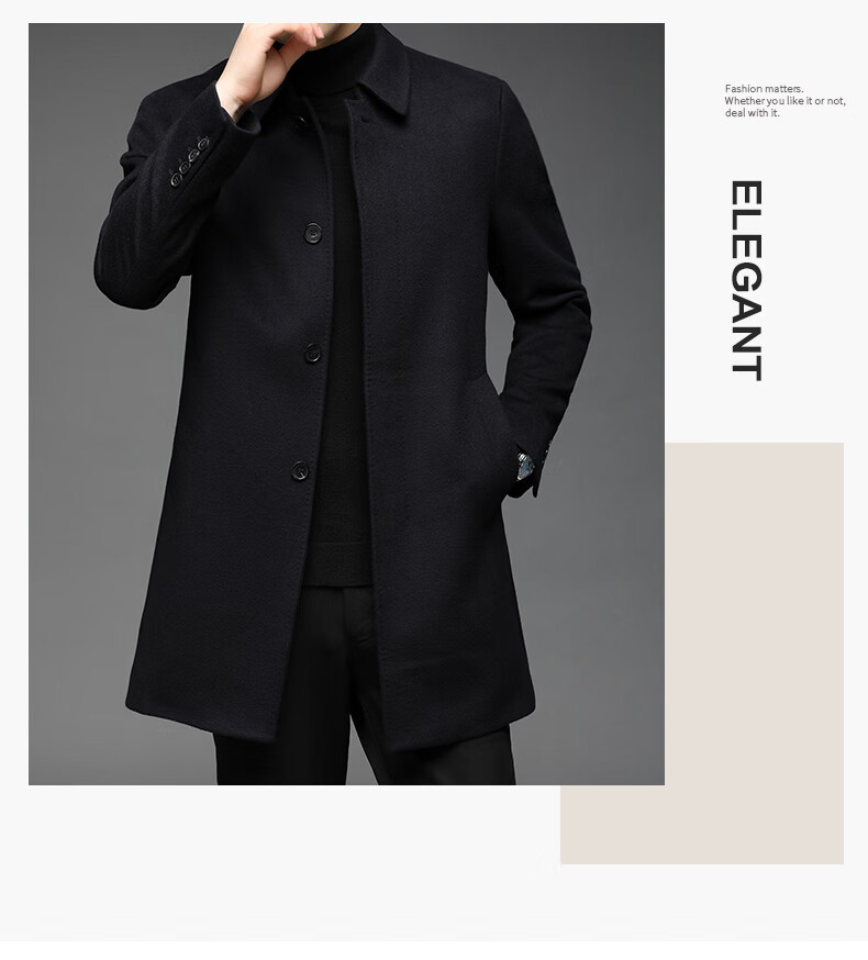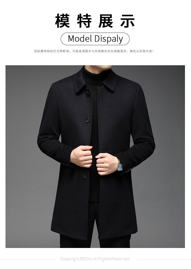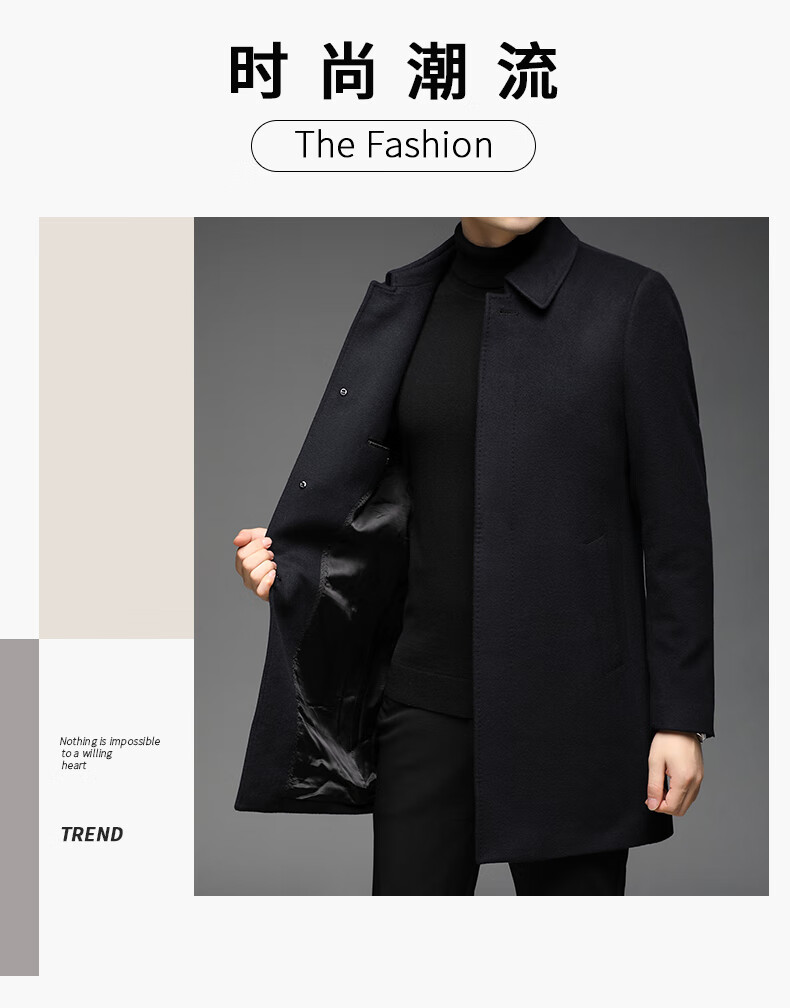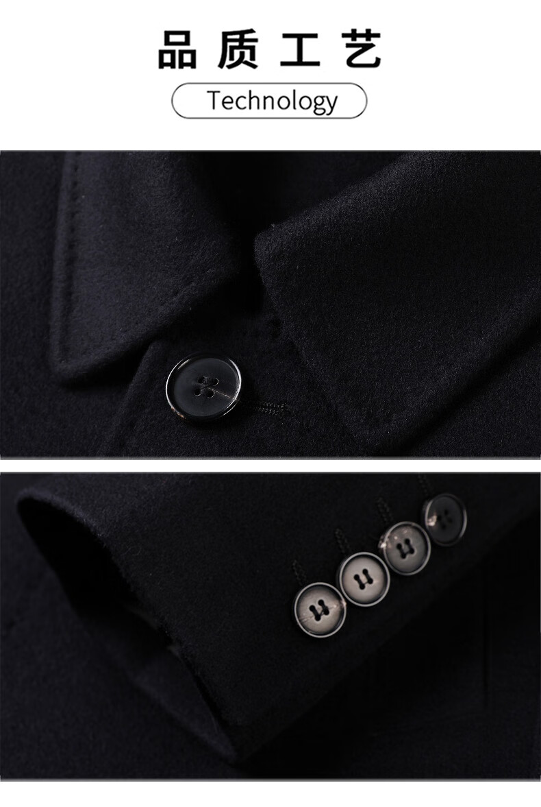 ROMON 100% pure cashmere woolen coat for men in autumn and winter mid-length lapel thick cashmere coat for men with windbreaker jacket