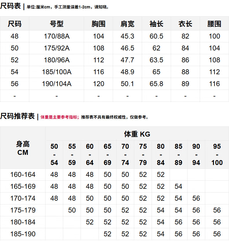 China (cm) 160-165/84-86 165-170 / 88-90 167-172 / 92-96 168-173 / 98-102 170-176 / 106-110
