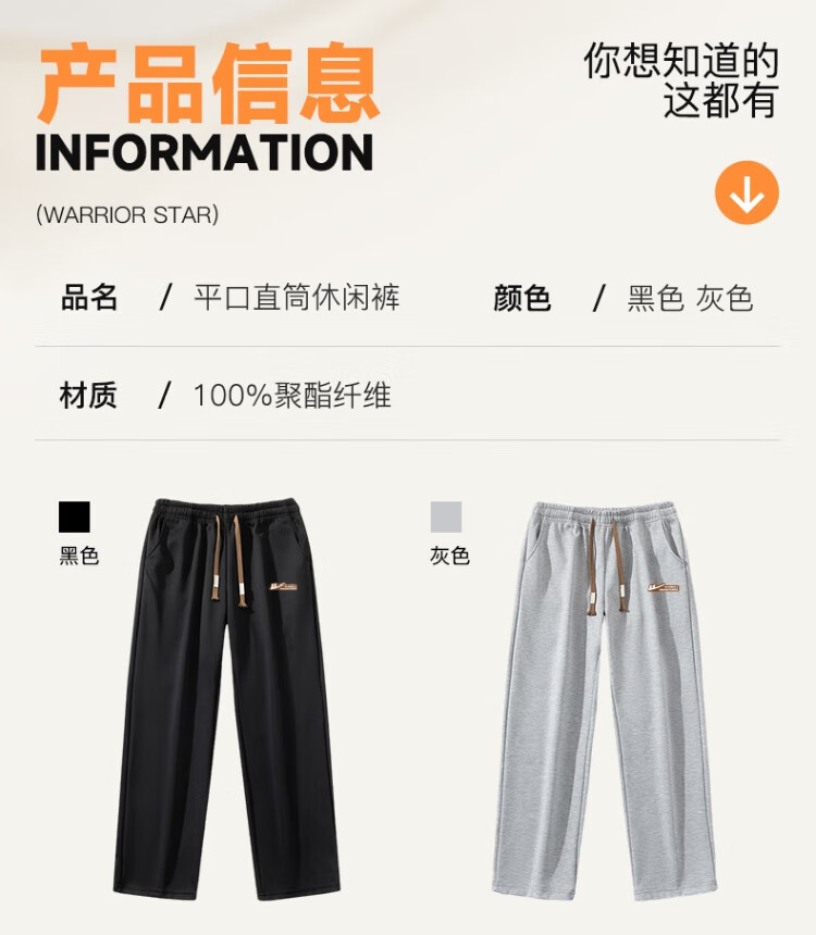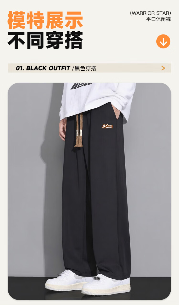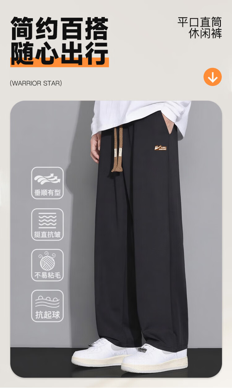Warrior Casual Pants Men's Autumn Loose Straight Wide Leg Pants Men's Trendy Versatile Sports Pants Men's Pants