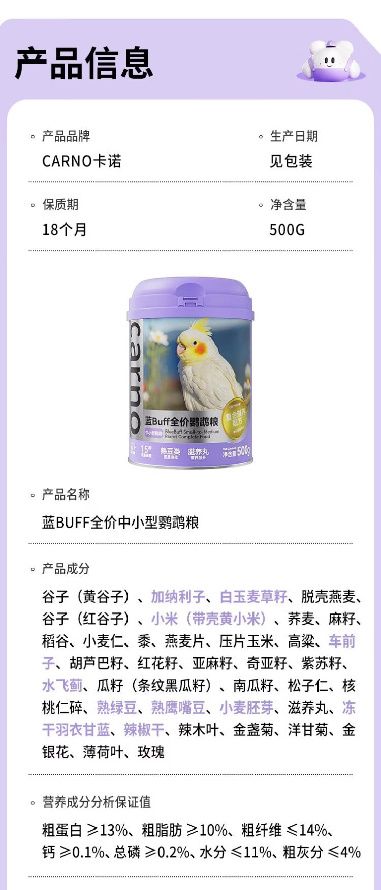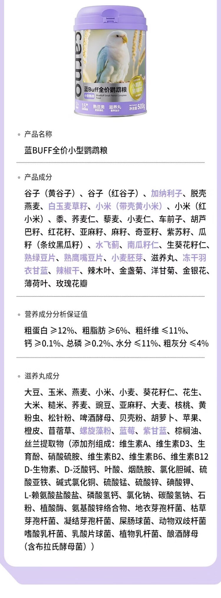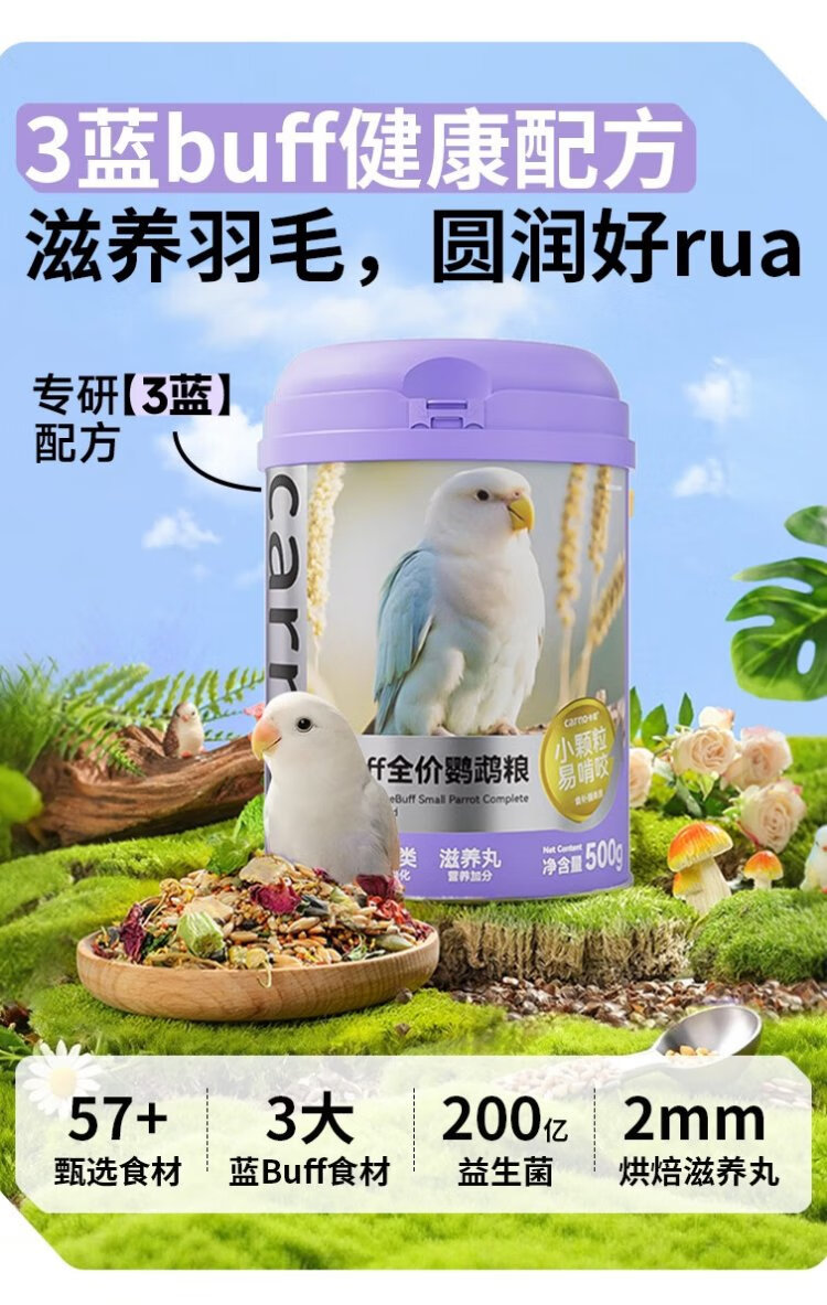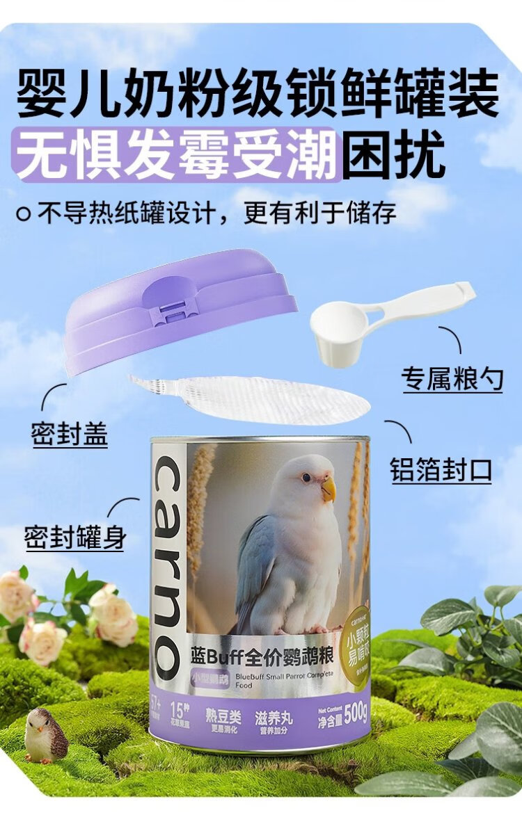 CARNO PET PRODUCTS Carno blue BUFF small parrot full price food tiger skin peony special feed bird food 100g