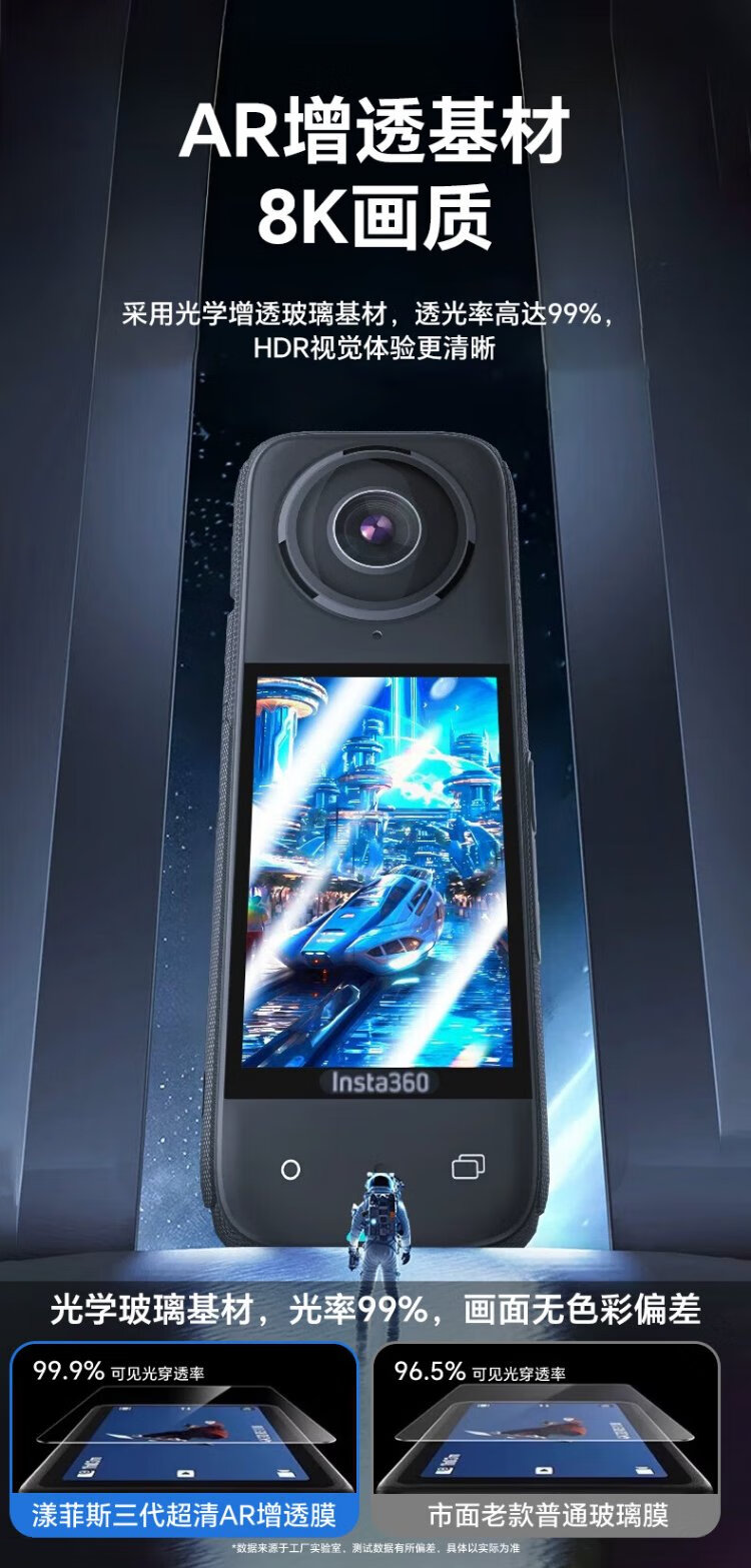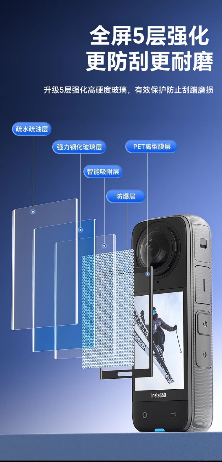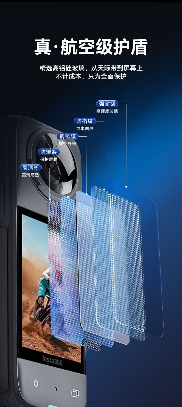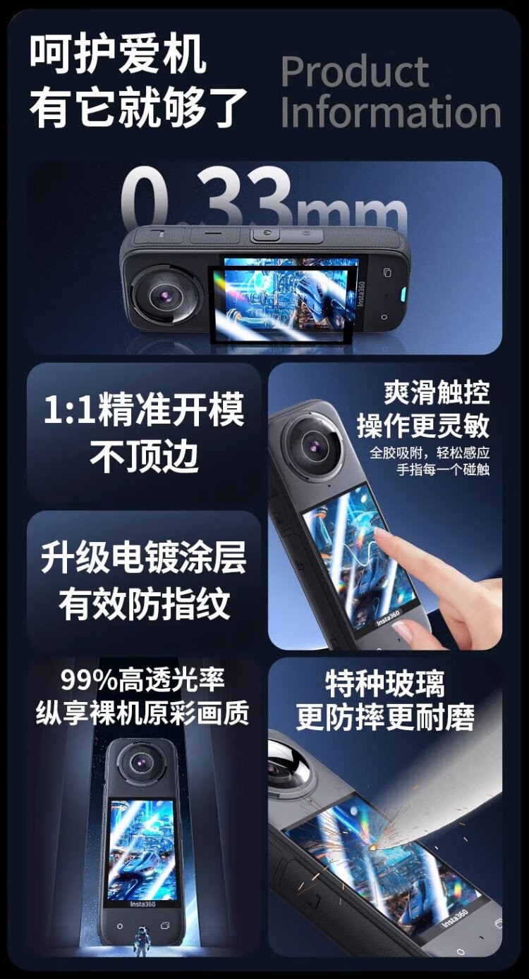 Yangfeisi applicable shadow stone Insta360X5X4 tempered film panoramic action camera HD protective film anti-scratch camera accessories