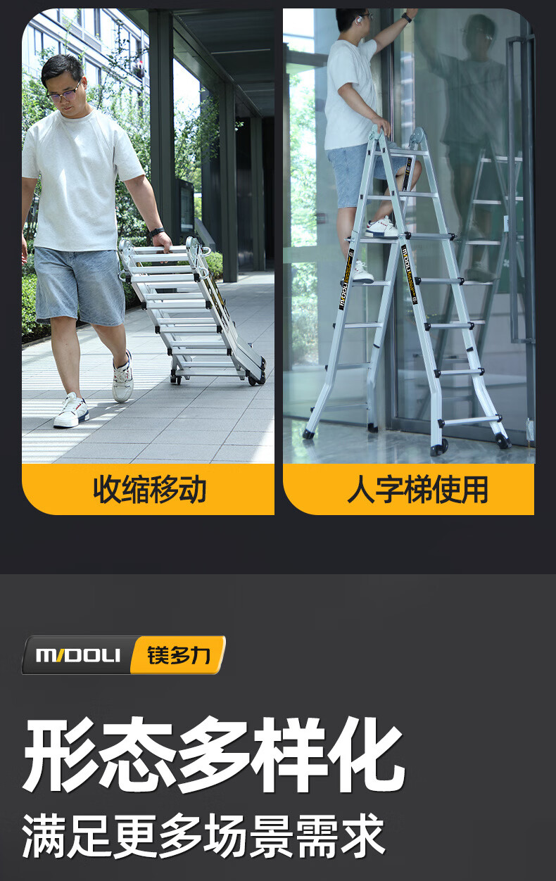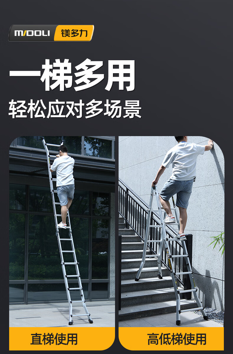 Magnesium Duoli Herringbone Ladder Telescopic Ladder Folding Ladder Aluminum Alloy Ladder Multifunctional Ladder Engineering Ladder Climbing Ladder Household Climbing Stair Ladder X4