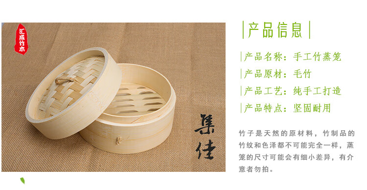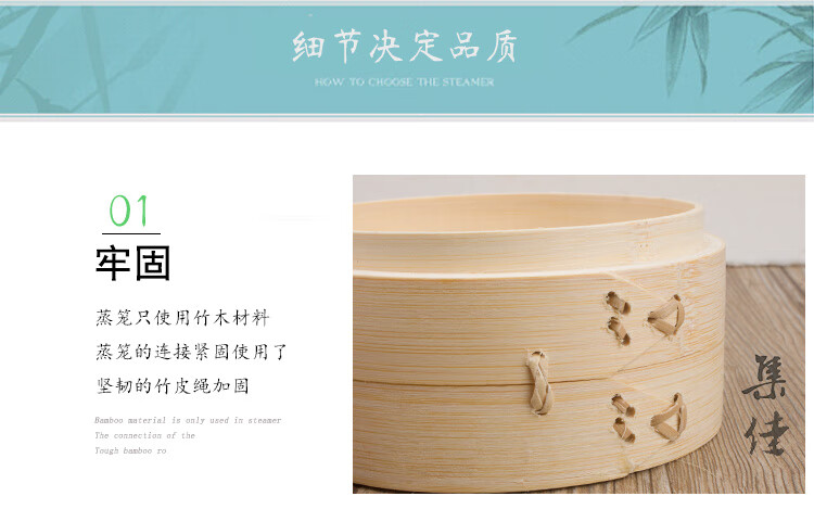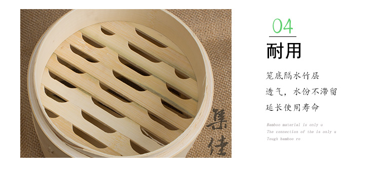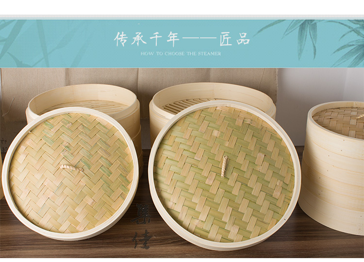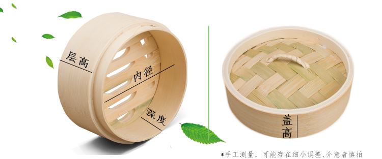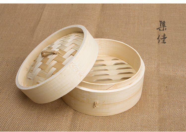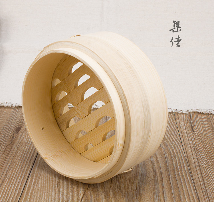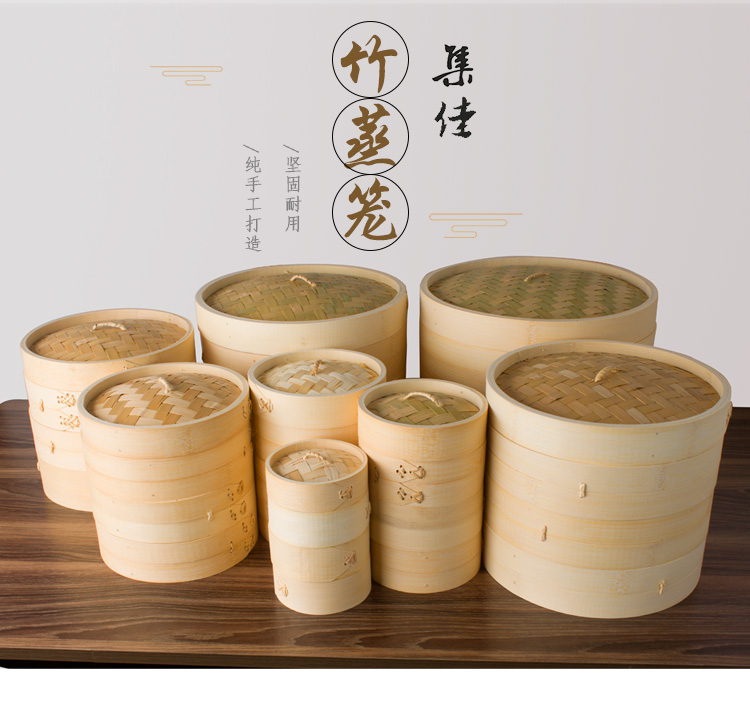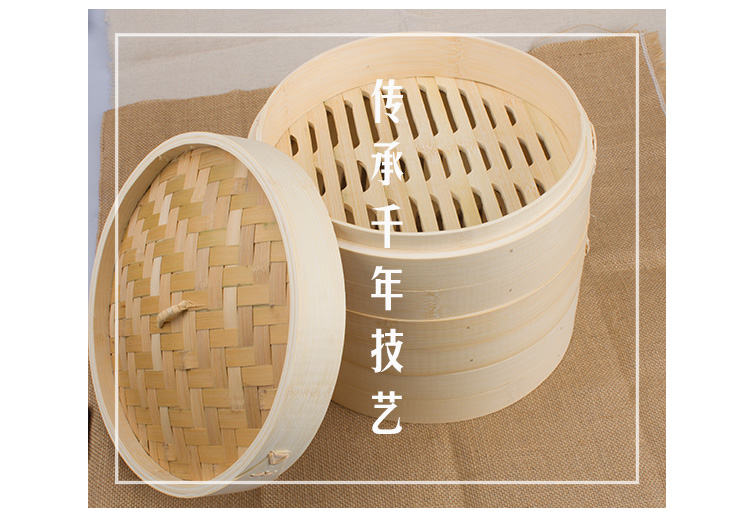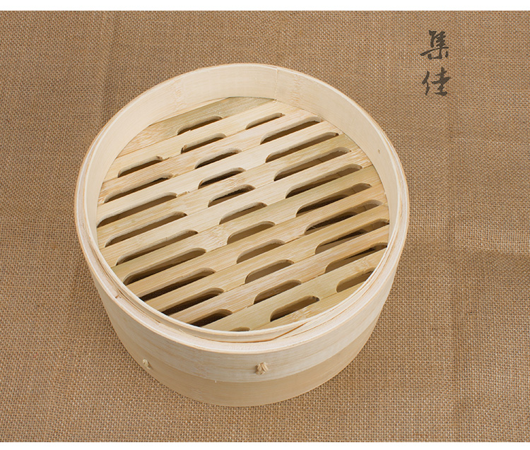 Jidaocook natural bamboo steamer for household small steamed buns, hotel snack bar steamed dumplings, steamed buns, steamed buns with custom engraving 10cm (two cages and one lid)