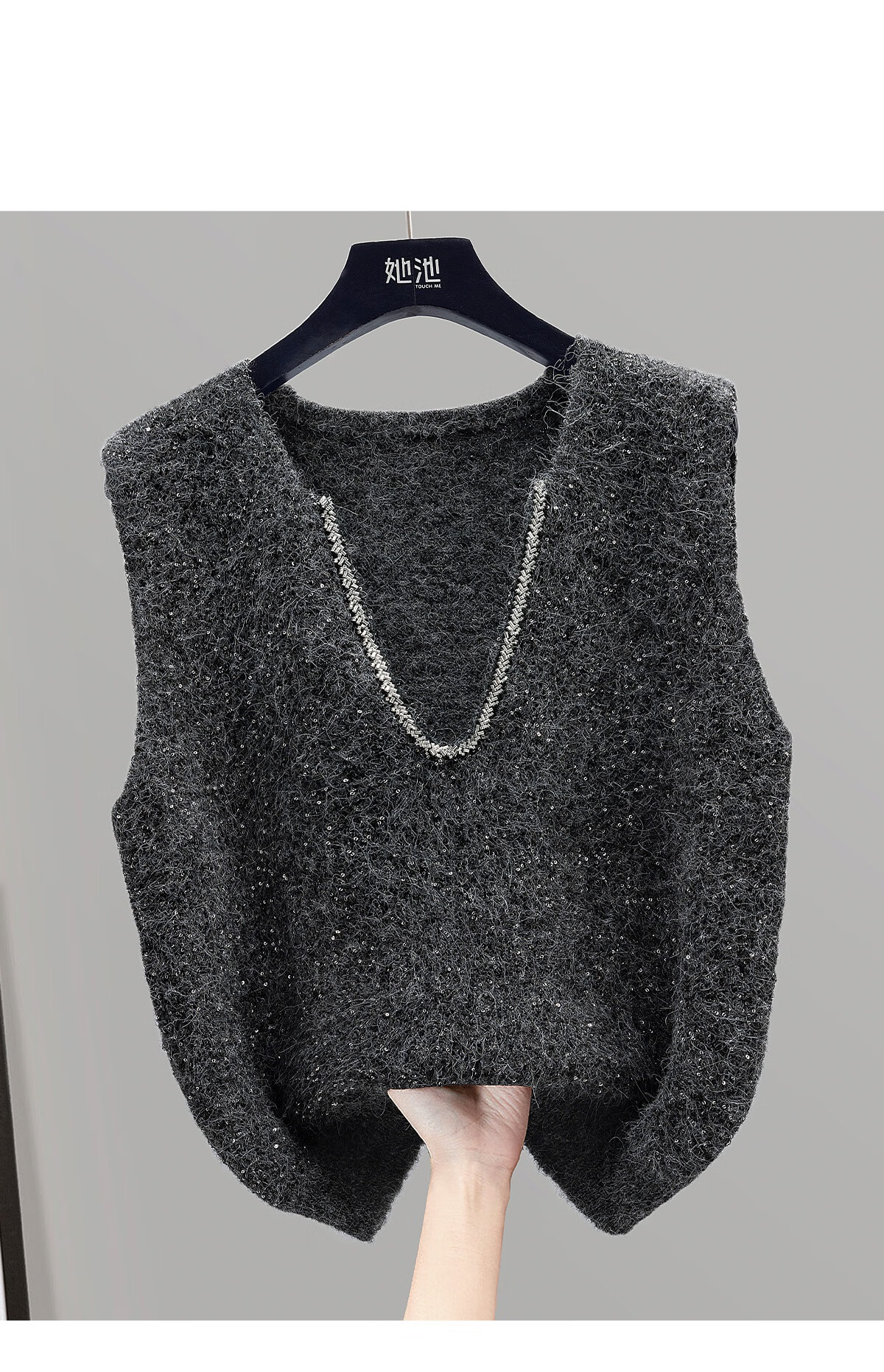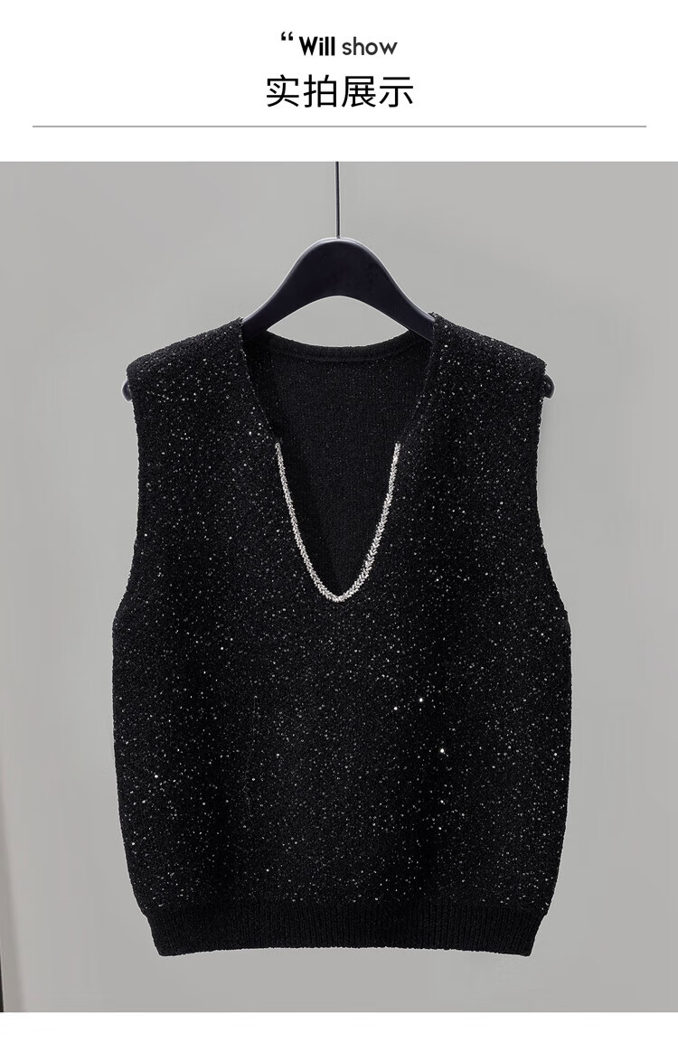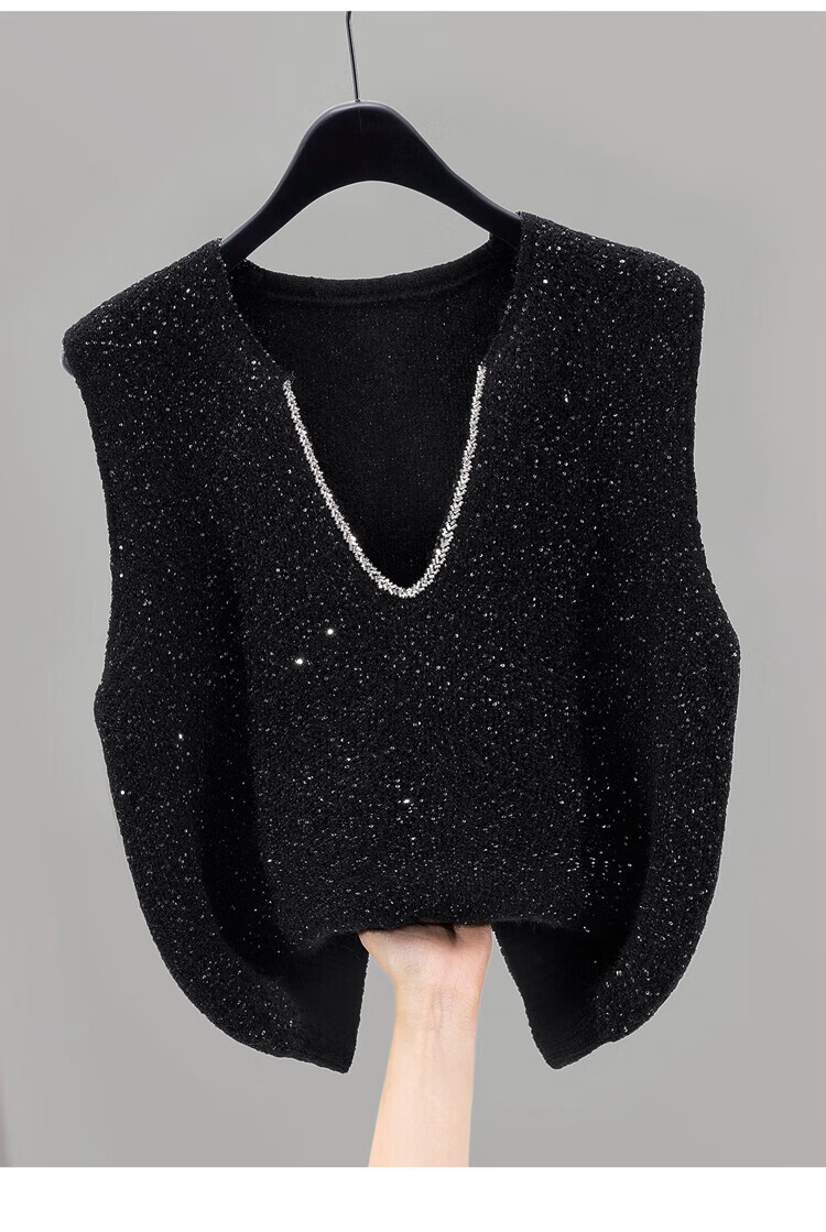 She wears slimming knitted vest for women 2025 autumn new style temperament V-neck pullover vest