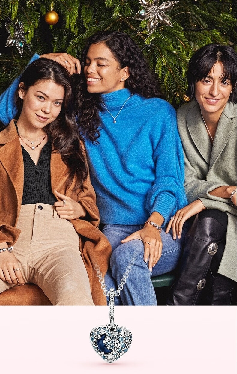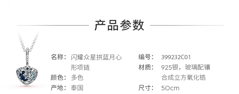 PANDORA Shining Stars Arching Blue Moon Heart-Shaped Necklace Girl Birthday Gift for Girlfriend 50cm 1