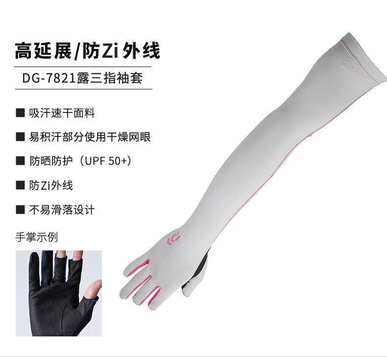 DAIWA 21 models with gloves, covering the back of the hand, summer fishing ice sleeves, sweat-absorbent and quick-drying outdoor sports ice sleeves, sleeves DG-7721 metallic gray S