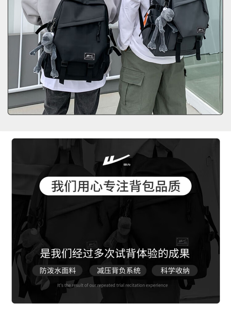 回力双肩包男士背包大容量旅行通勤出差休闲电脑包男大学生女轻便书包
