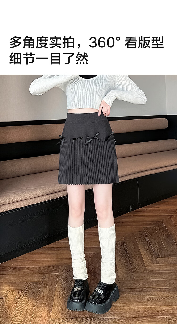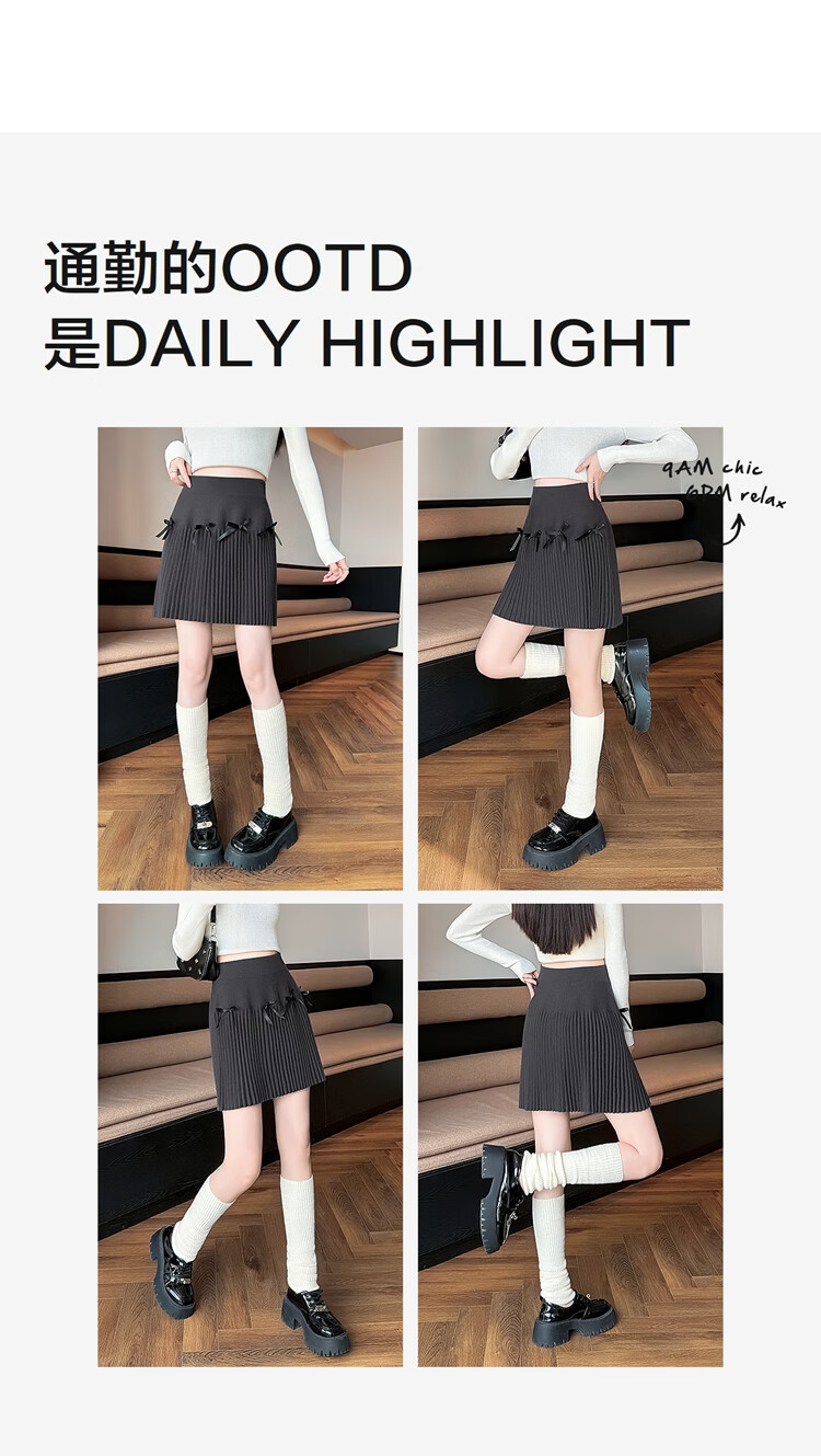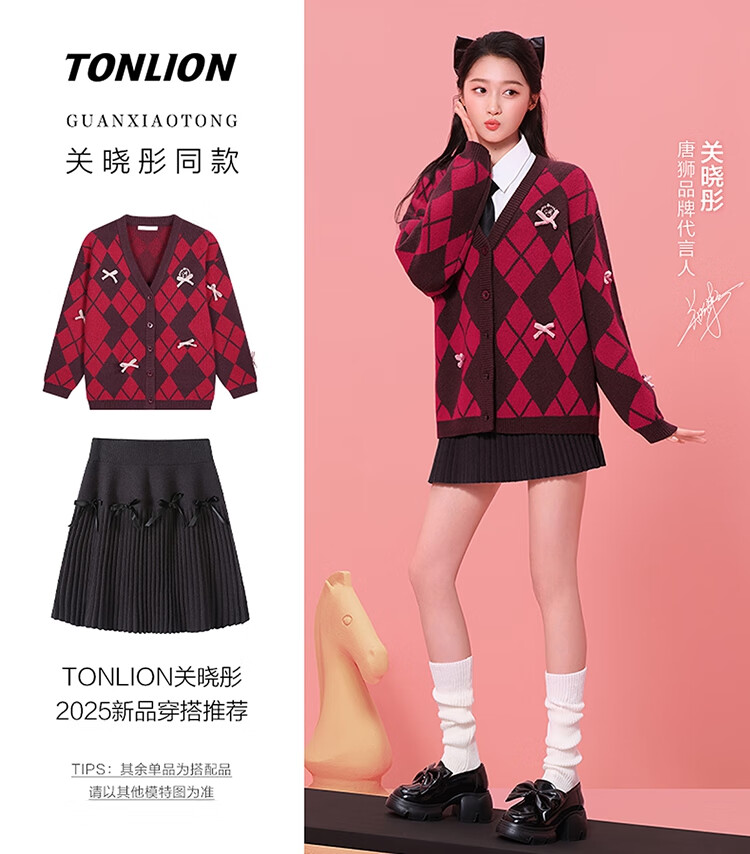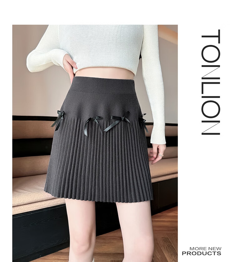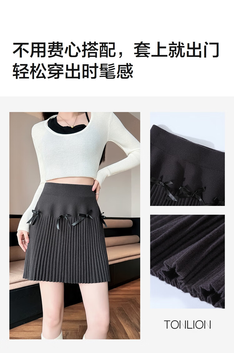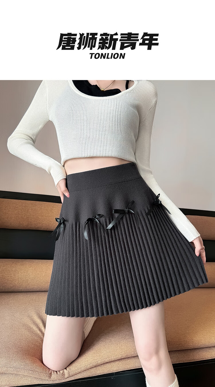 Tang Lion (TonLion) Guan Xiaotong's same style 2025 autumn and winter women's sweet lady bow woolen skirt versatile skirt trendy