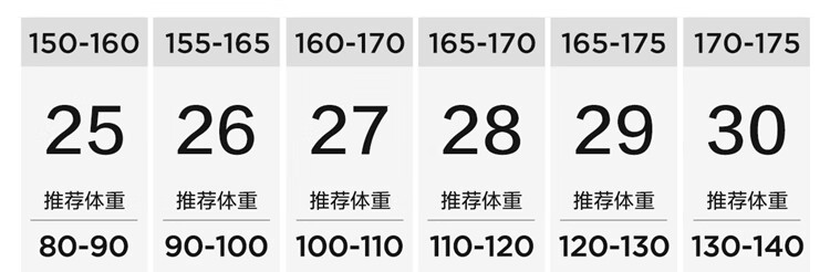 China (cm) 160-165/84-86 165-170 / 88-90 167-172 / 92-96 168-173 / 98-102 170-176 / 106-110
