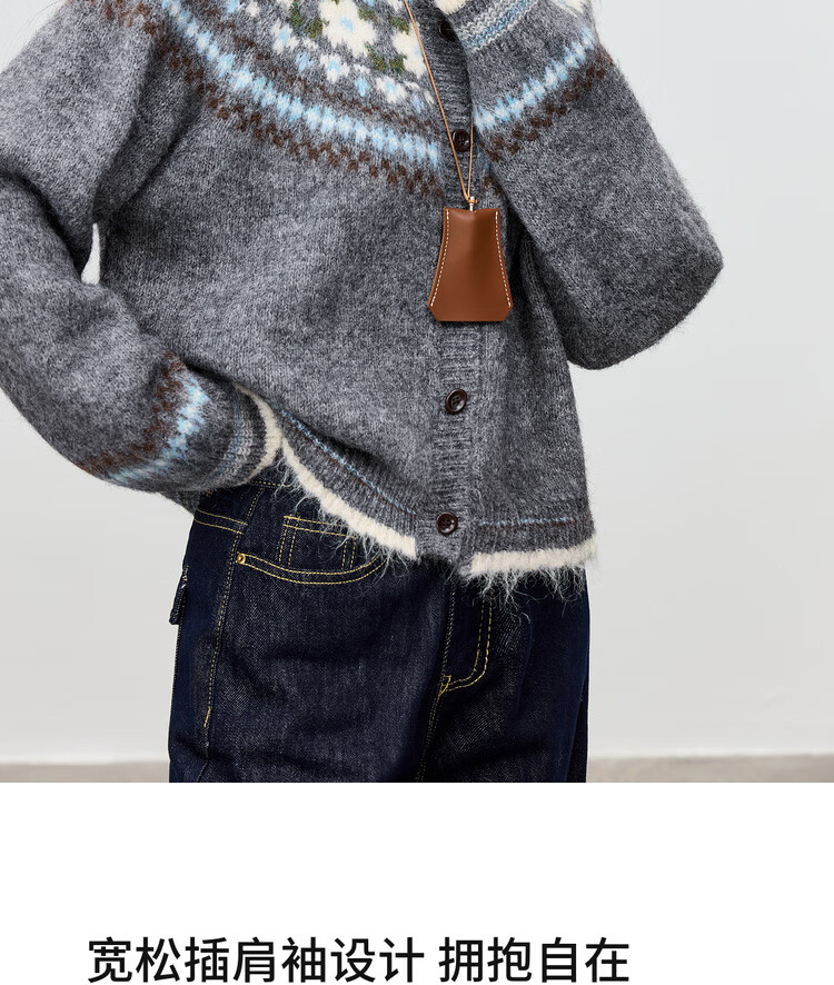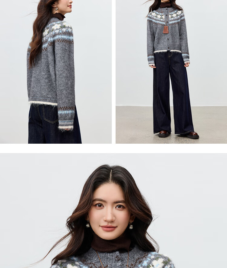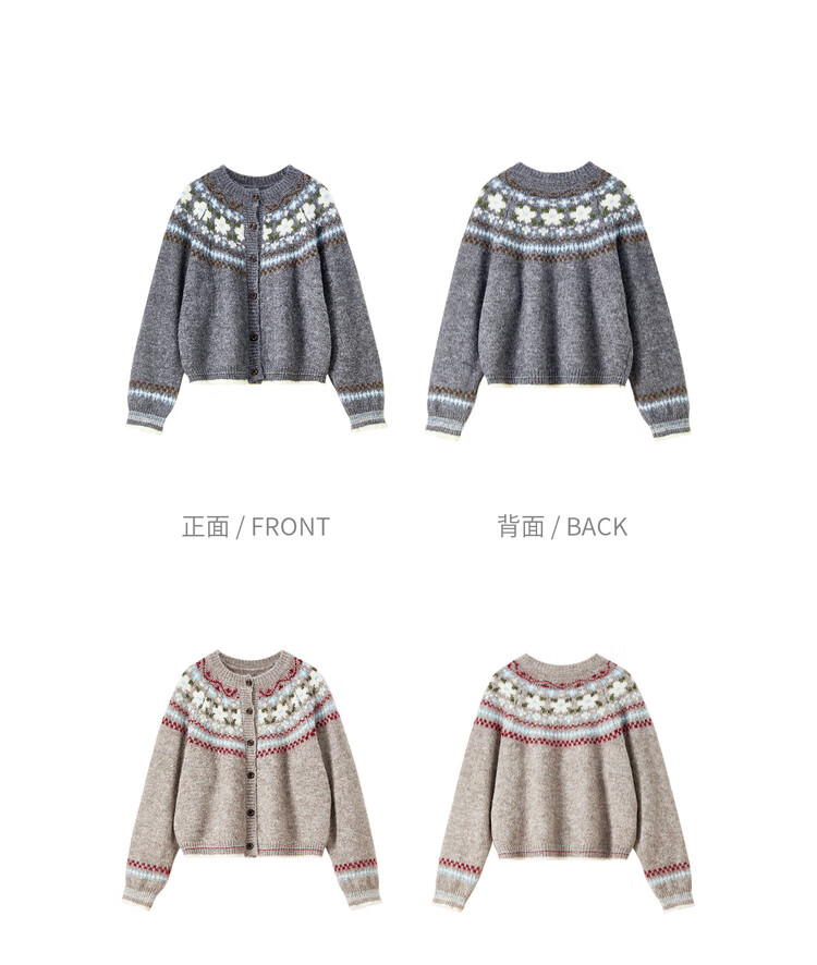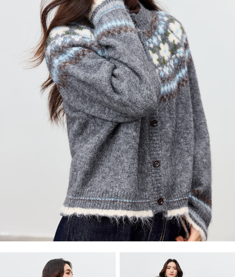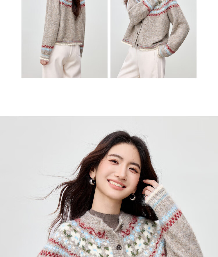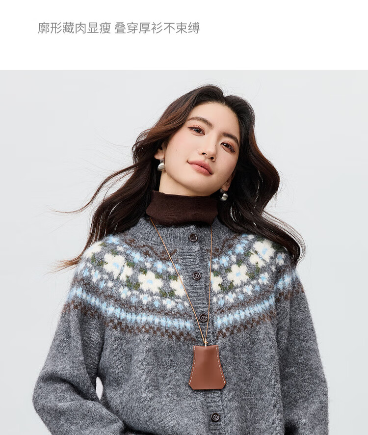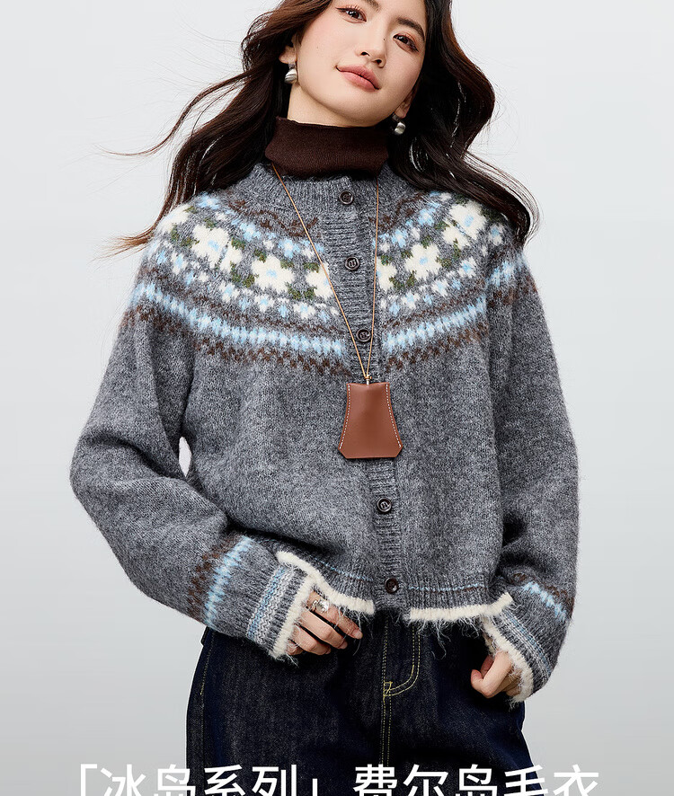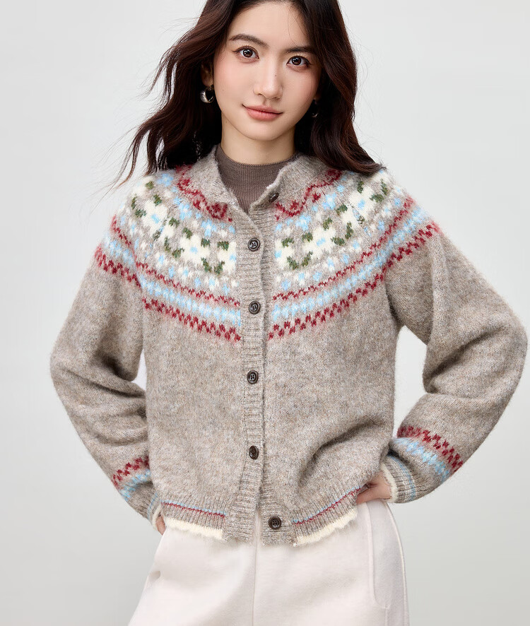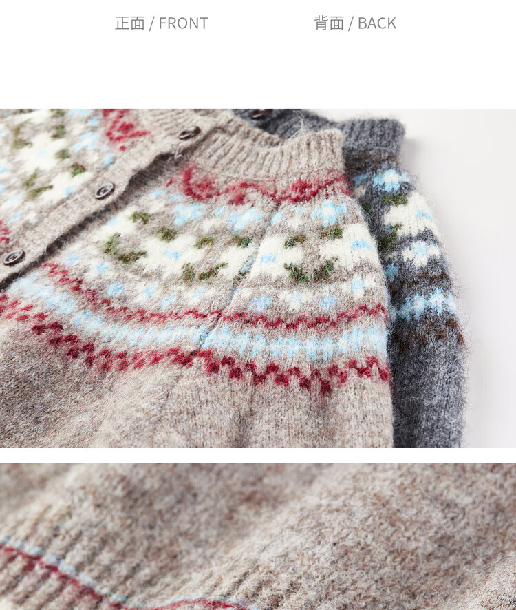 Shandubira Fair Island retro style sweater for women in winter containing sheep wool warm round neck long-sleeved sweater loose slimming cardigan